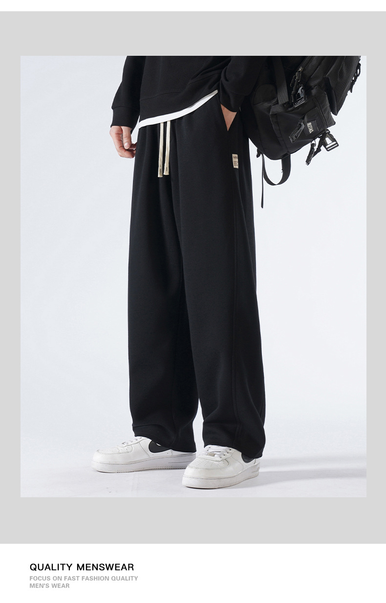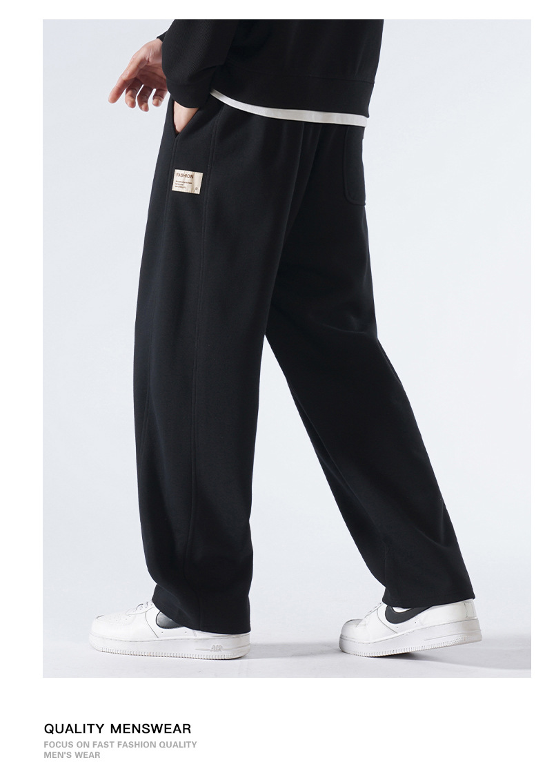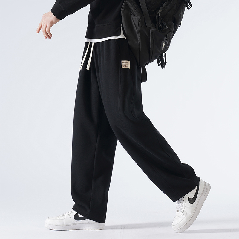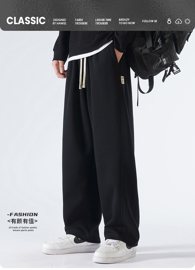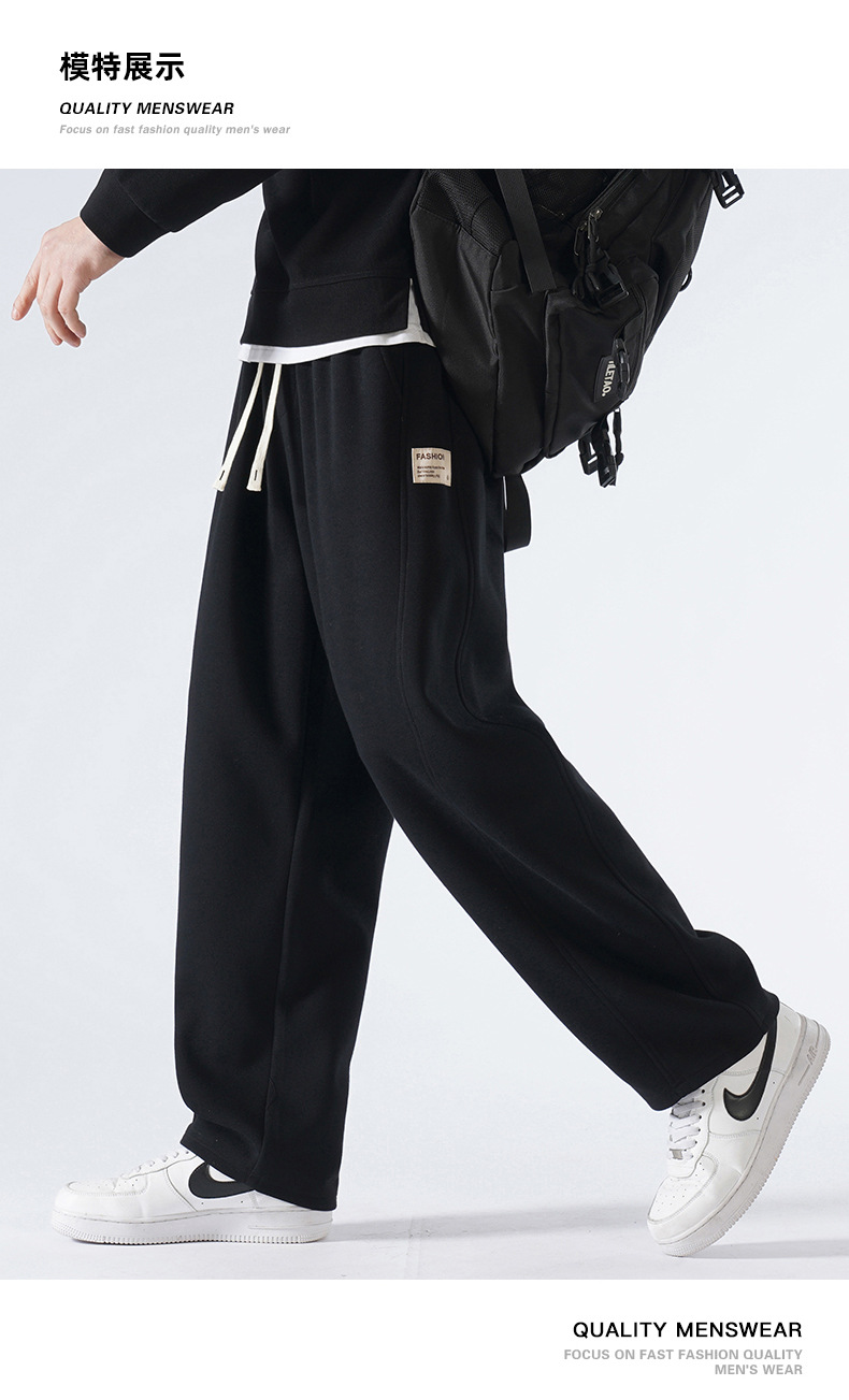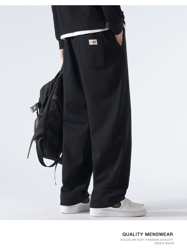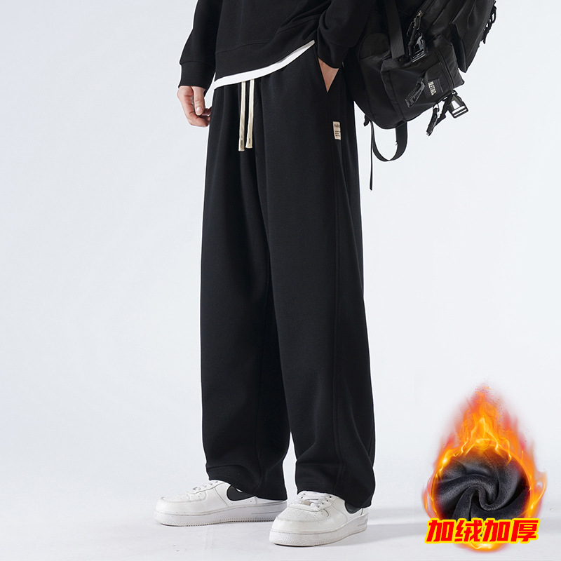 검은 기모 스트레이트 바지 남자 두부 느슨한 2024 가을 및 겨울 새 소년 넓은 다리 청소년 캐주얼 땀 바지