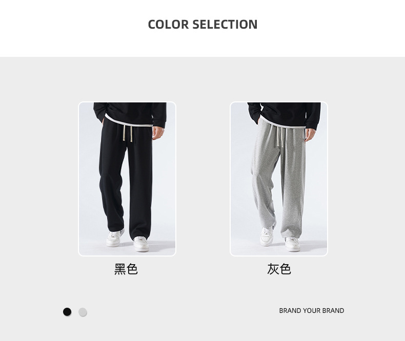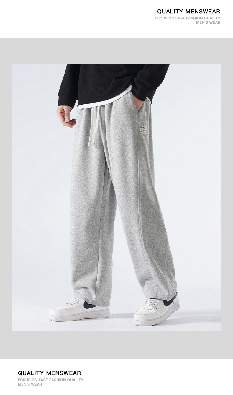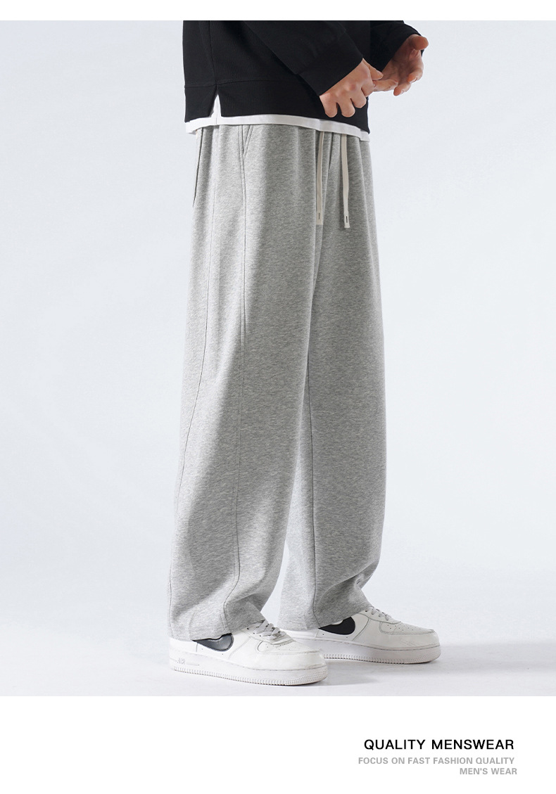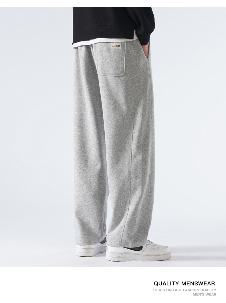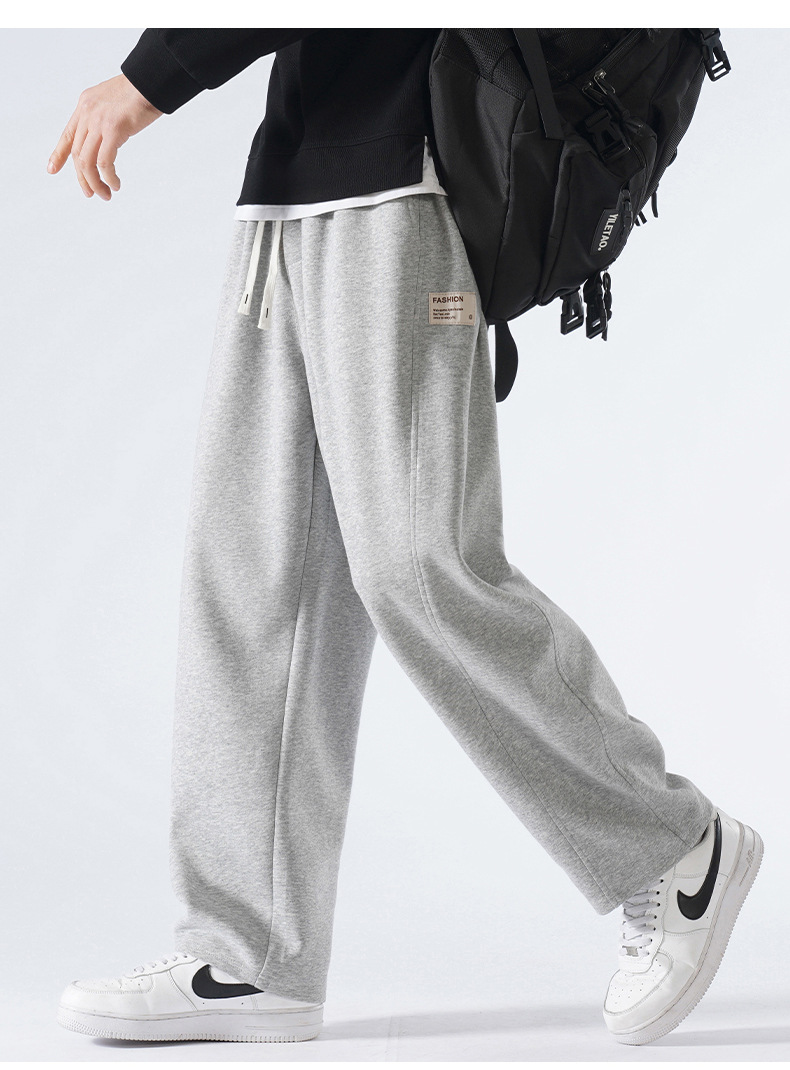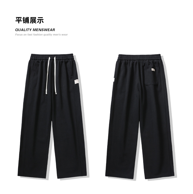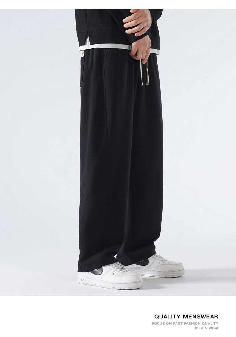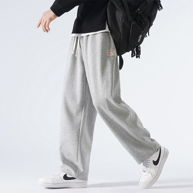 검은 기모 스트레이트 바지 남자 두부 느슨한 2024 가을 및 겨울 새 소년 넓은 다리 청소년 캐주얼 땀 바지