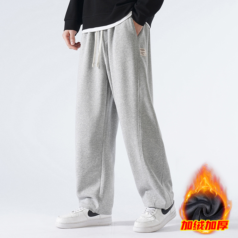 검은 기모 스트레이트 바지 남자 두부 느슨한 2024 가을 및 겨울 새 소년 넓은 다리 청소년 캐주얼 땀 바지스토어 가기
