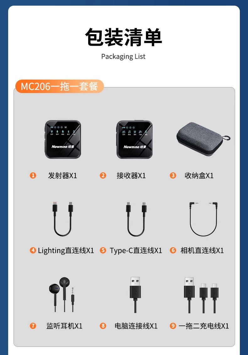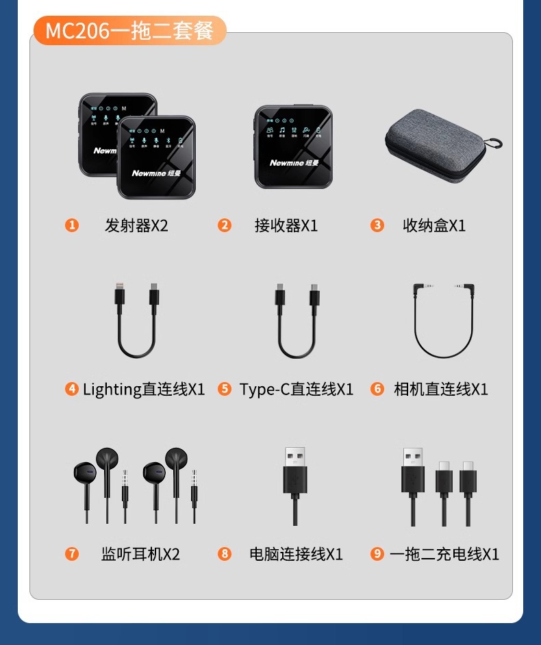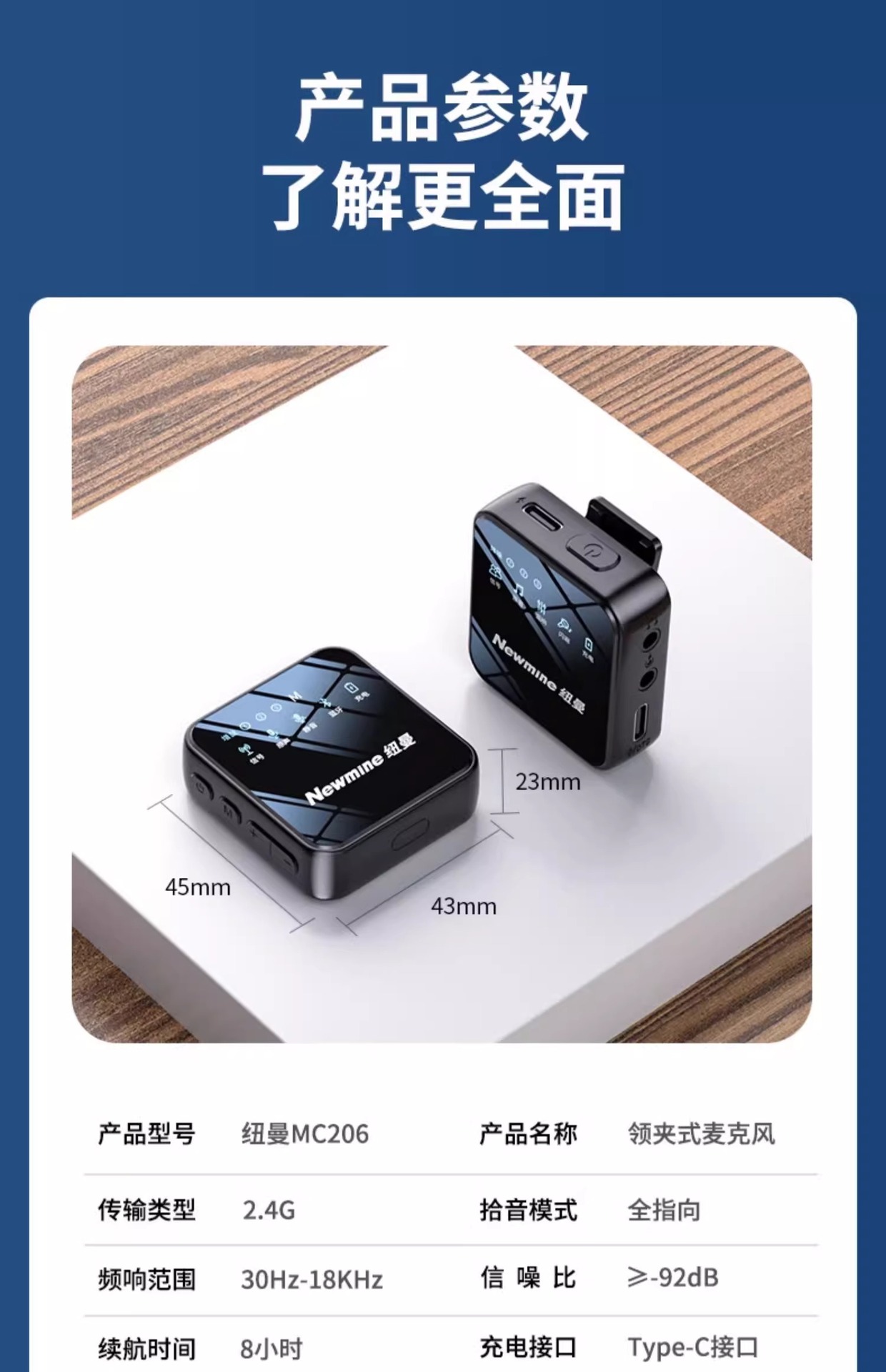 뉴먼 MC206 무선 칼라 클립 마이크 라디오 마이크 앵커 라이브 녹화 비디오 휴대 전화 소음 감소