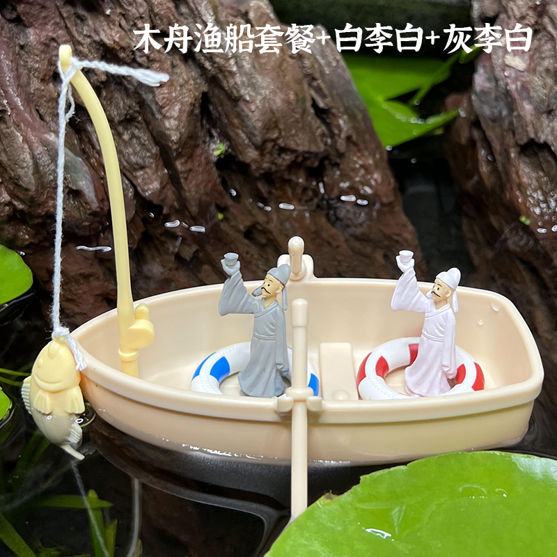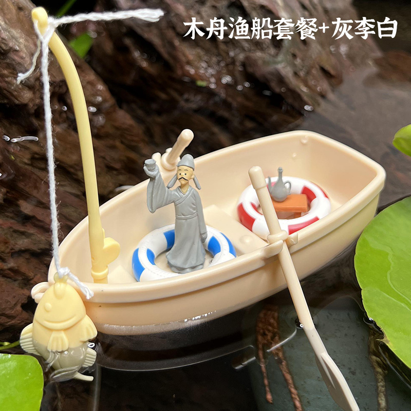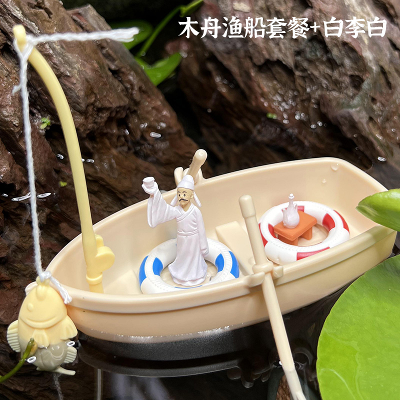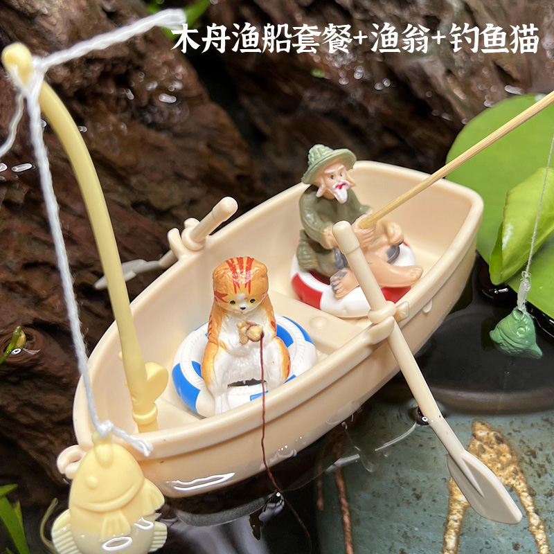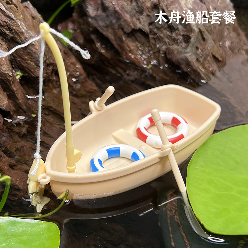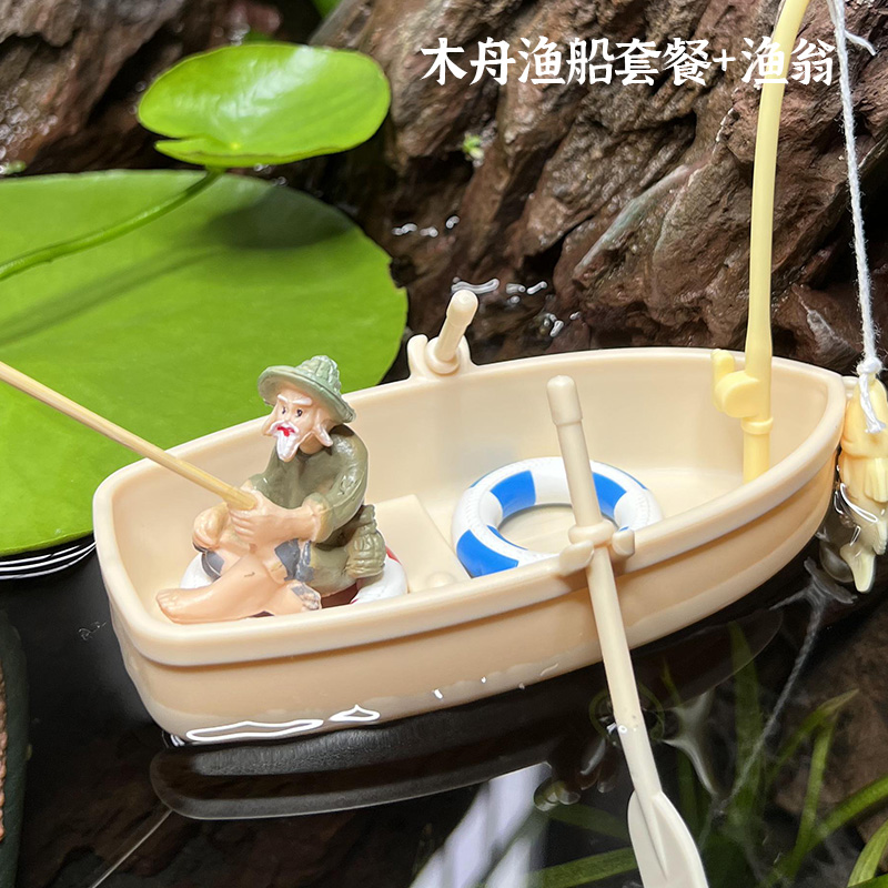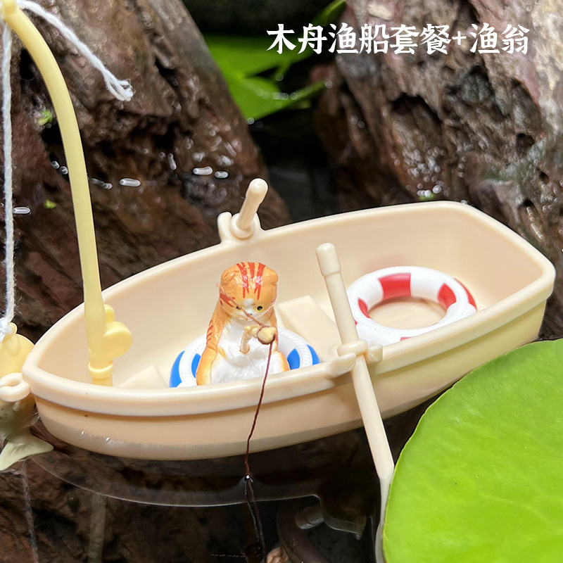미니 시뮬레이션 떠 다니는 보트 낚시 탱크 낚시 보트 창조적 인 장난감 마이크로 풍경 DIY 장식품