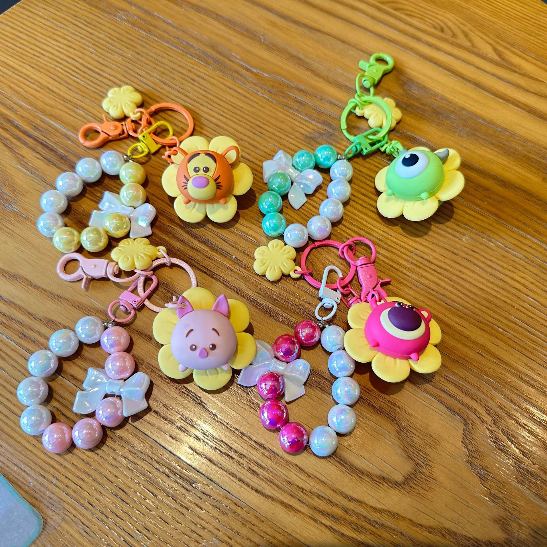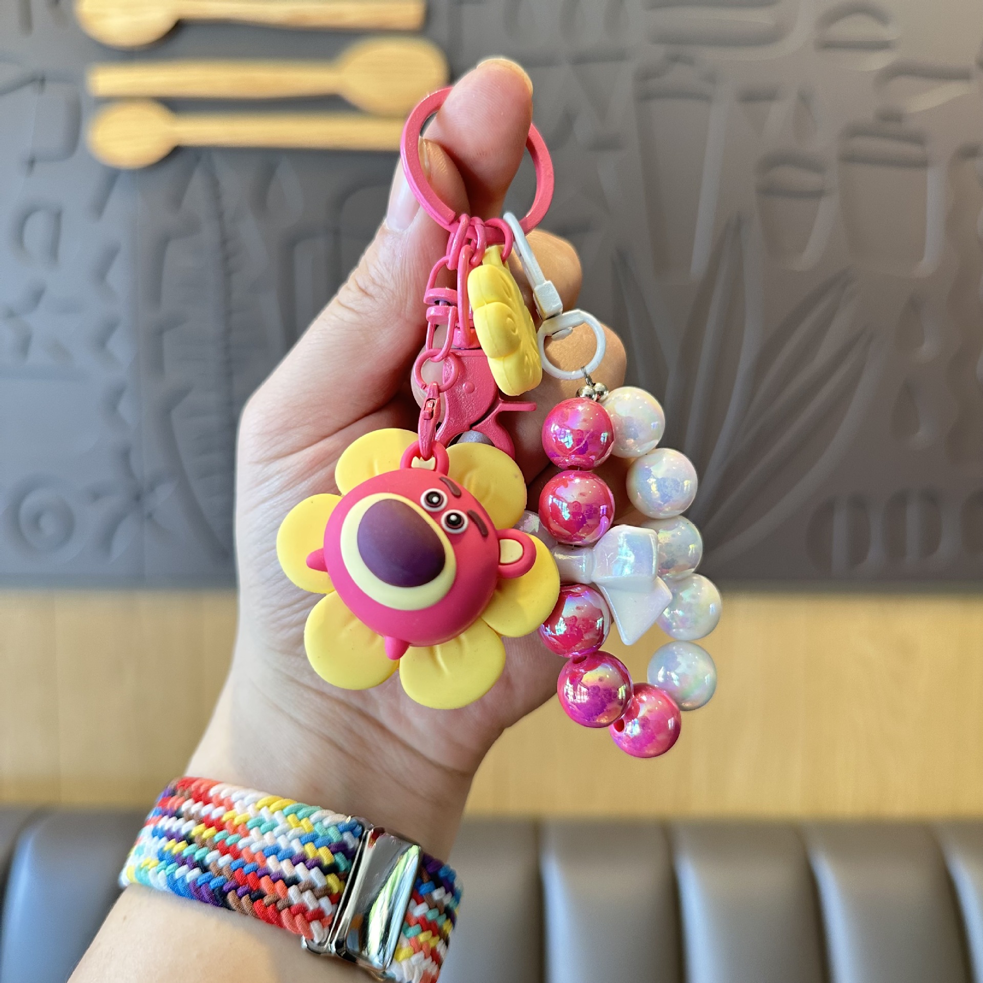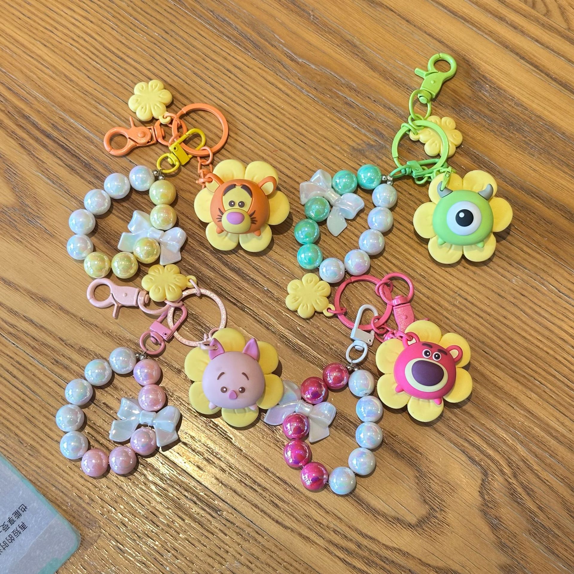 해바라기 Zhuanhuole 딸기 곰 구슬 체인 키 체인 Ins 스타일 활 끈 구슬 가방 펜던트 자동차 키 액세서리스토어 가기
