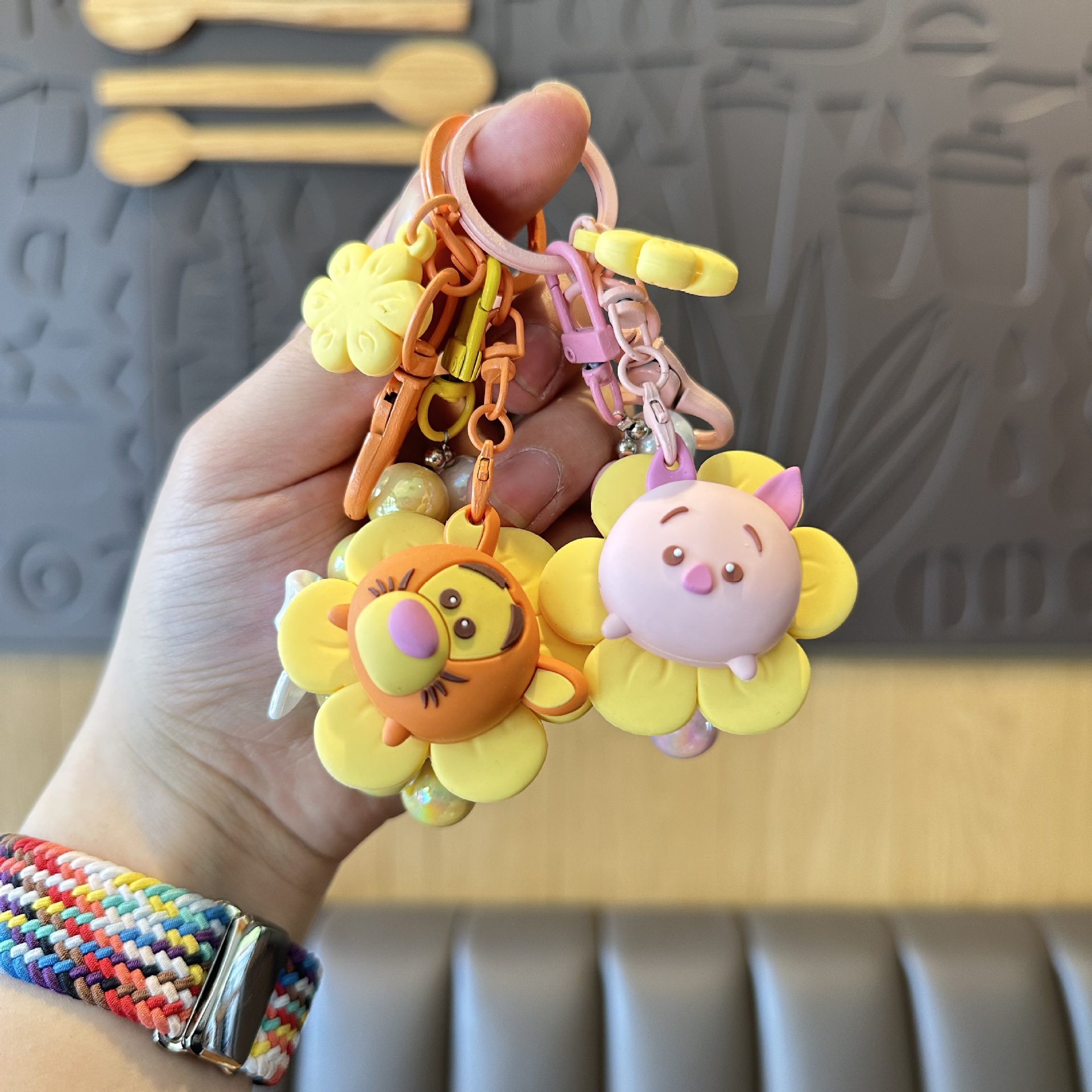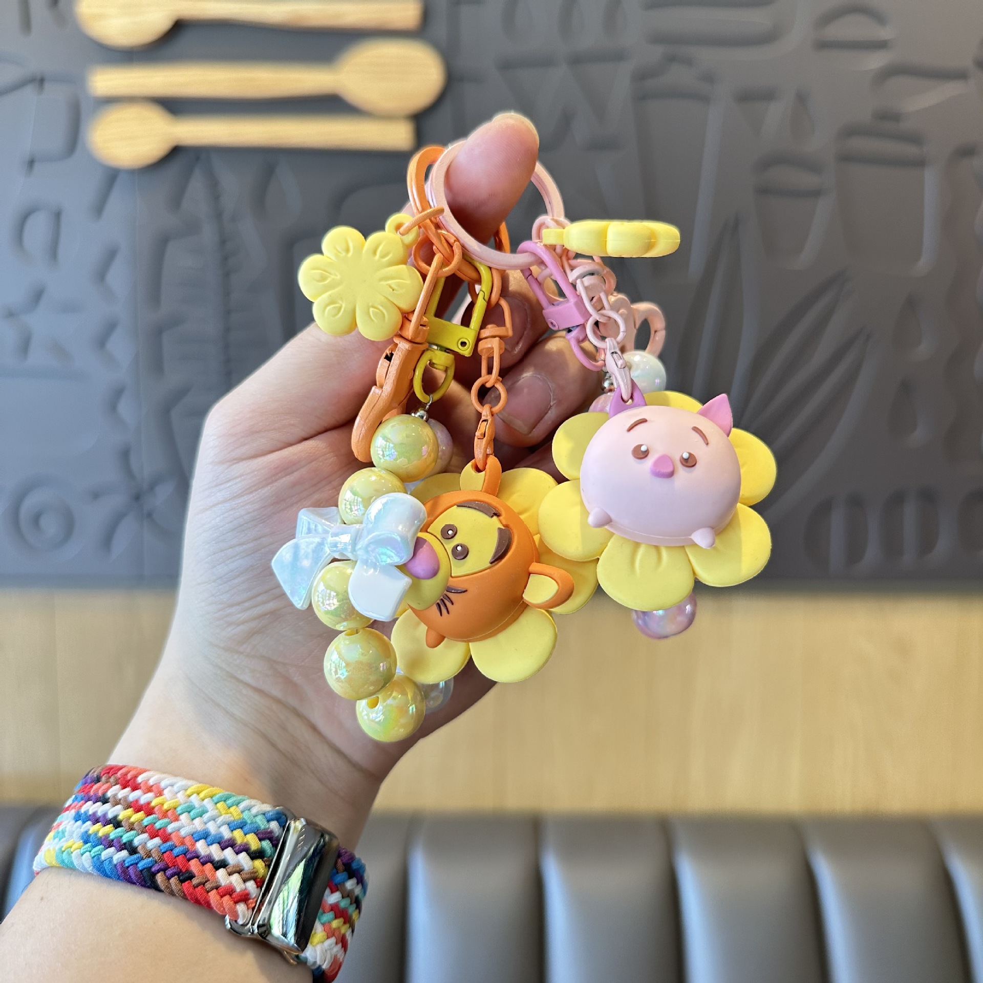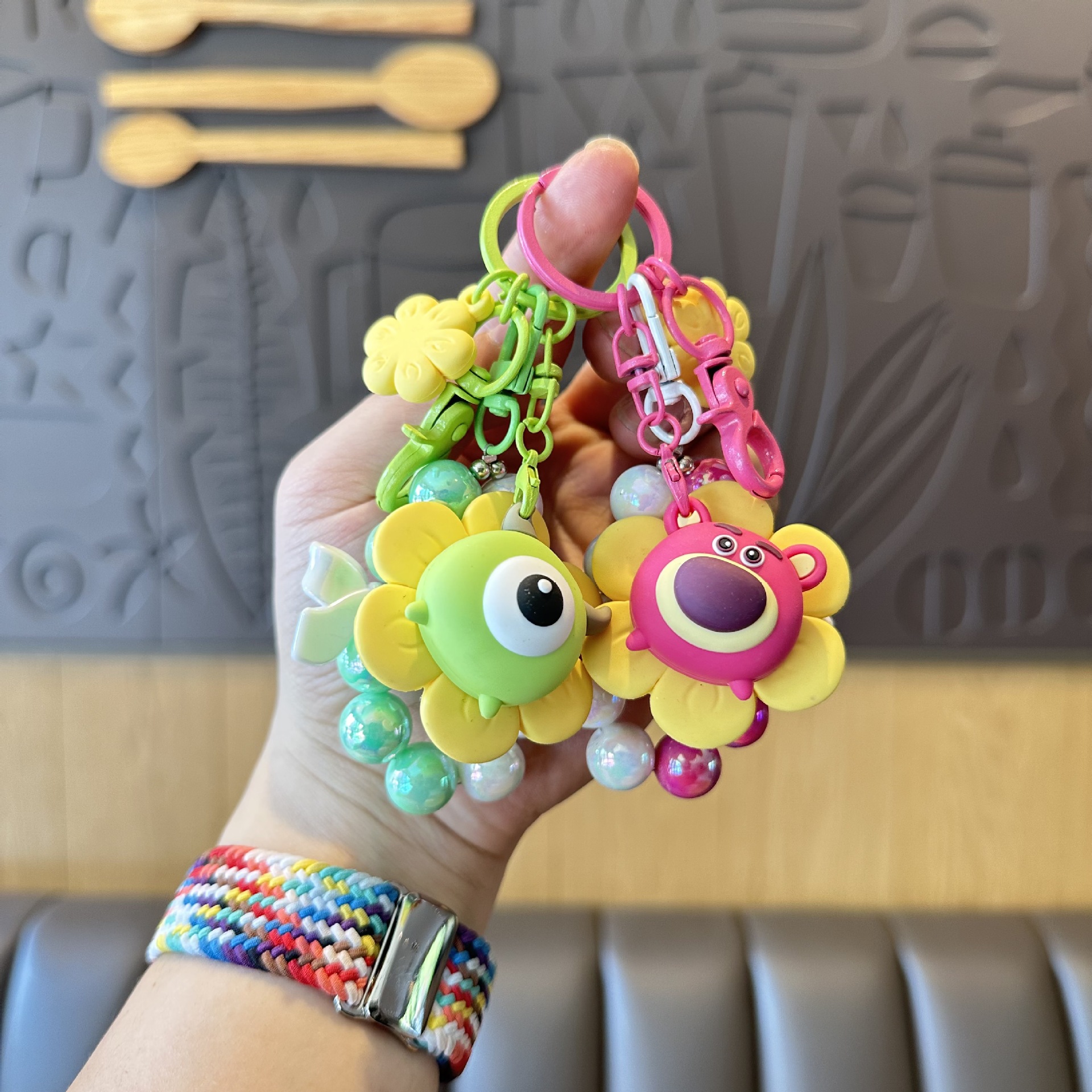 해바라기 Zhuanhuole 딸기 곰 구슬 체인 키 체인 Ins 스타일 활 끈 구슬 가방 펜던트 자동차 키 액세서리스토어 가기