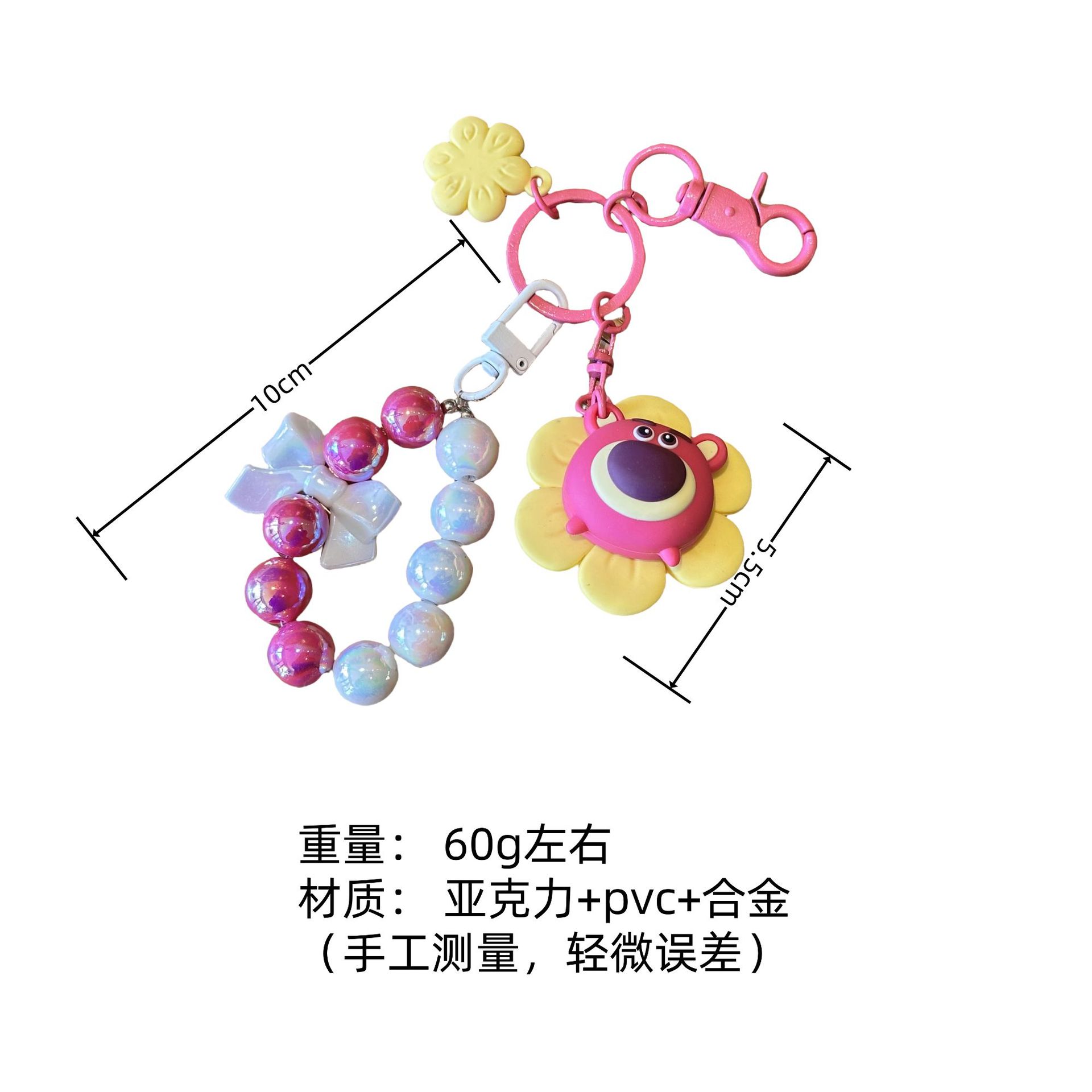 해바라기 Zhuanhuole 딸기 곰 구슬 체인 키 체인 Ins 스타일 활 끈 구슬 가방 펜던트 자동차 키 액세서리