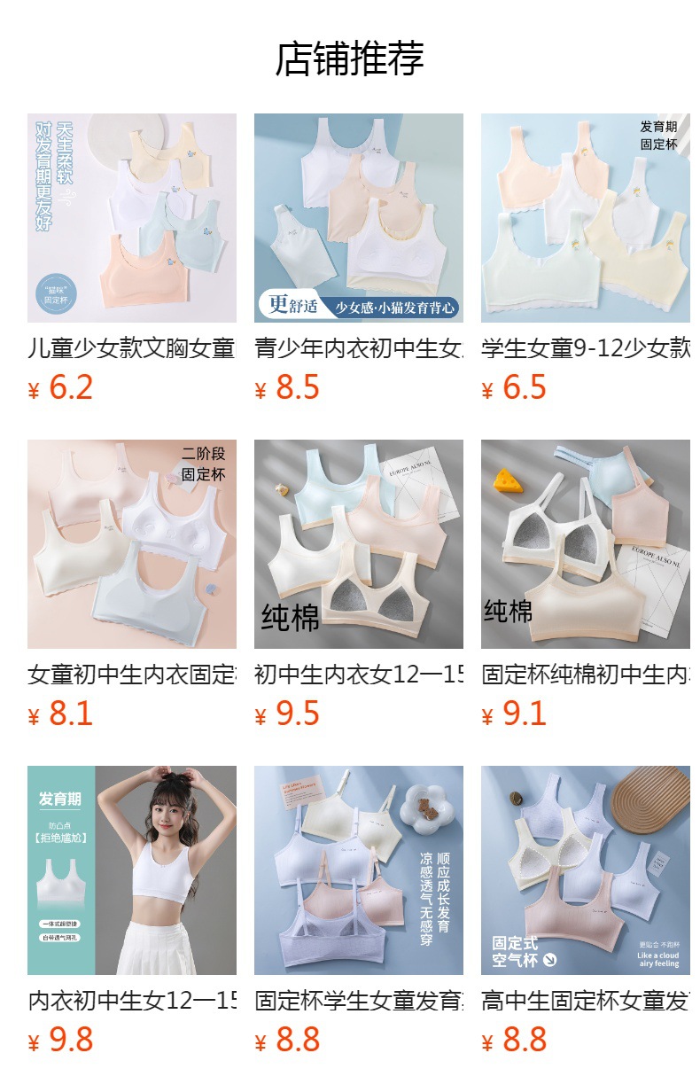 여학생 발달무대 중학교 속옷 여학생 브래지어 고정컵 9-12 1 단계 어린이 조끼스토어 가기