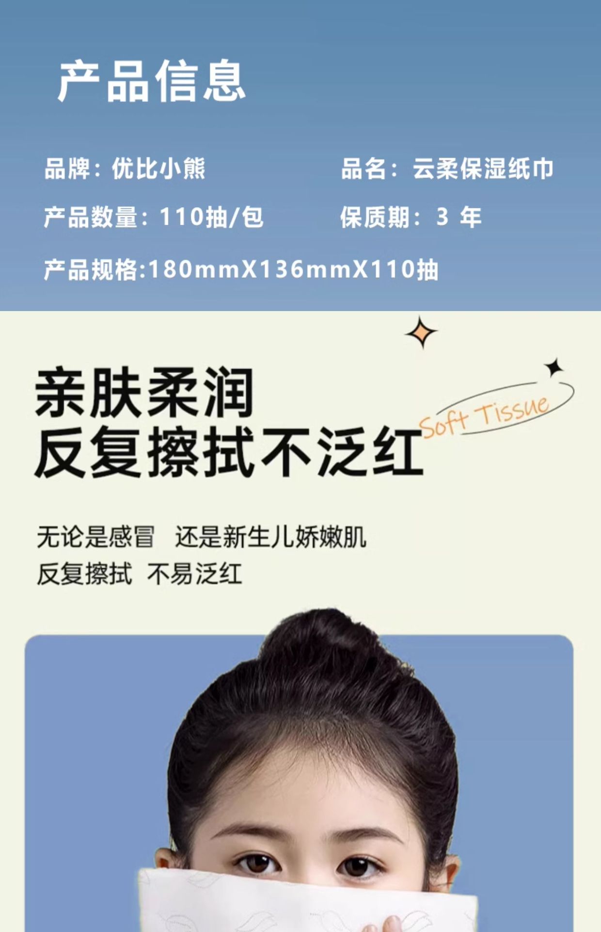 Yobi 곰 구름 부드러운 수건 아기 부드러운 티슈 크림 종이 보습 심장 부드러운 아기 티슈 스페셜 110 연기 3 층스토어 가기