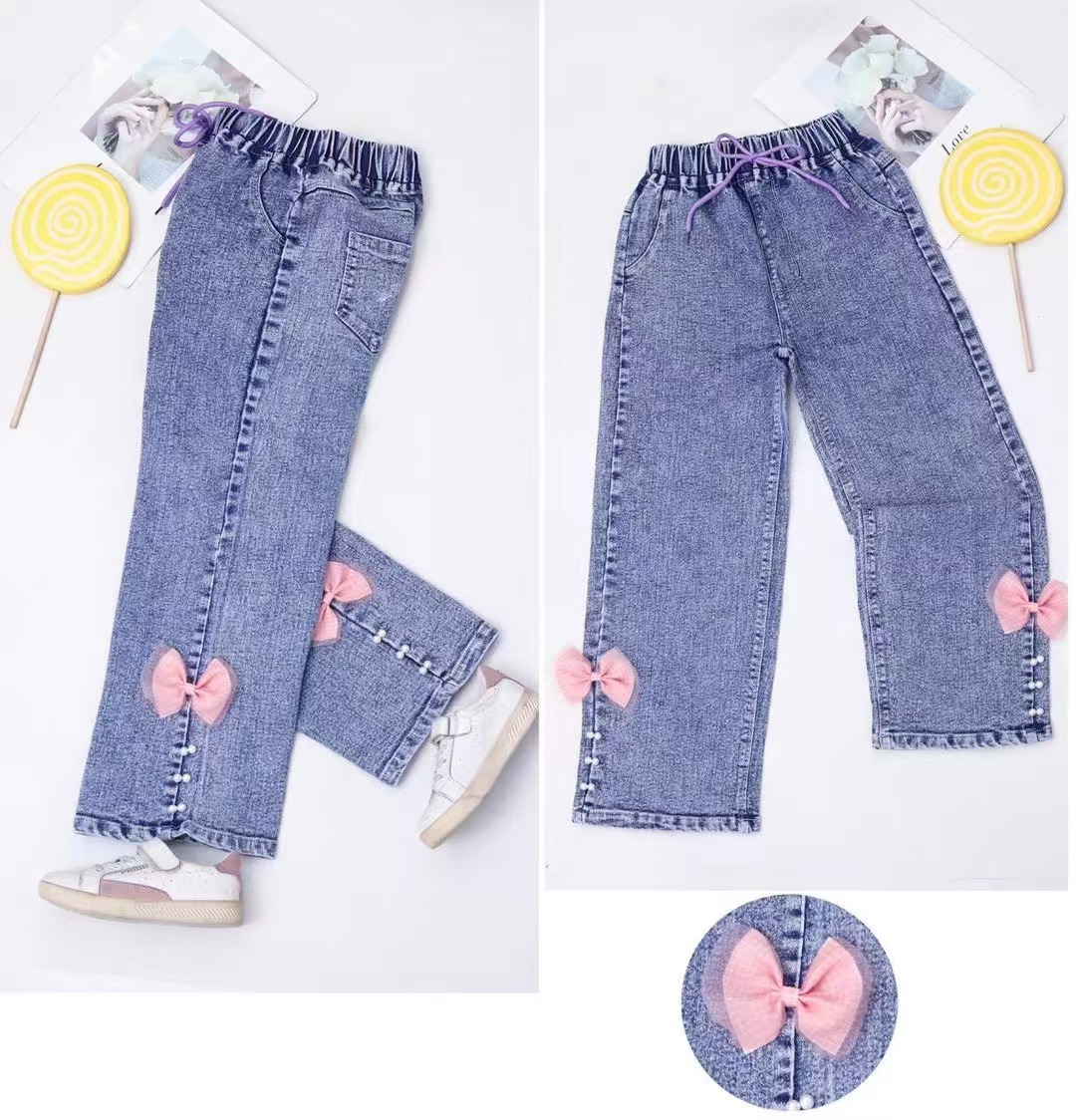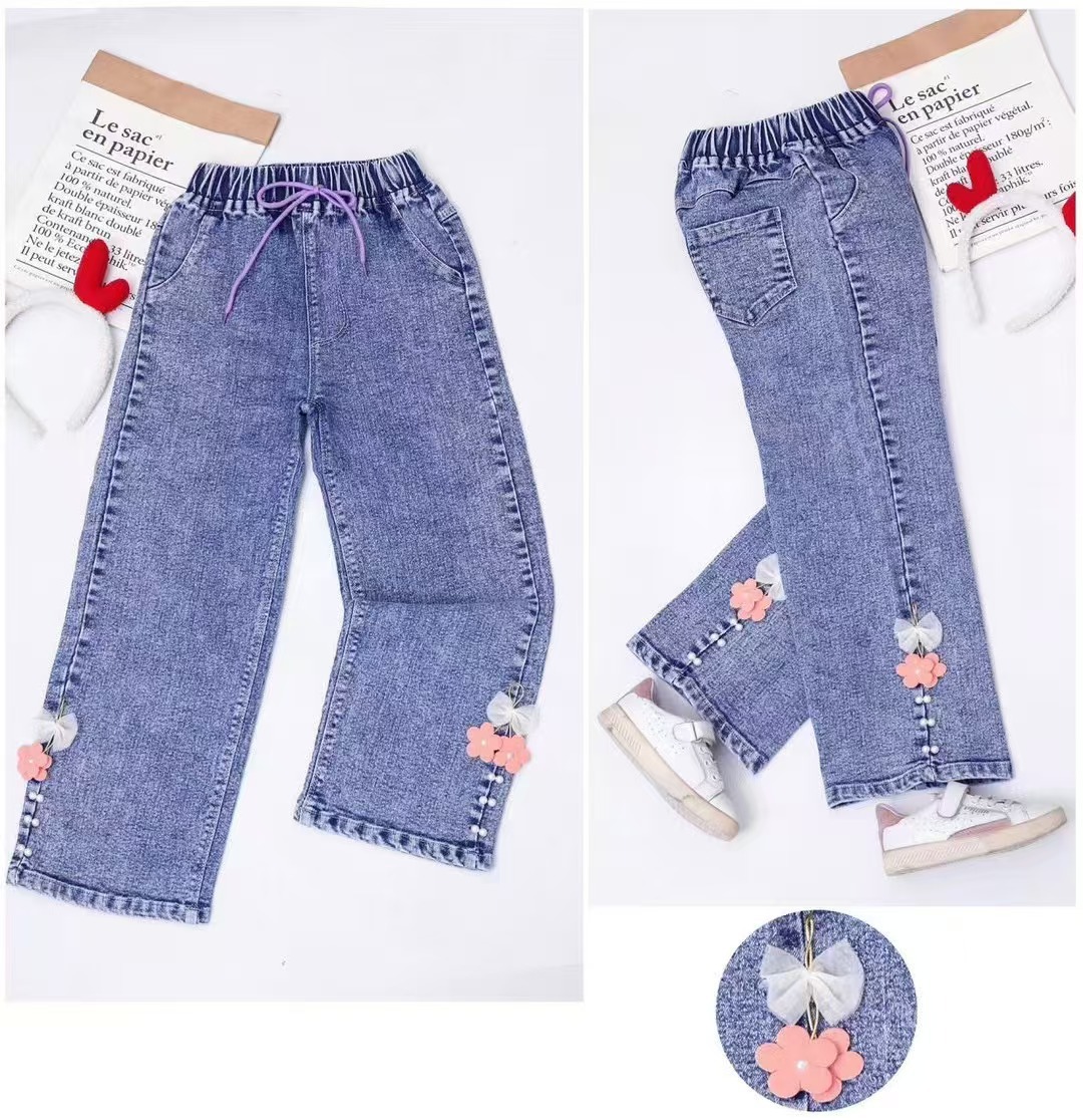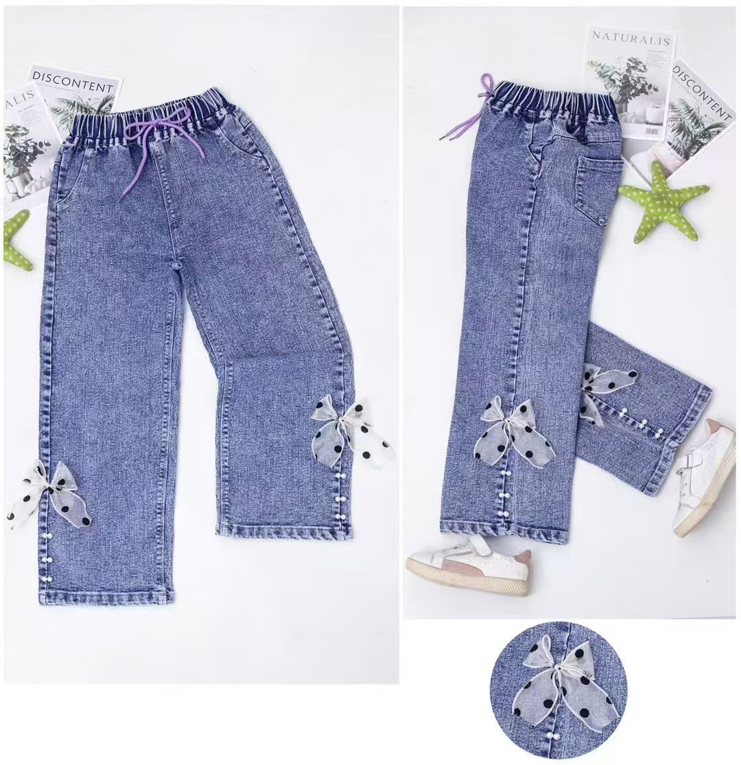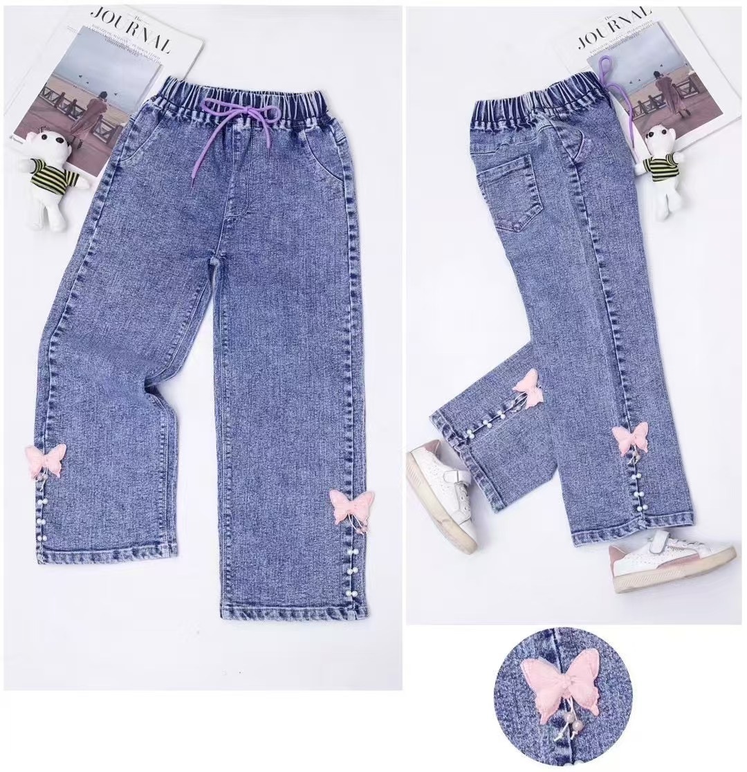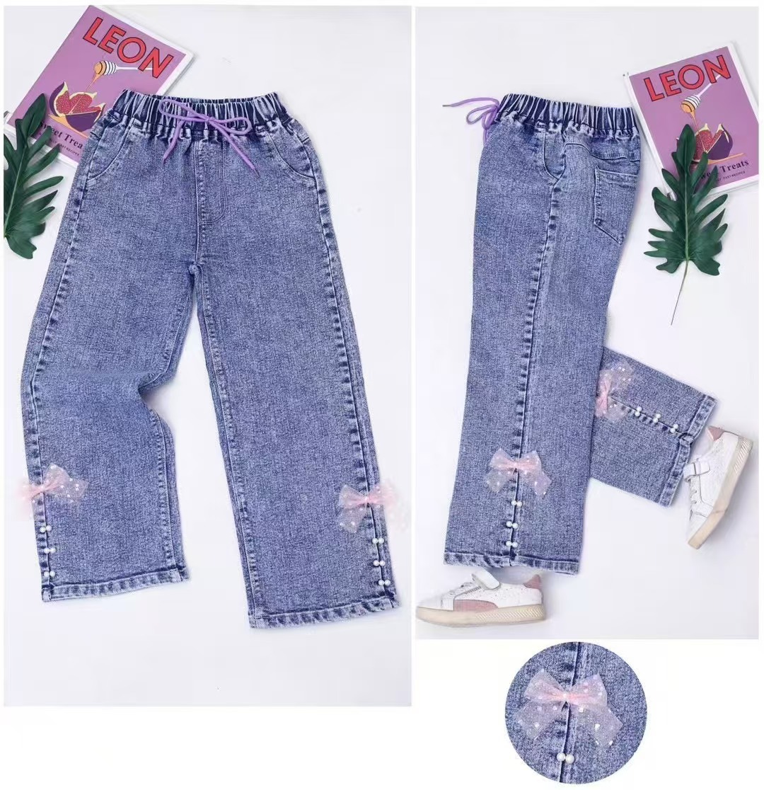 소녀 와이드 레그 청바지 봄과 가을 2025 새로운 어린이 느슨한 스트레이트 레그 와이드 레그 청바지 올 매치 패션스토어 가기
