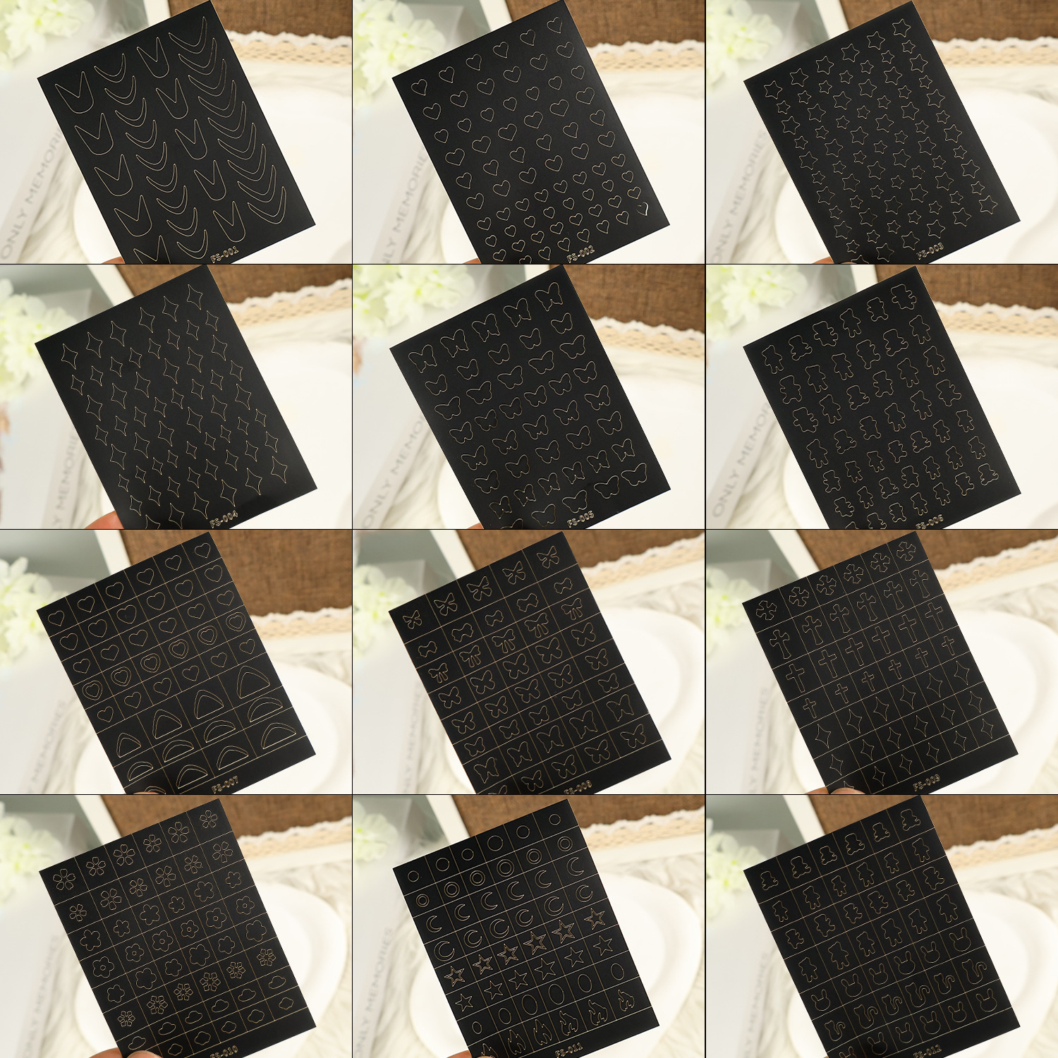 중공 프랑스 네일 아트 스티커 스프레이 페인팅 5 점 별 사랑 곰 격자 무늬 스프레이 건 오버플로 방지 데칼 FS 모델링