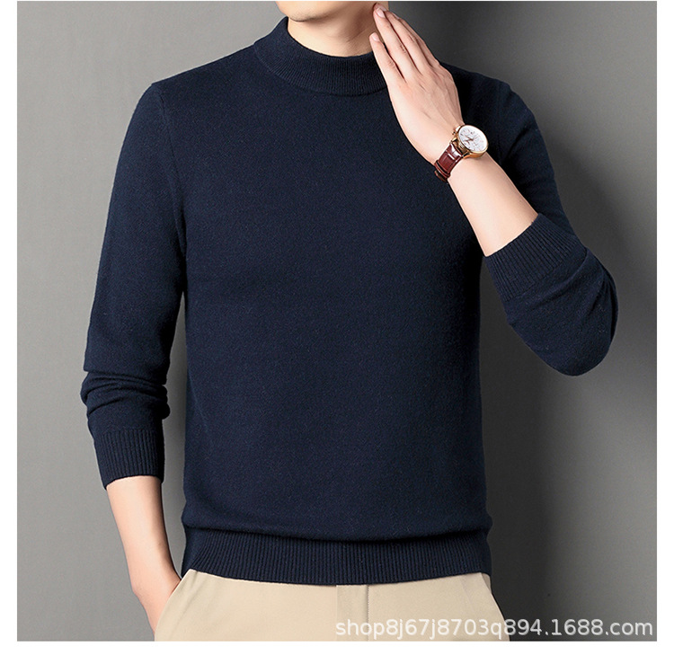 도매 새로운 남성 울 스웨터 남자 하프 터틀넥 터틀넥 솔리드 컬러 울 니트 베이스 셔츠 캐주얼 루즈