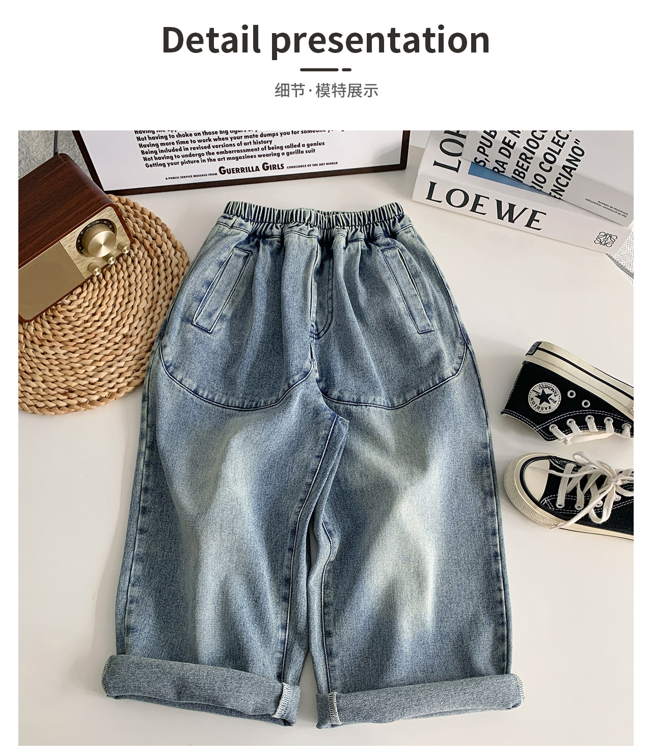 Tongku 봄 새로운 스타일 Huzhou Zhili 아동 의류 유행 멋진 소년 캐주얼 바지 디자인 감각 아동 청바지스토어 가기