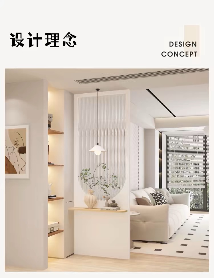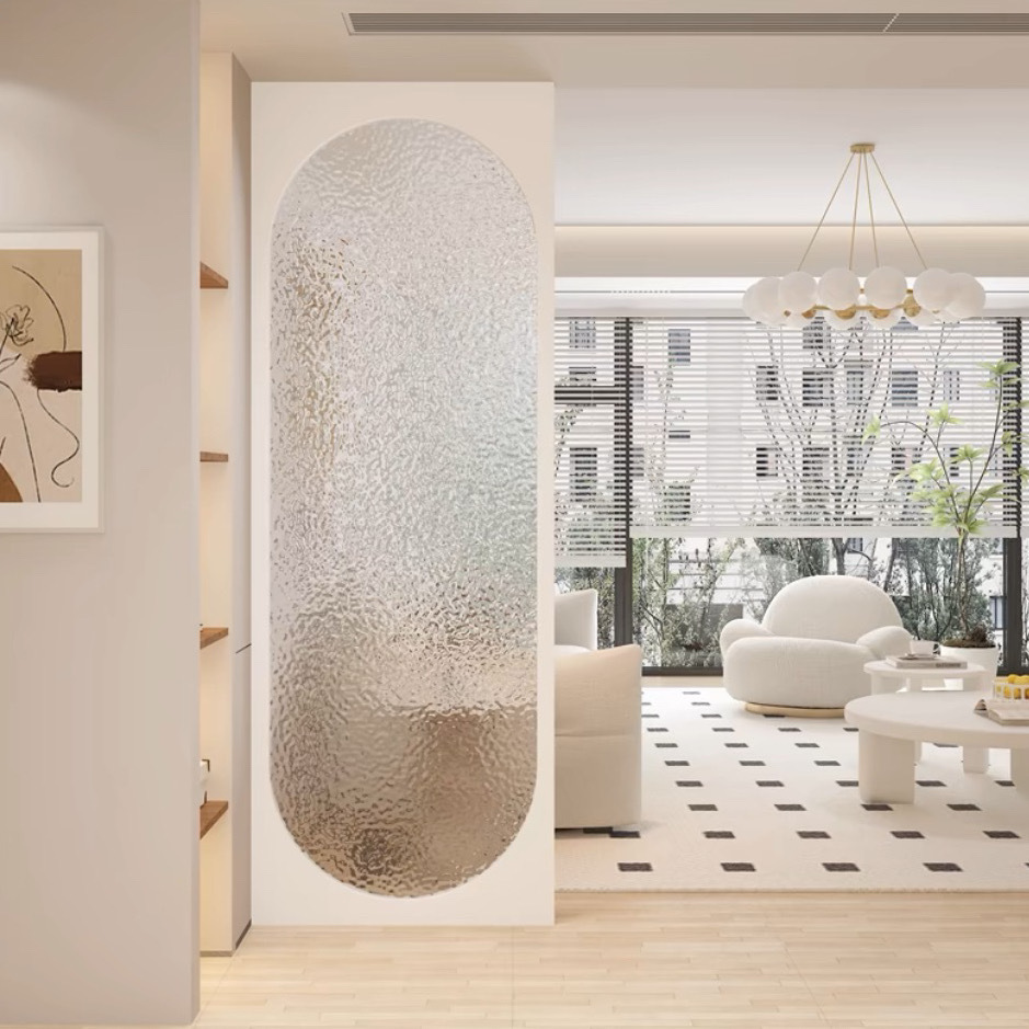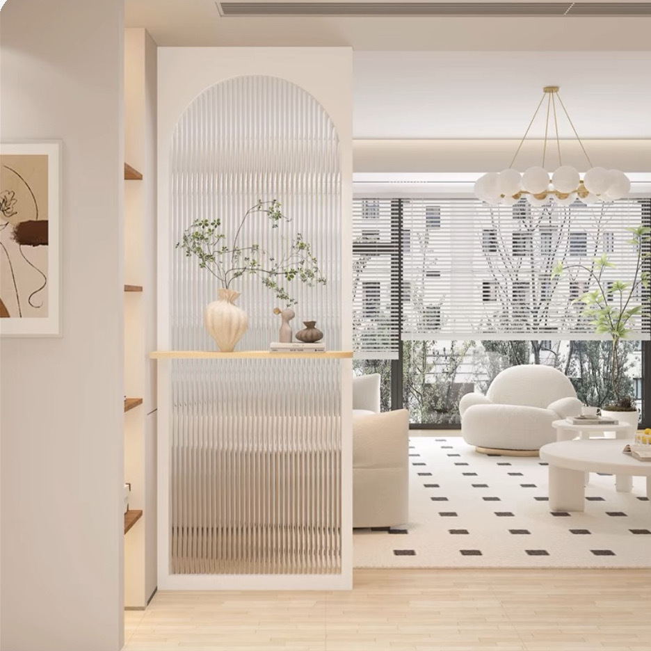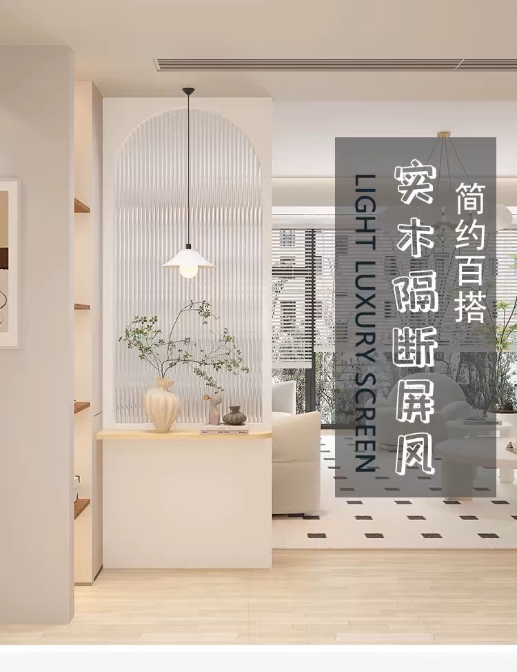 고급 크리에이티브 크림 스타일 거실 식당 유리 파티션 세탁기 홈 차폐 솔리드 우드 입구 화면