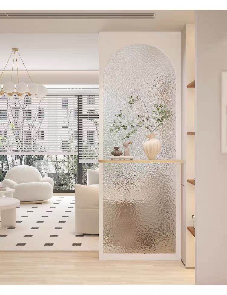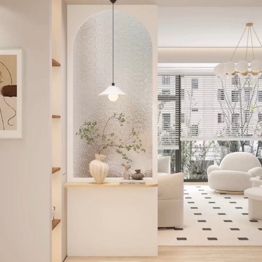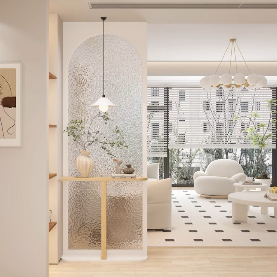 고급 크리에이티브 크림 스타일 거실 식당 유리 파티션 세탁기 홈 차폐 솔리드 우드 입구 화면스토어 가기