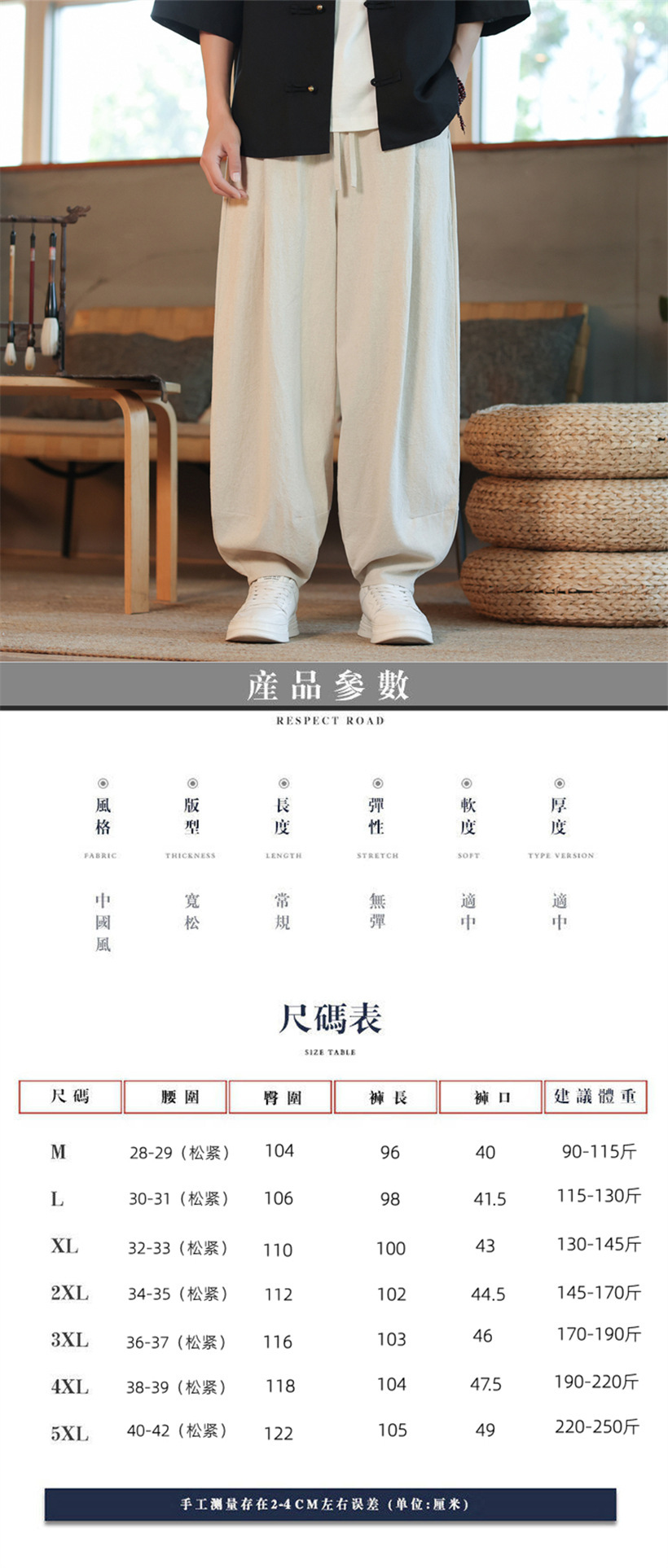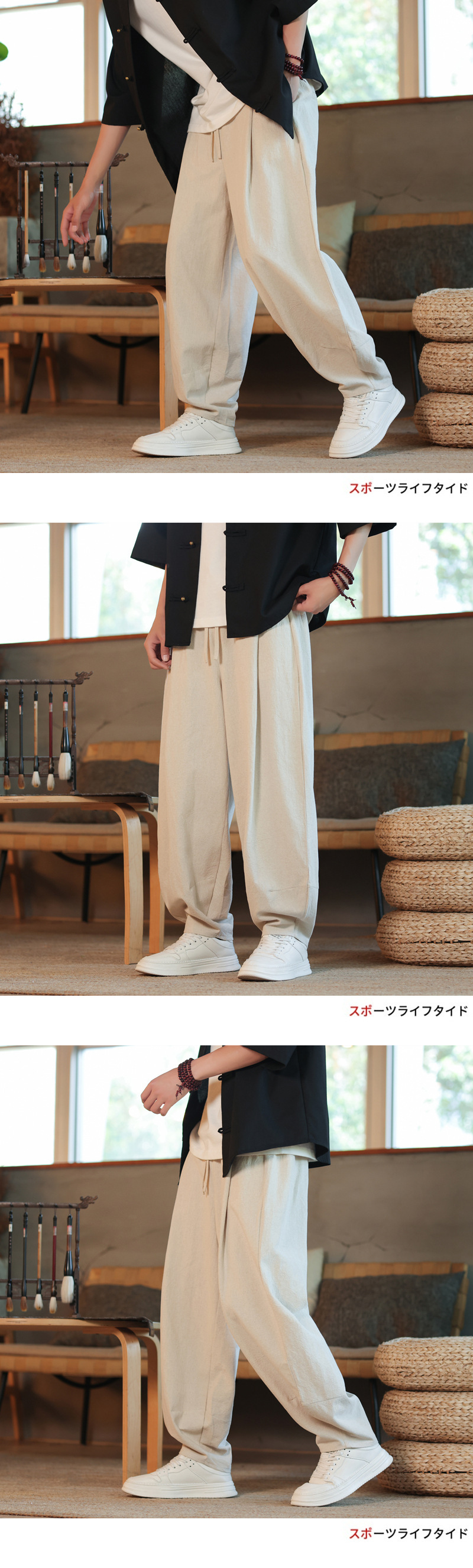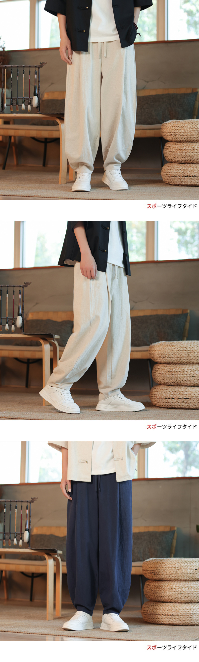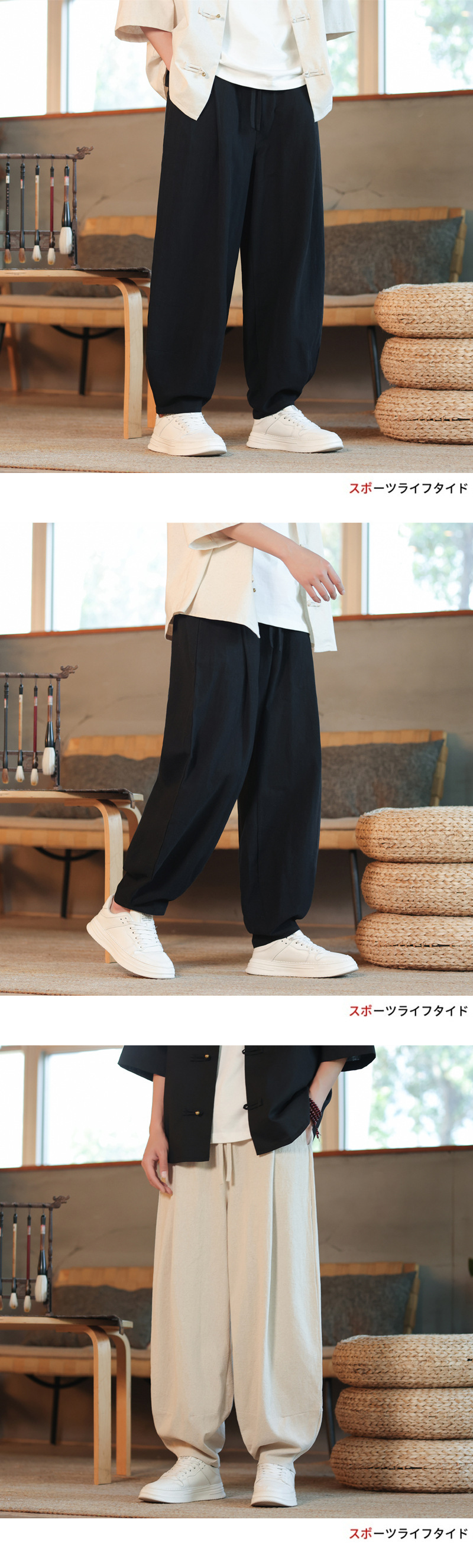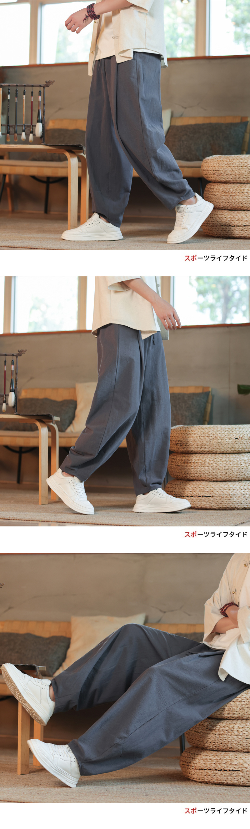 새로운 국경 중국 스타일 코튼 및 리넨 남성 바지 여름 얇은 레트로 블루머 느슨한 다리 패션 캐주얼 바지스토어 가기