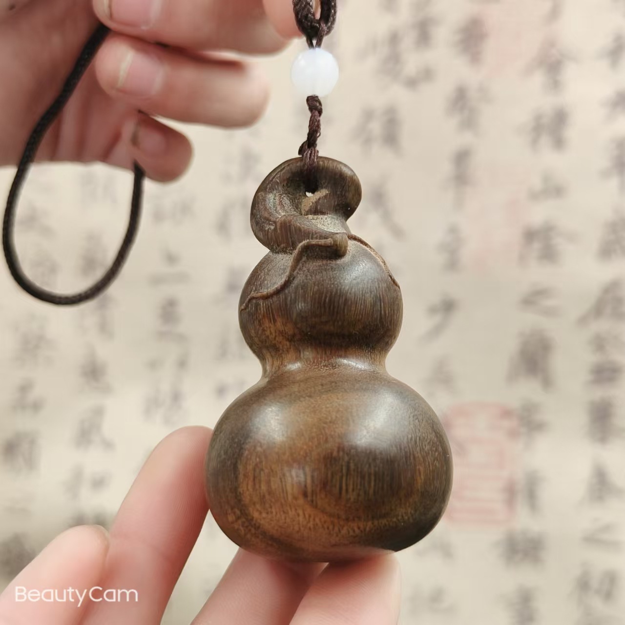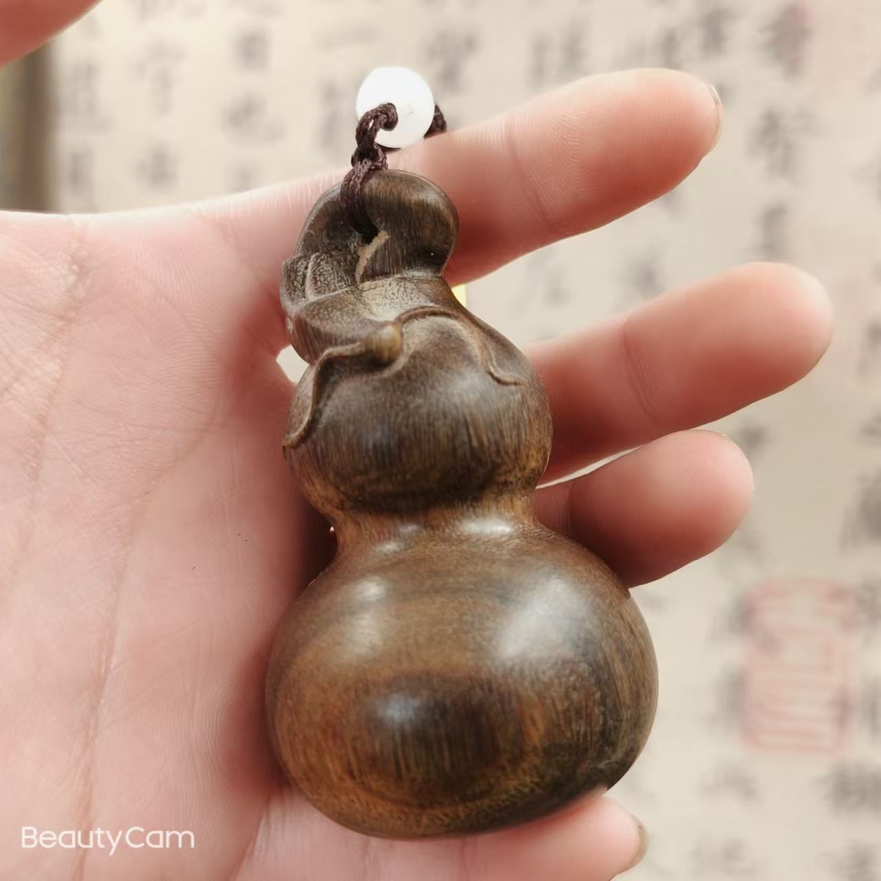 녹색 백단목 조롱박 손잡이 조각 펜던트 나무 문화 놀이 공예 로프 없는 수도꼭지 조롱박