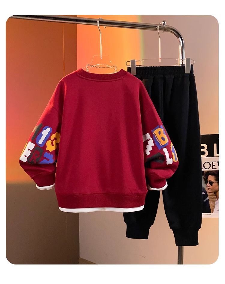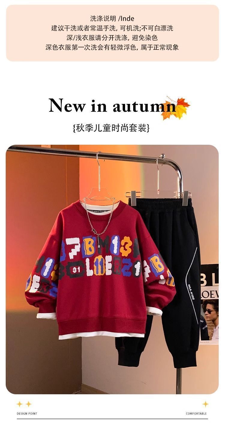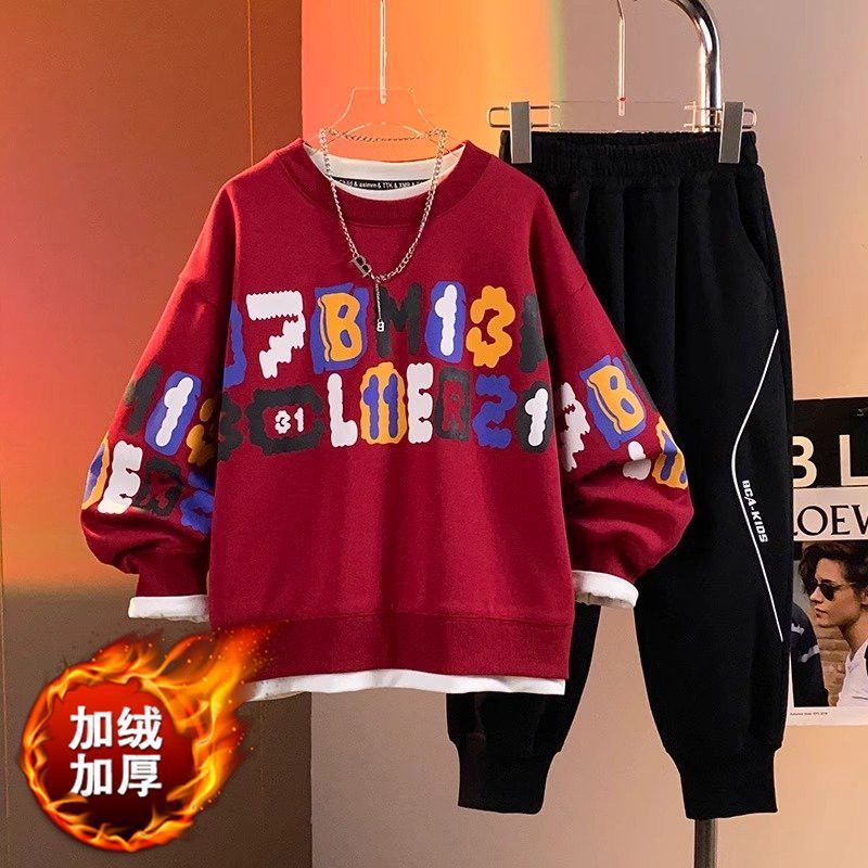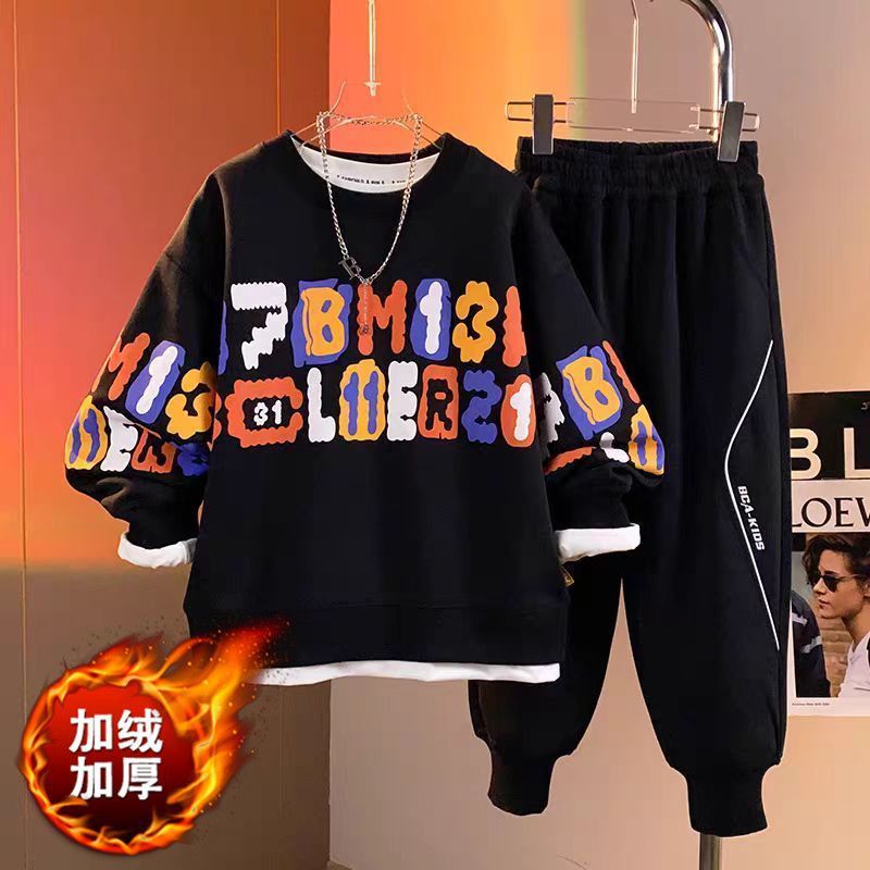 어린이 세트 소년 기모 두꺼운 땀 따뜻한 새 2024 소년 캐주얼 빅 보이 핸즈섬 투피스 세트스토어 가기