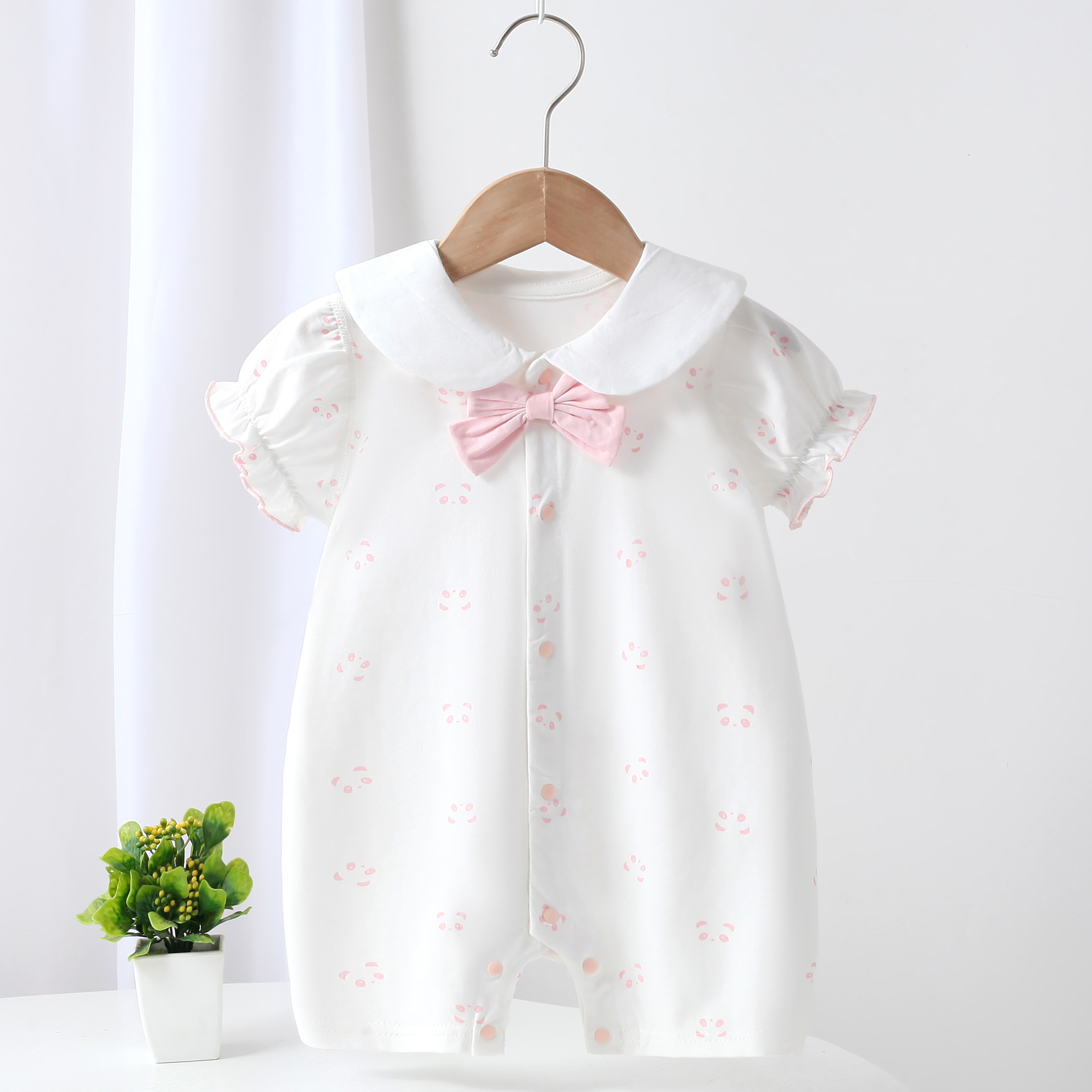 여름 새로운 유아 뼈없는 반팔 원피스 세트 신생아 활 귀여운 토끼 여성 보물 한 조각스토어 가기