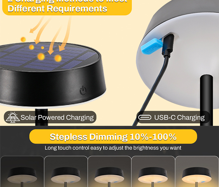 야외 태양광 테이블 램프, 야간 조명, 식탁 램프, 캠핑 램프, 실내 충전식 및 플러그인, 분위기 있는 조명, 고급스럽고 고급스러운 느낌