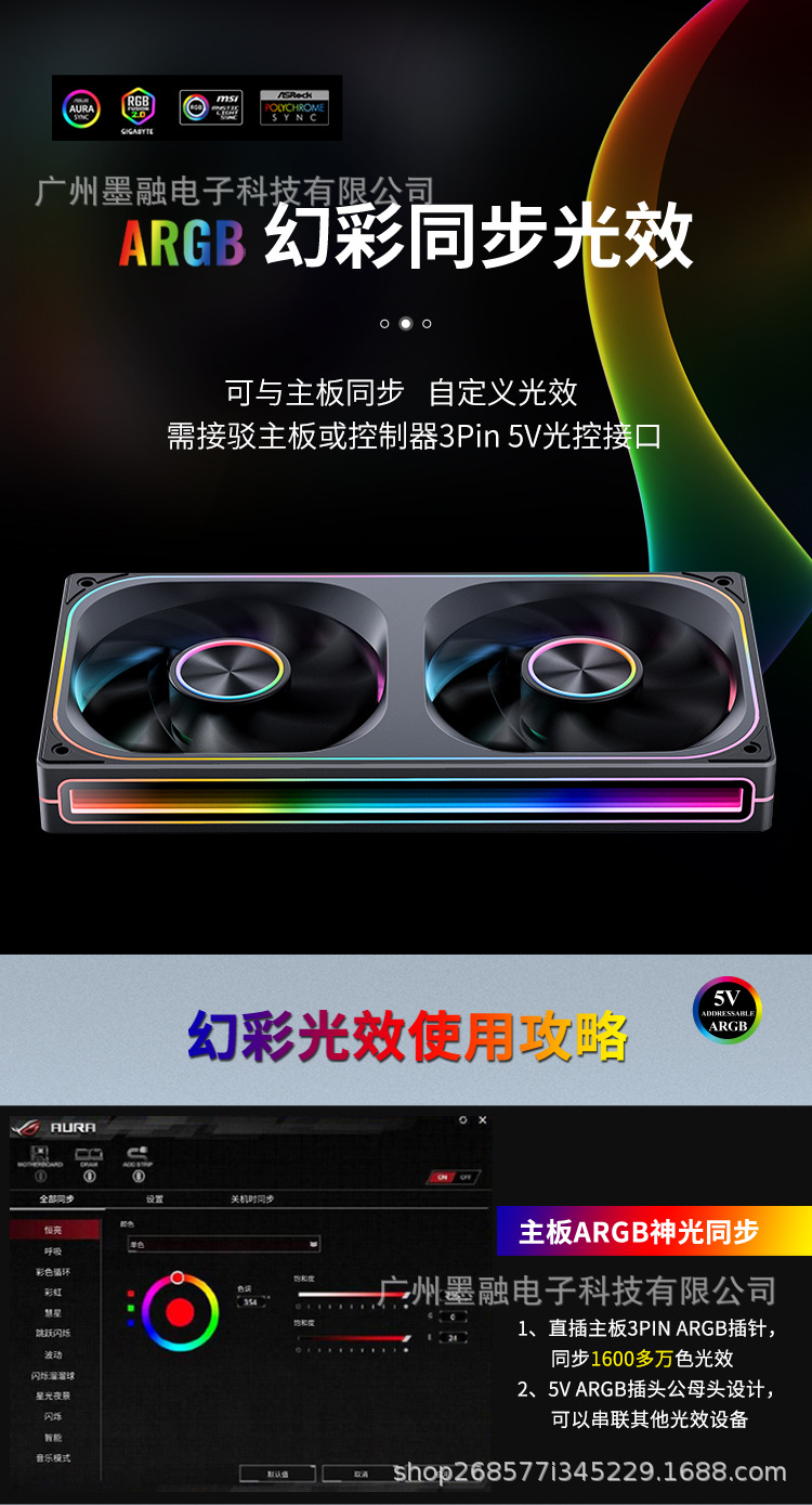 Qiao Sibo ZA-240/360 공동 빌딩 블록 12cm 섀시 팬 4 면 ARGB 동기 온도 제어 음소거 콜드 행