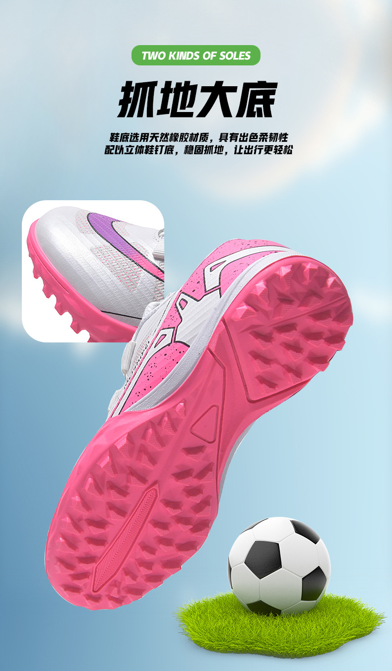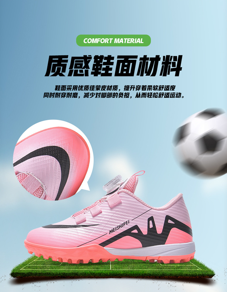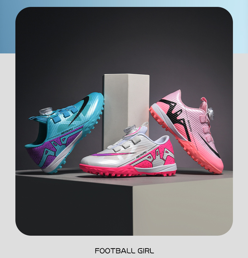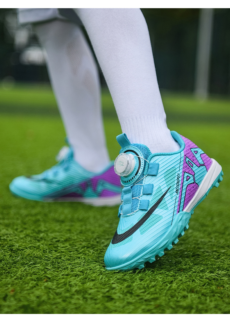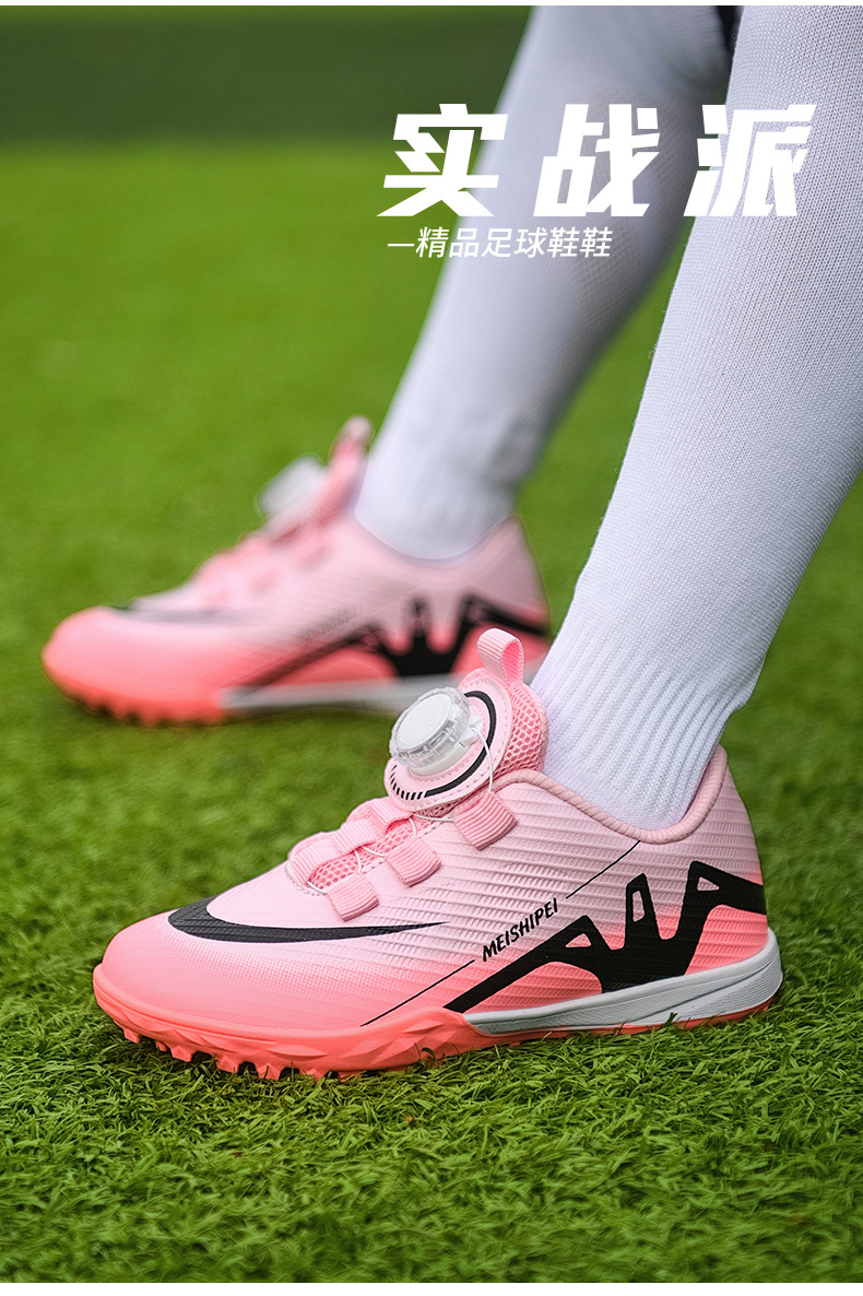 가죽 분쇄 된 손톱 어린이 축구 신발 새로운 국경 어린이 회전 버클 축구 훈련 신발 미끄럼 방지 소녀 훈련 신발