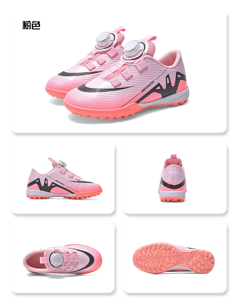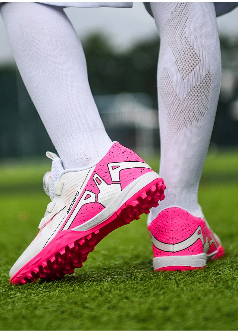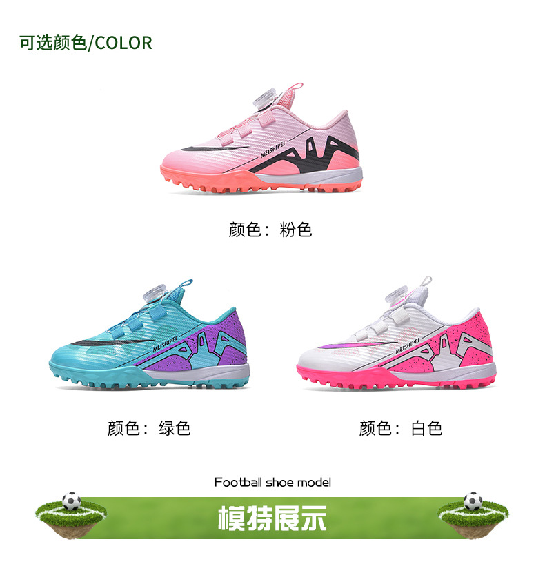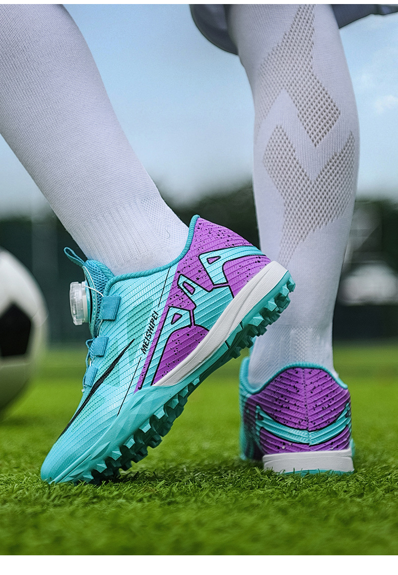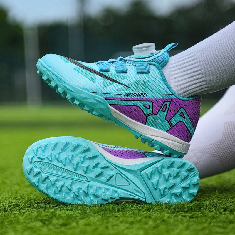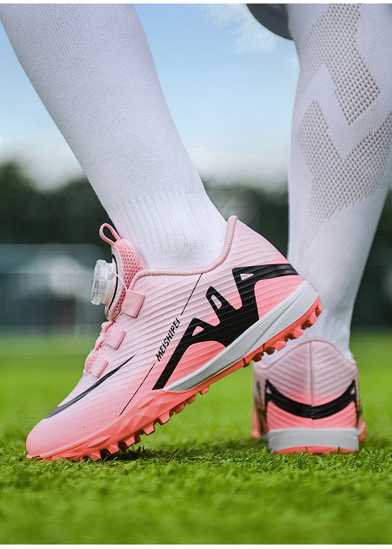 가죽 분쇄 된 손톱 어린이 축구 신발 새로운 국경 어린이 회전 버클 축구 훈련 신발 미끄럼 방지 소녀 훈련 신발