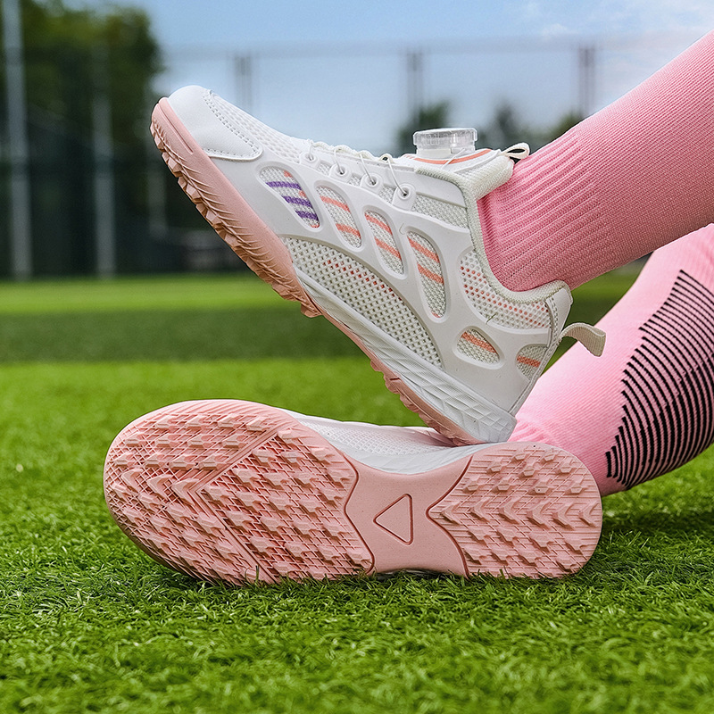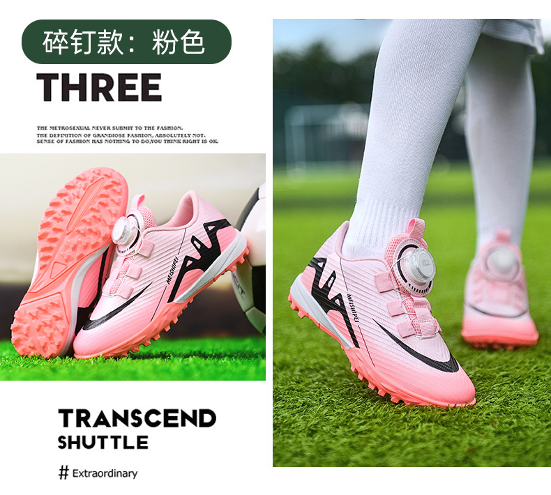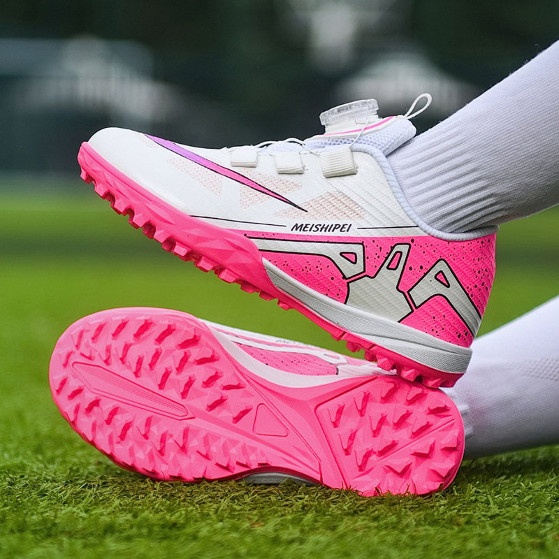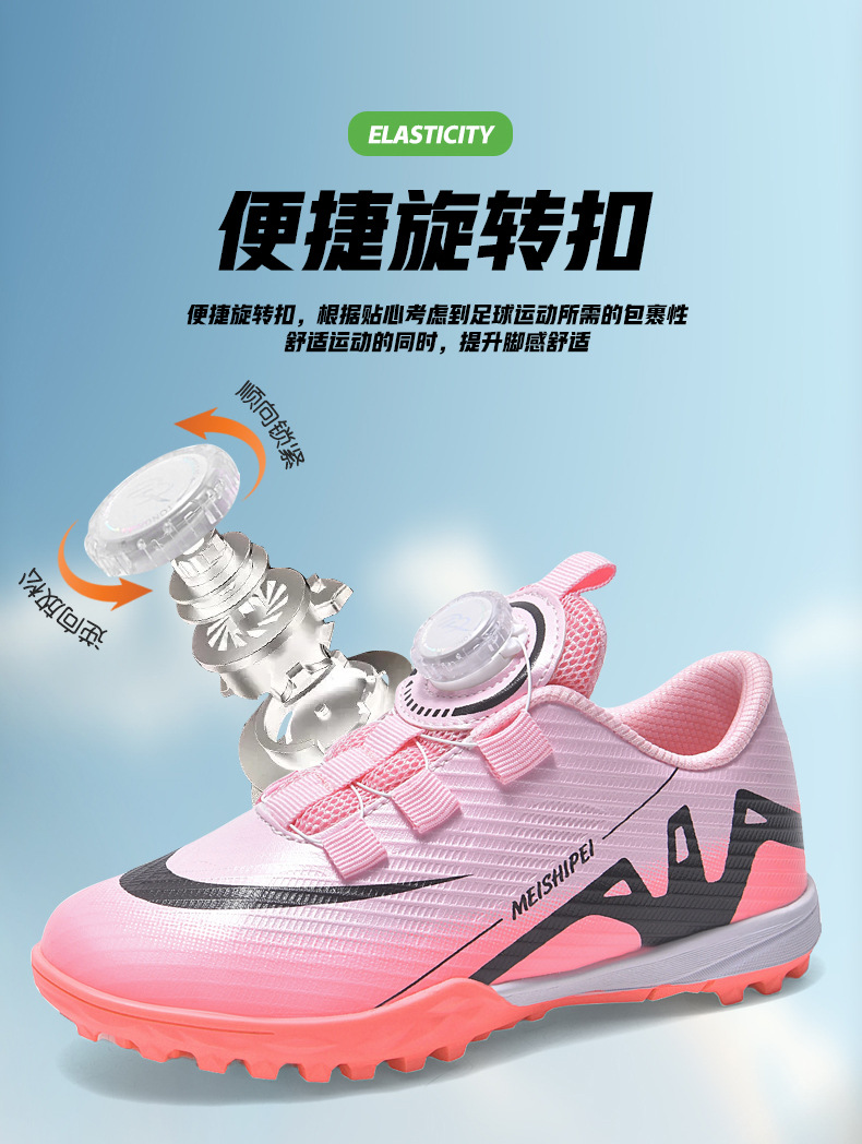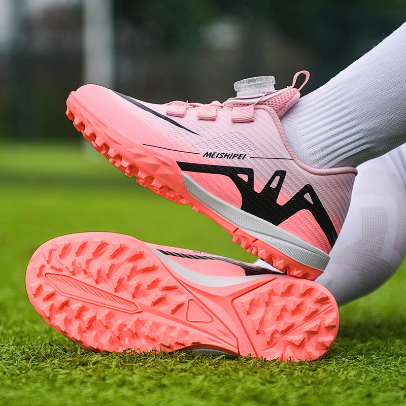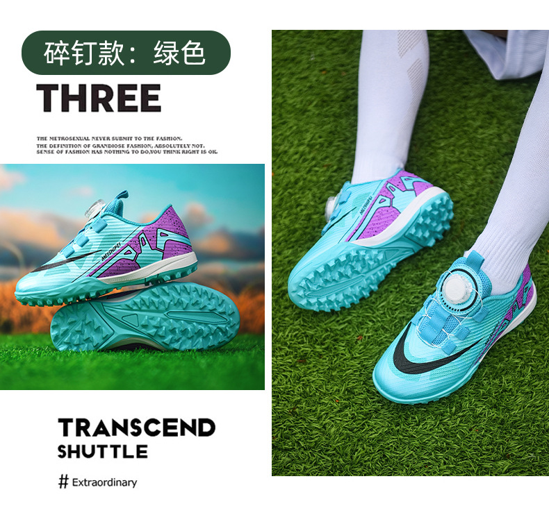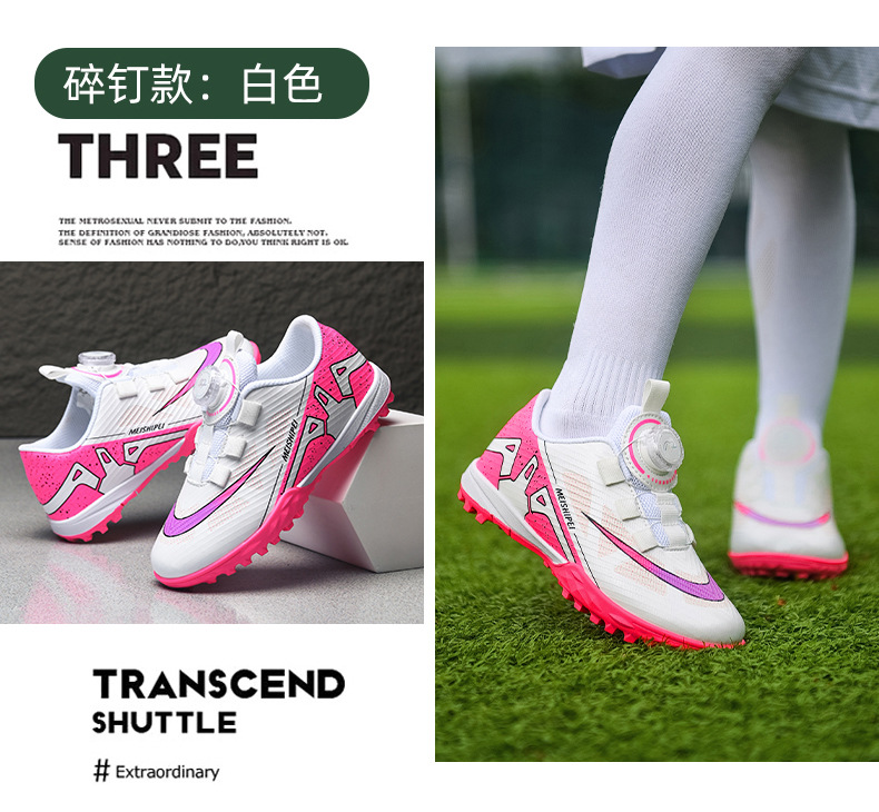 가죽 분쇄 된 손톱 어린이 축구 신발 새로운 국경 어린이 회전 버클 축구 훈련 신발 미끄럼 방지 소녀 훈련 신발