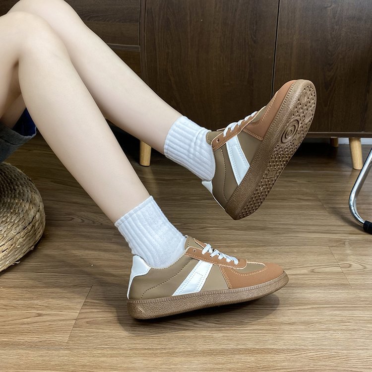 2025 새로운 봄 독일 훈련 화이트 슈즈 여성 두꺼운 하단 라운드 헤드 레이스 업 캐주얼 보드 슈즈 레이스 업 운동화스토어 가기