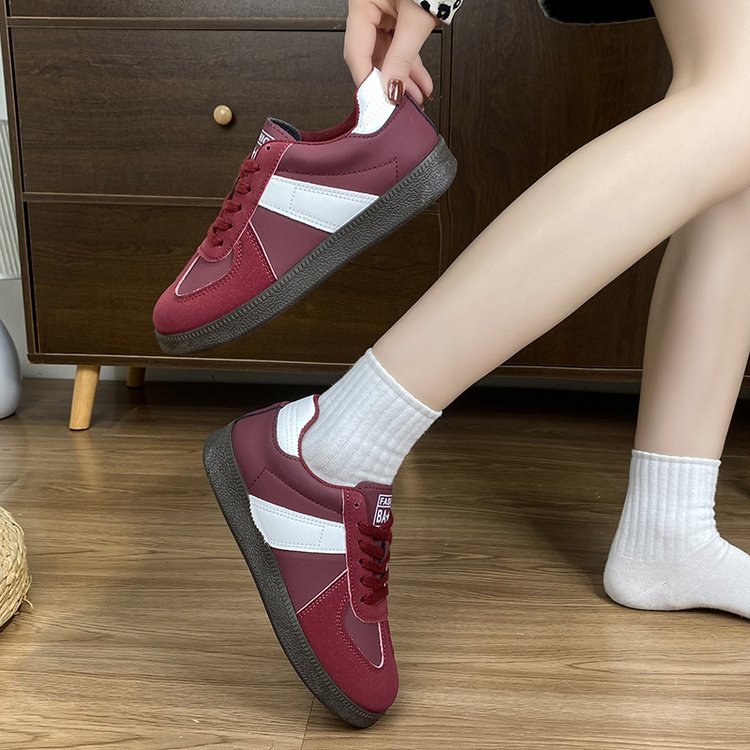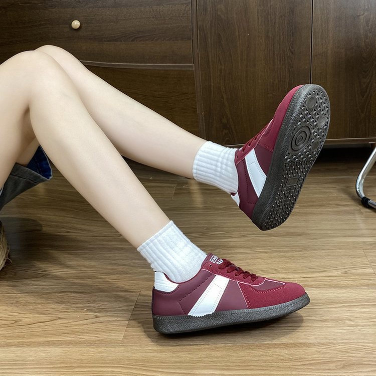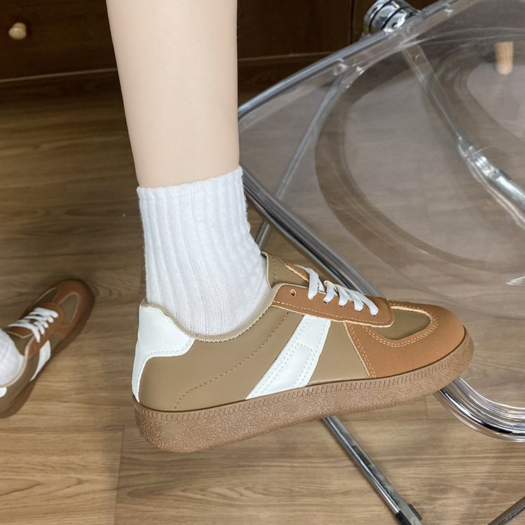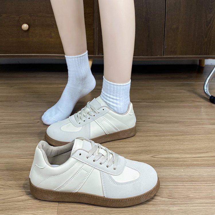 2025 새로운 봄 독일 훈련 화이트 슈즈 여성 두꺼운 하단 라운드 헤드 레이스 업 캐주얼 보드 슈즈 레이스 업 운동화