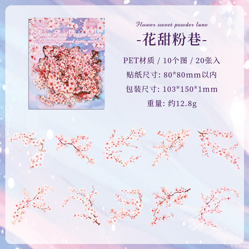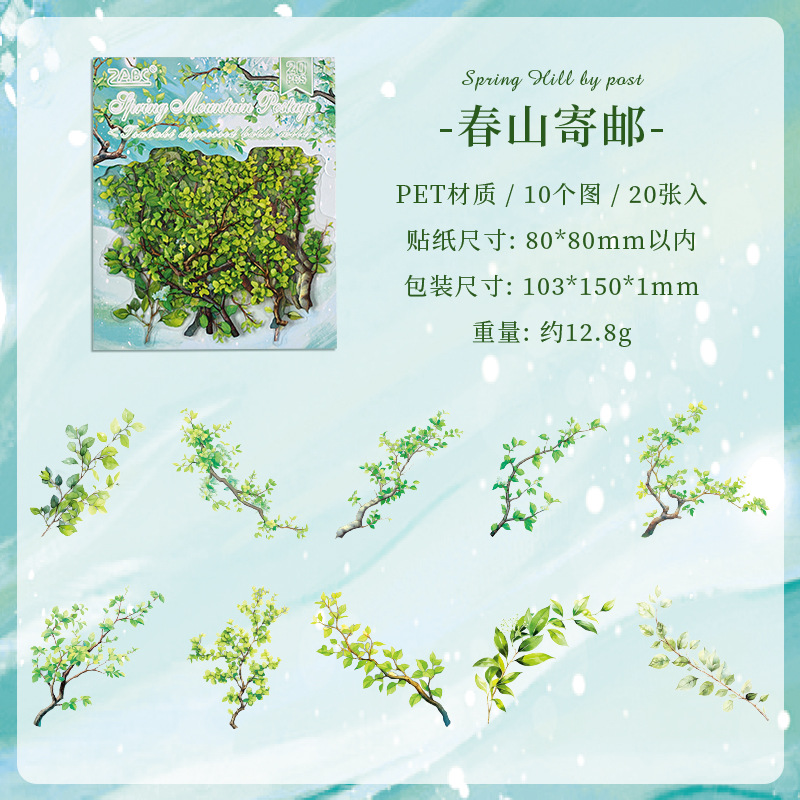 국경 간 ZABC PET 스티커 가방 Chun Yu Mu Ye 시리즈 식물 꽃 테마 손 계정 장식 스티커 20