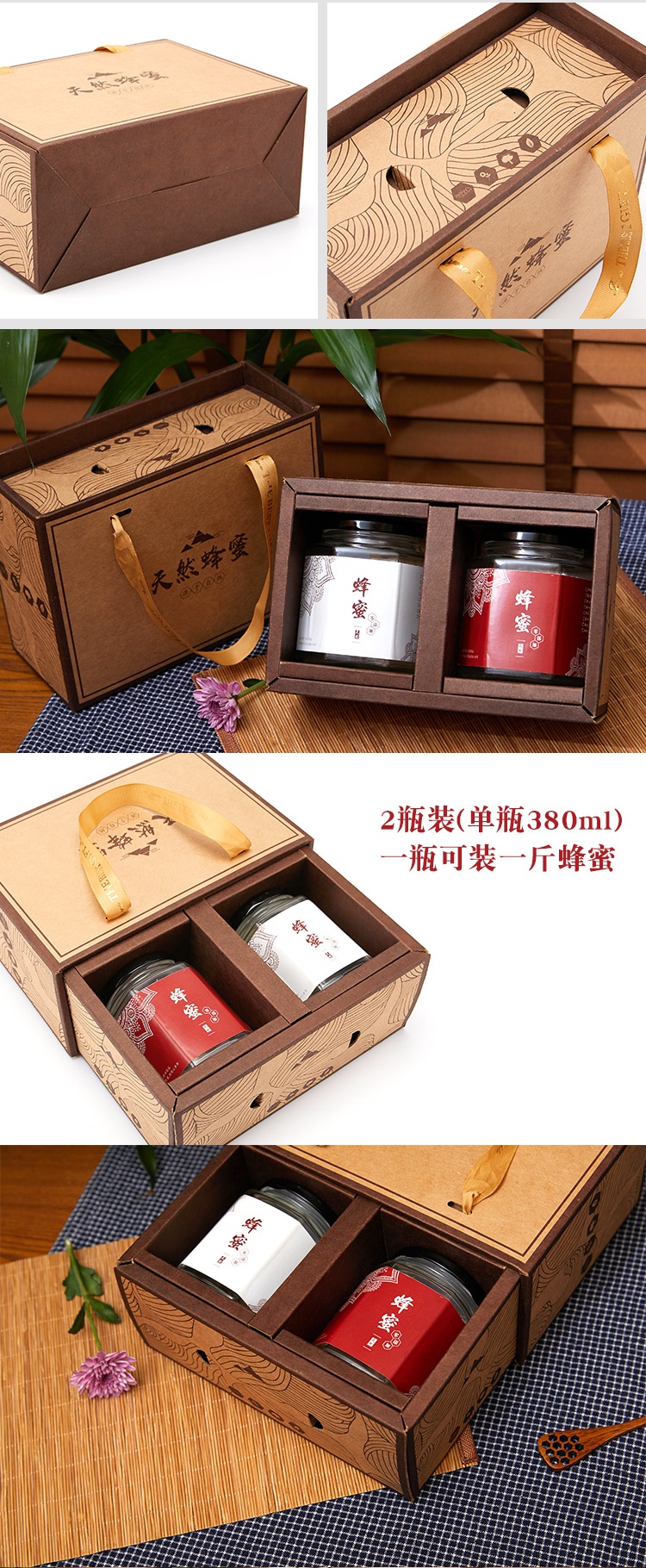 하이 엔드 유니버설 빈 야생 토양 꿀 상자 380 유리 육각형 2 병 휴대용 크래프트 종이 포장 선물 9 벨벳스토어 가기