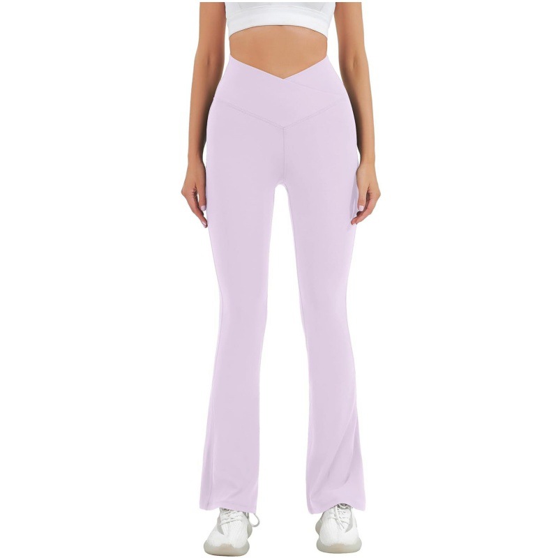 유럽과 미국의 아마존 단색 캐주얼 마이크로 높은 허리 슬림 넓은 발 요가 피트니스 바지 여성용 바지스토어 가기
