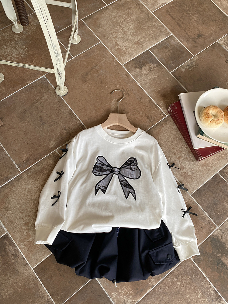 한국 스타일 소녀의 귀여운 활 땀 2025 봄 새로운 스타일 툴링 스타일 우아한 드로우 스트링 꽃 버드 원피스 세트 트렌디