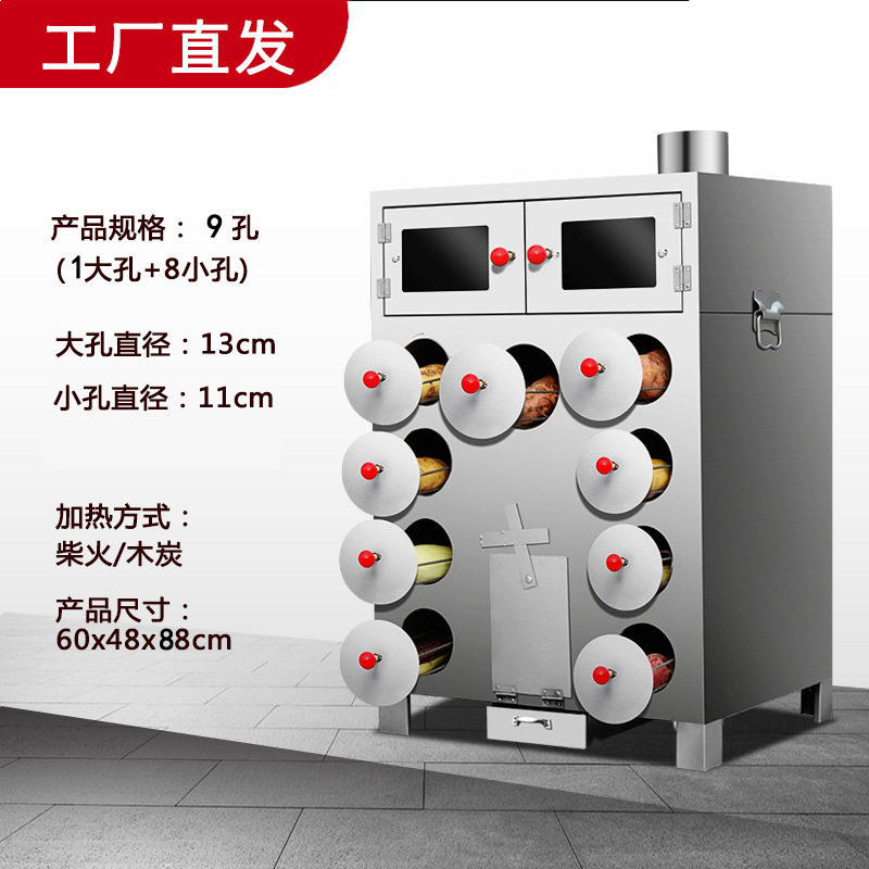 • 9개의 큰 구멍 장작/숯 바퀴, 구운 배 스타일 - 5개 이상의 접시