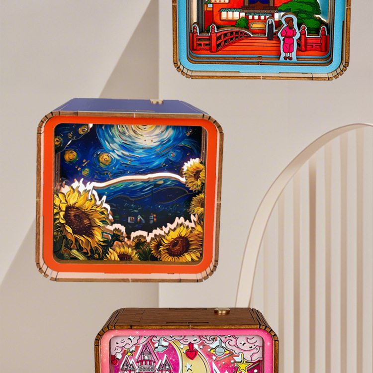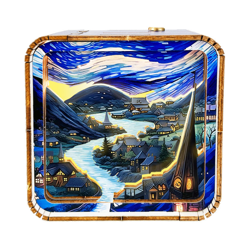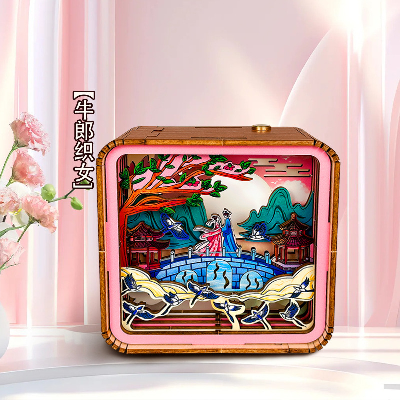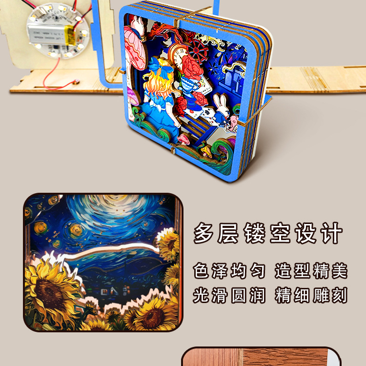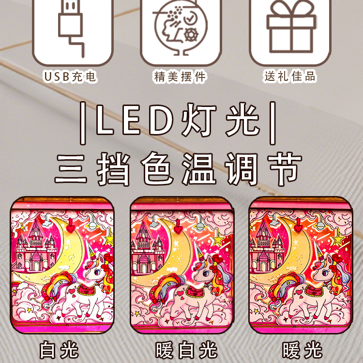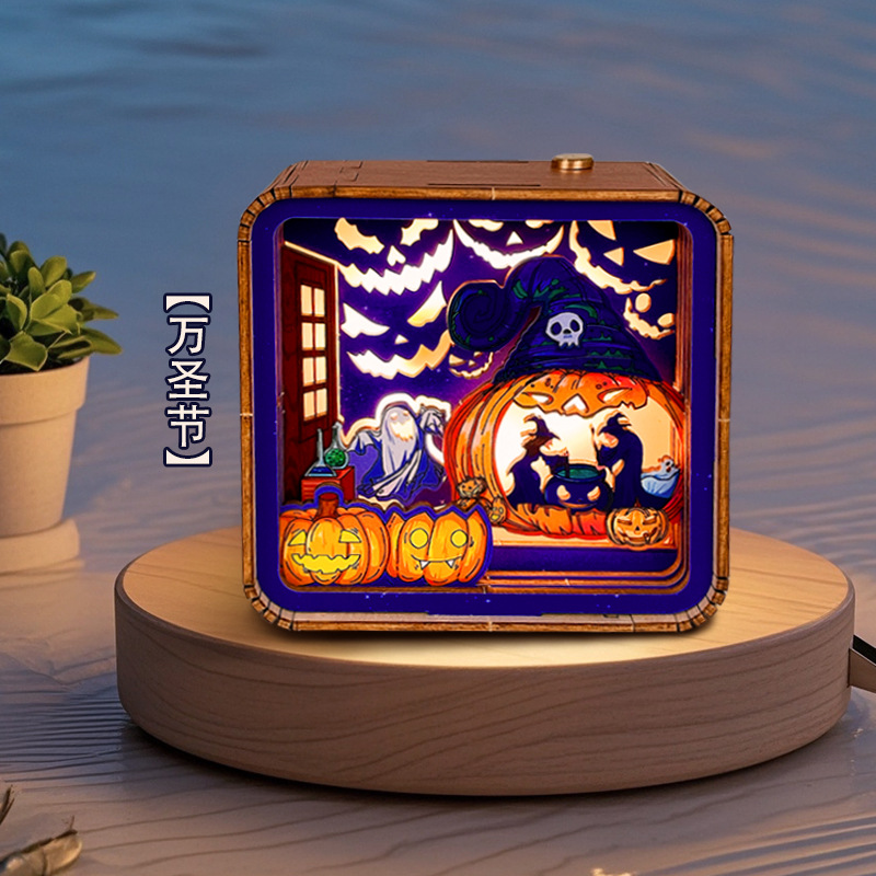 3D 나무 퍼즐 야간 조명 DIY 나무 조각 빛 Wenchuang 장식품 크로스 국경 성인 퍼즐 선물 3 차원 분위기 빛스토어 가기