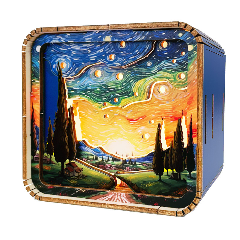 3D 나무 퍼즐 야간 조명 DIY 나무 조각 빛 Wenchuang 장식품 크로스 국경 성인 퍼즐 선물 3 차원 분위기 빛