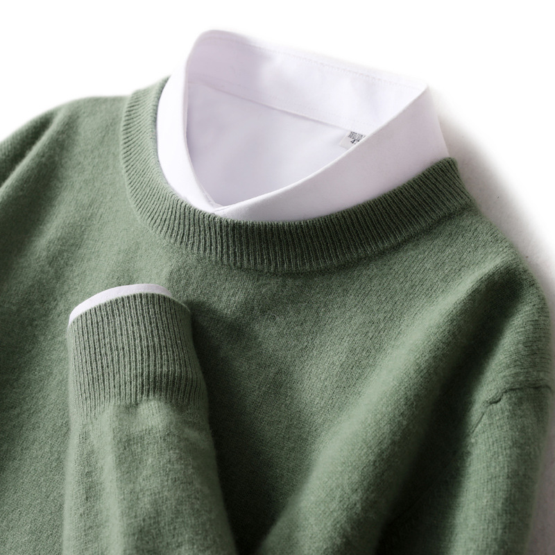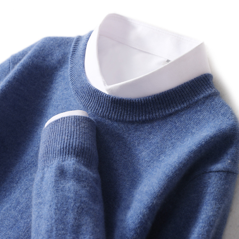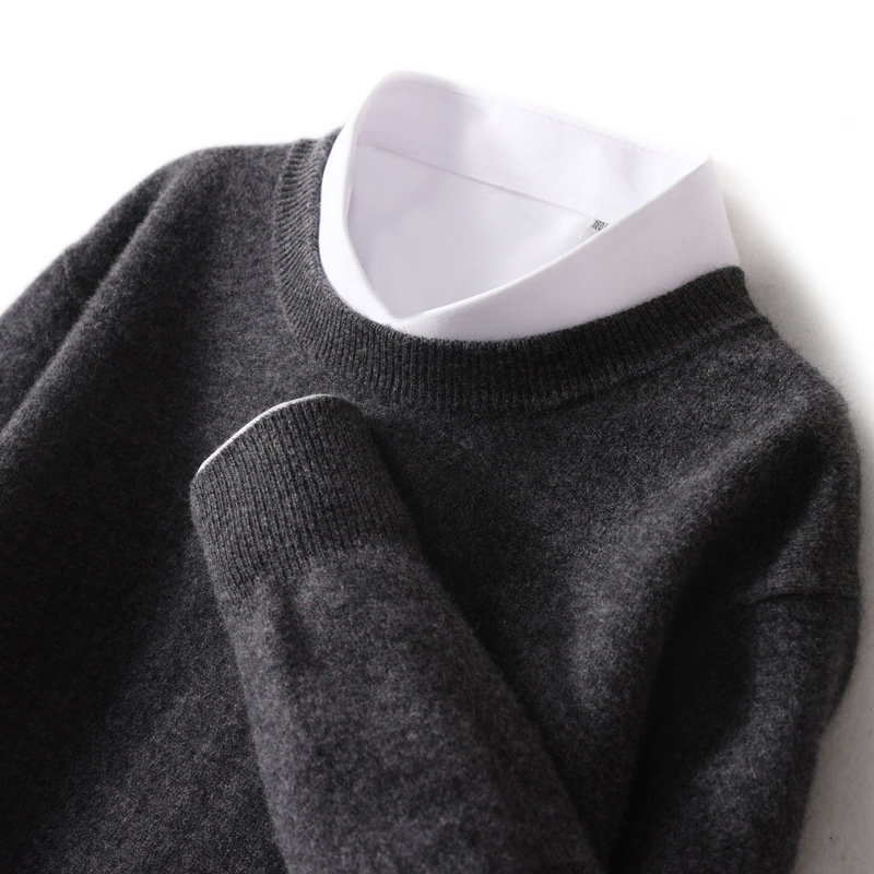 2024 라운드넥 중년 및 청년 비즈니스 캐주얼 스웨터, 루즈핏 울 니트 베이스 스웨터, 남성용 신상