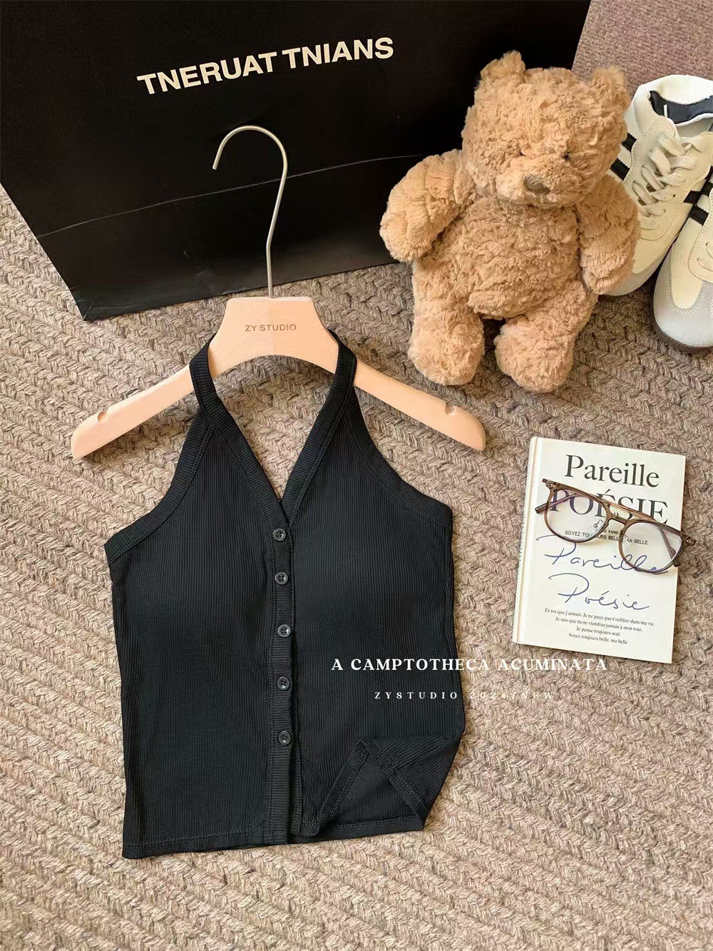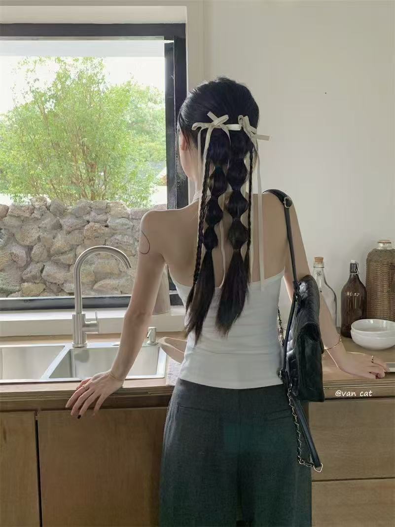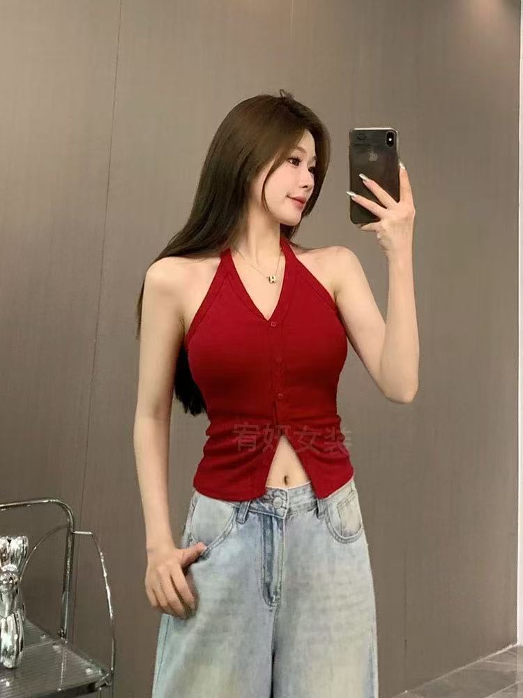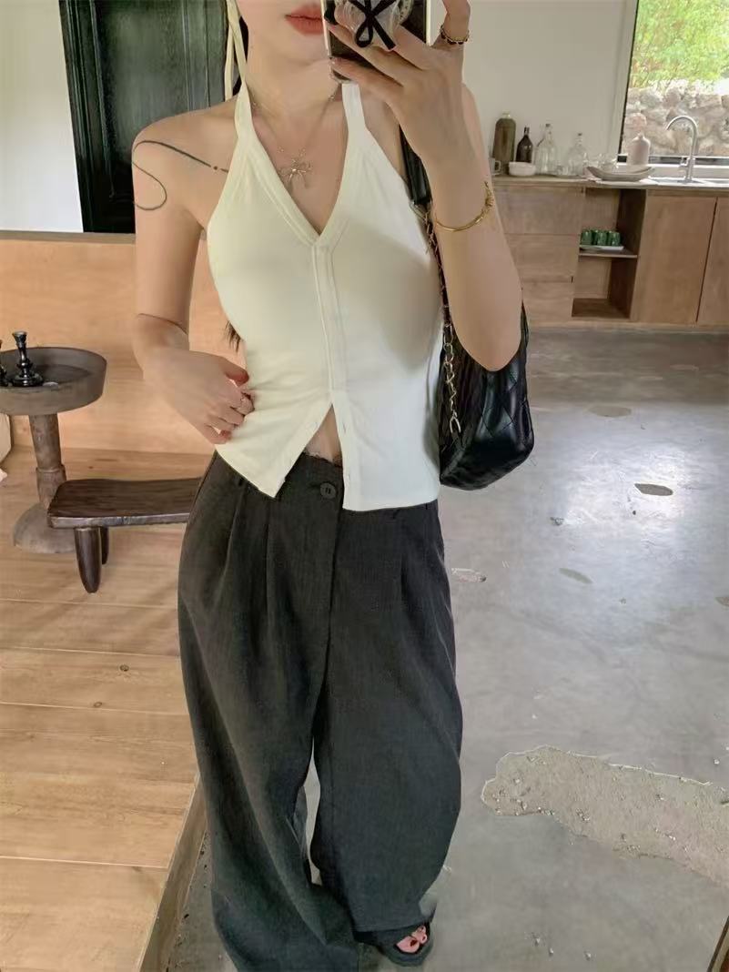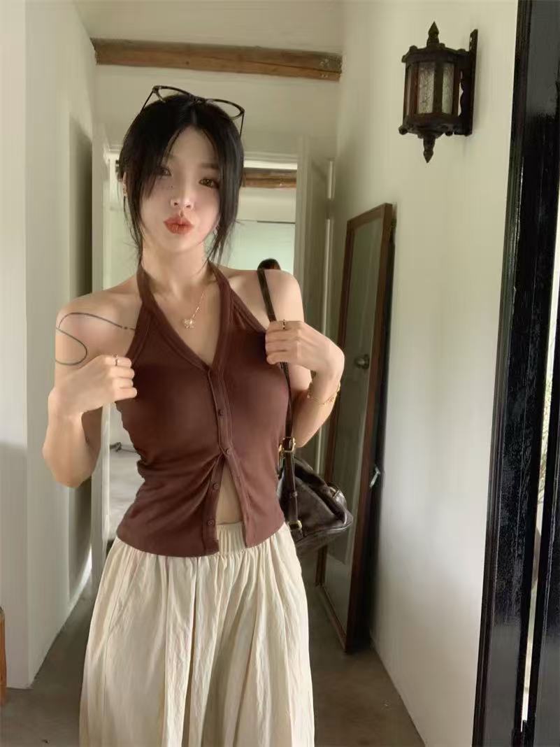 가슴 패드와 화이트 넥 조끼 여성 여름 외부 디자인 센스 틈새 세련된 아름다운 스파이스 소녀 민소매 탑