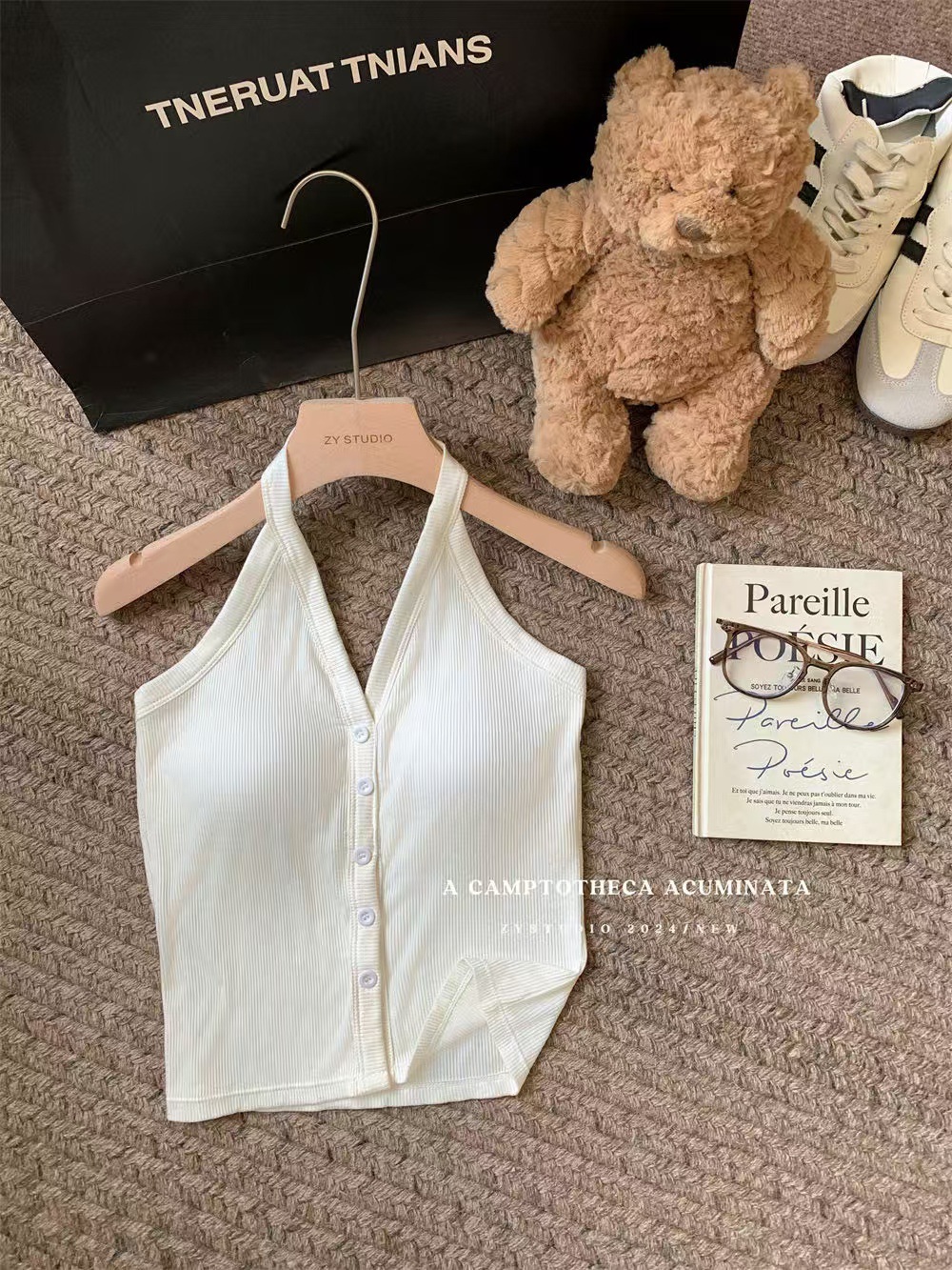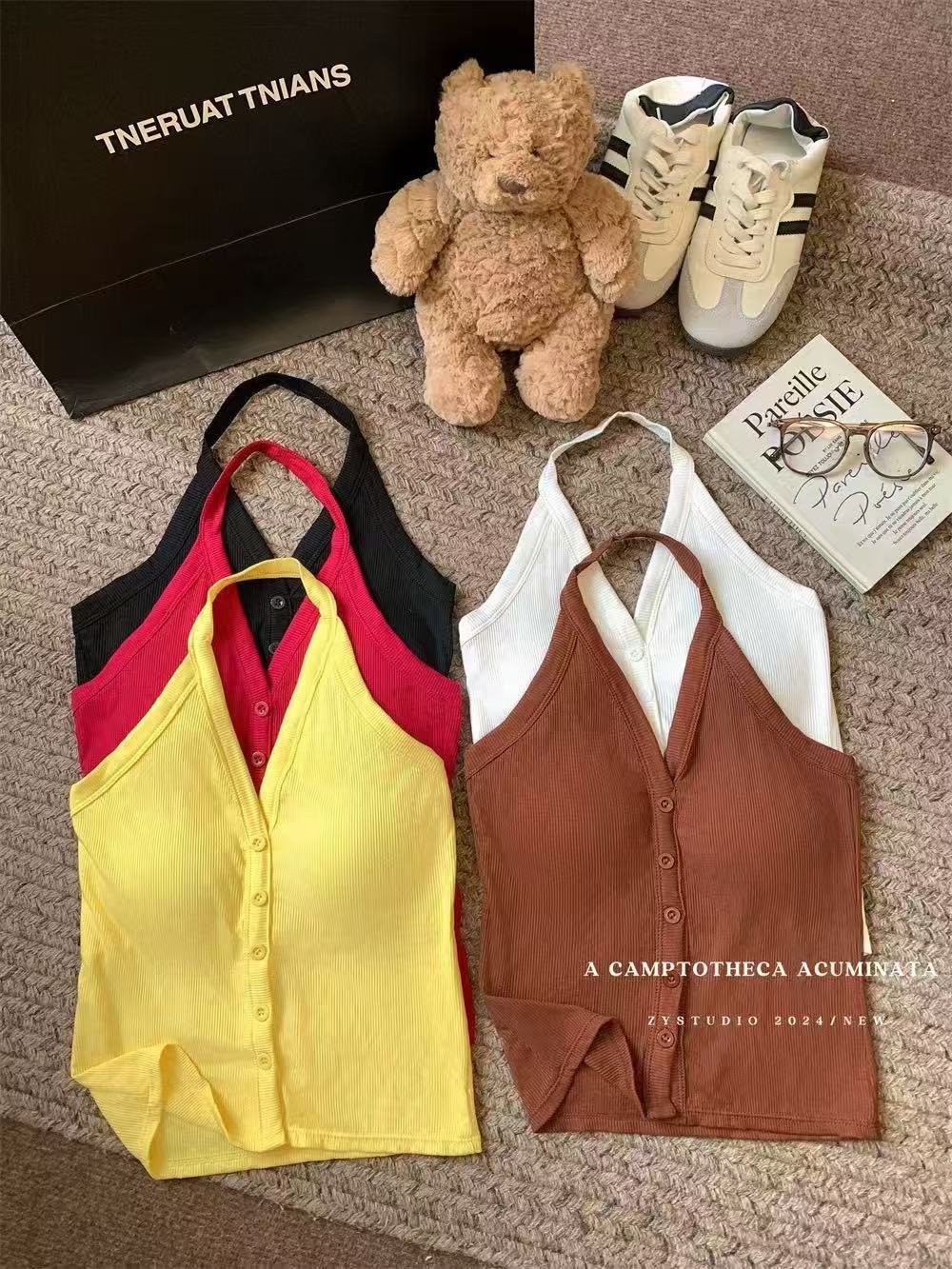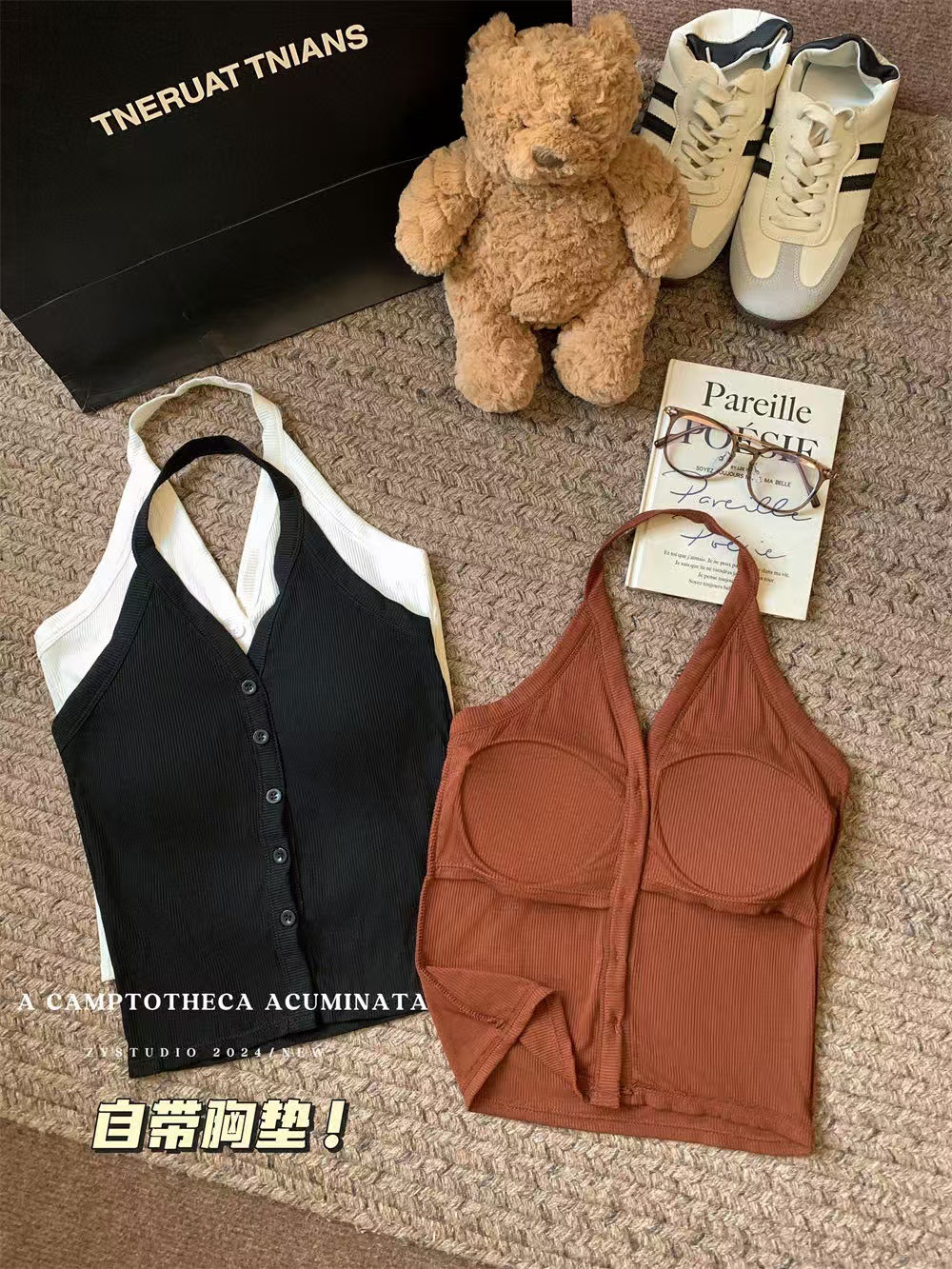 가슴 패드와 화이트 넥 조끼 여성 여름 외부 디자인 센스 틈새 세련된 아름다운 스파이스 소녀 민소매 탑스토어 가기