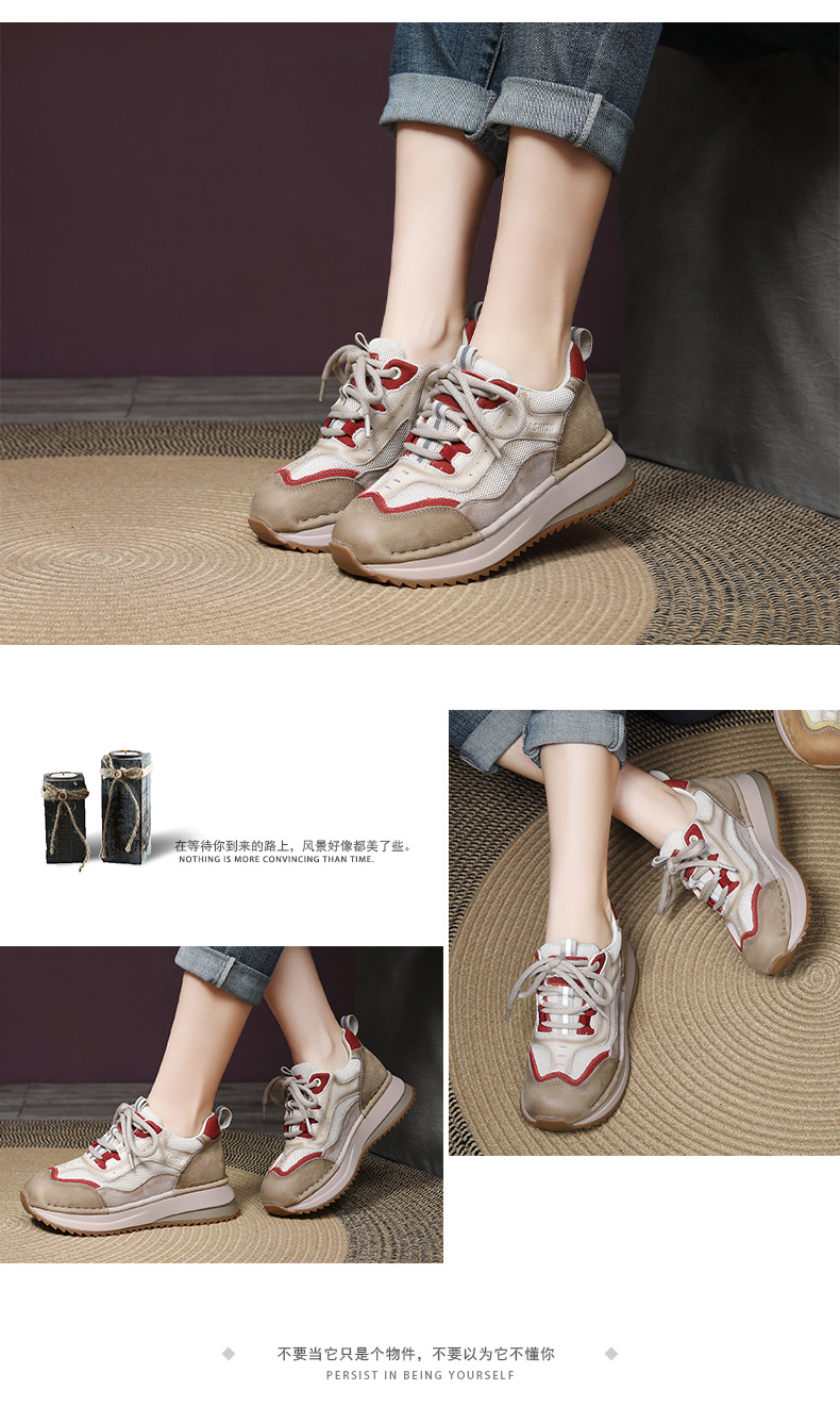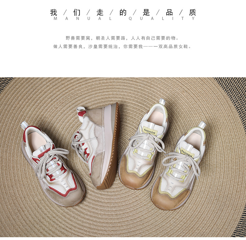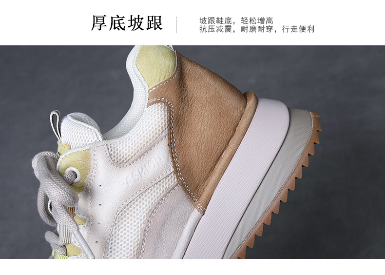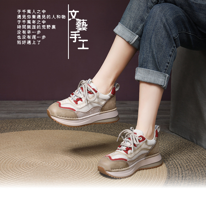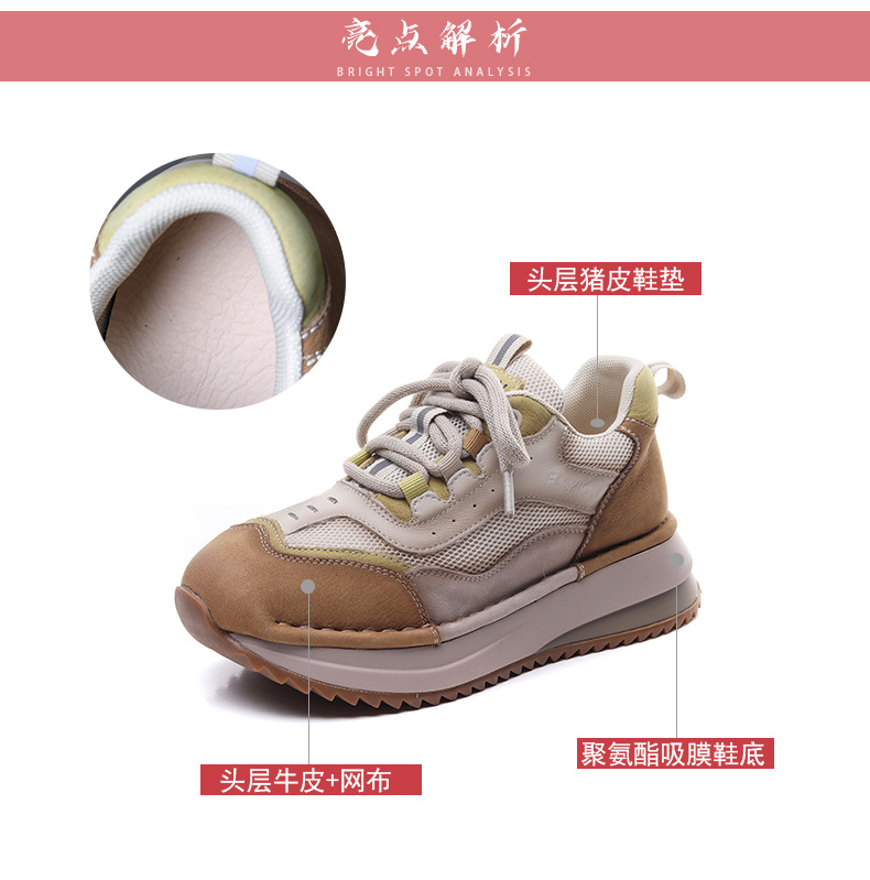 25 봄 새로운 클래식 레트로 캐주얼 운동화 가죽 레이스 업 두꺼운 단독 여성용 웨지 컬러 매칭 독일 트레이닝 신발 증가스토어 가기