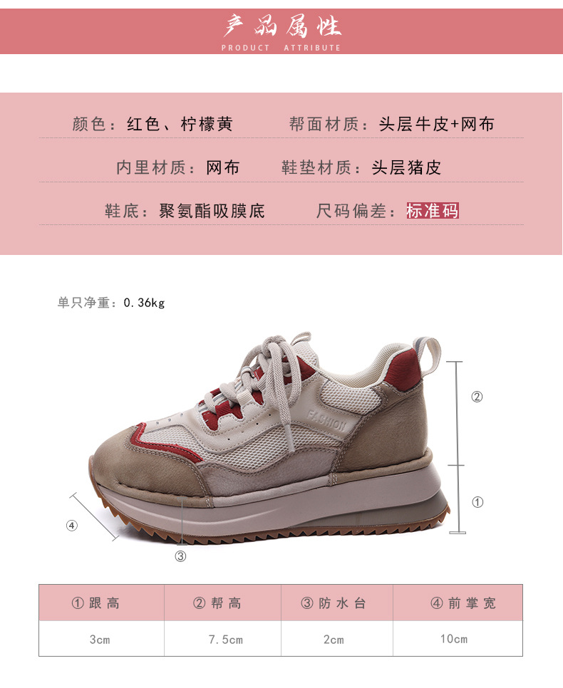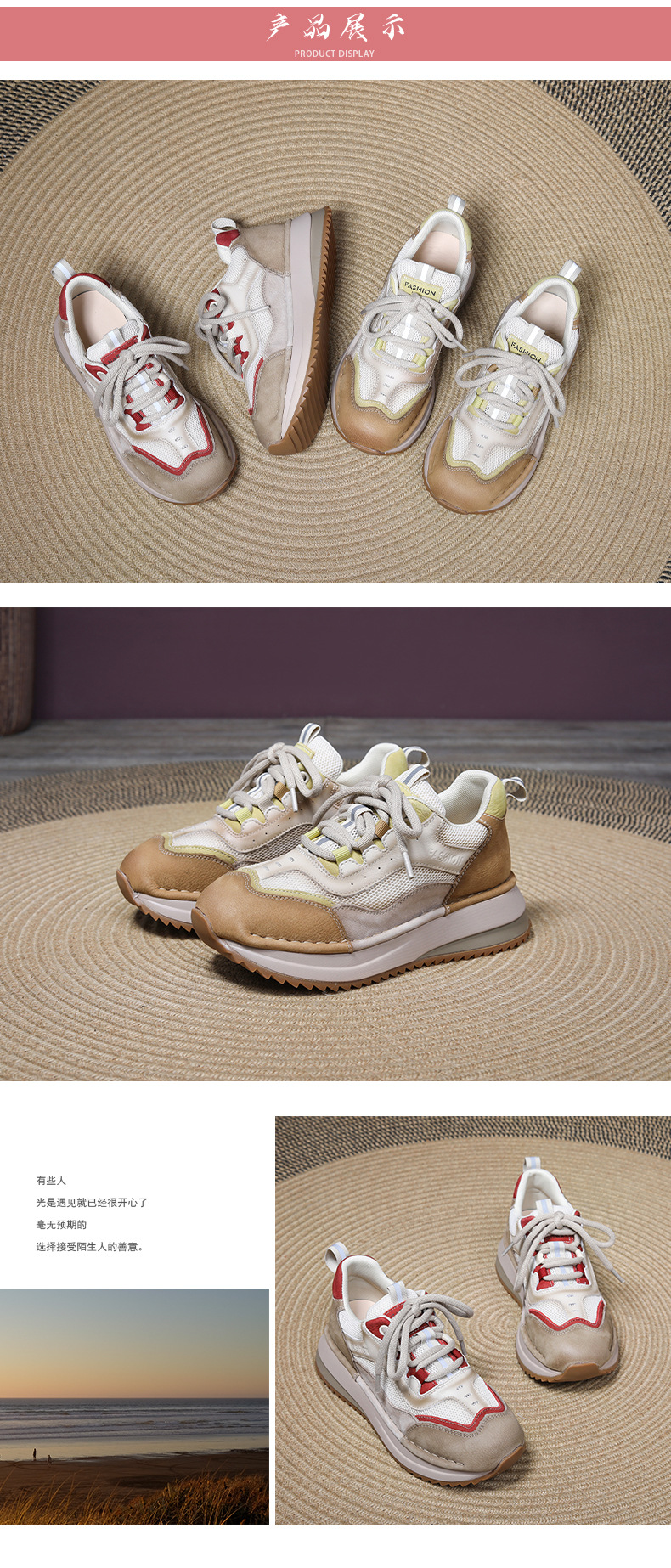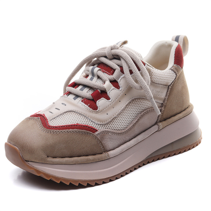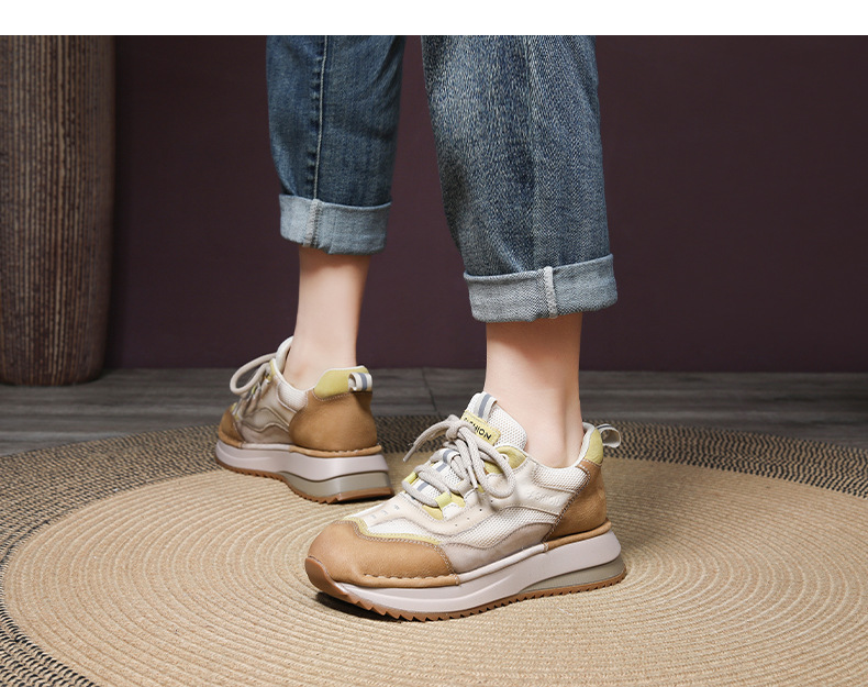 25 봄 새로운 클래식 레트로 캐주얼 운동화 가죽 레이스 업 두꺼운 단독 여성용 웨지 컬러 매칭 독일 트레이닝 신발 증가스토어 가기