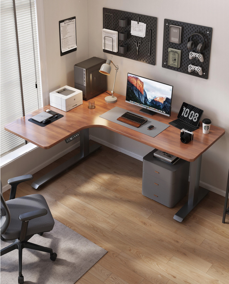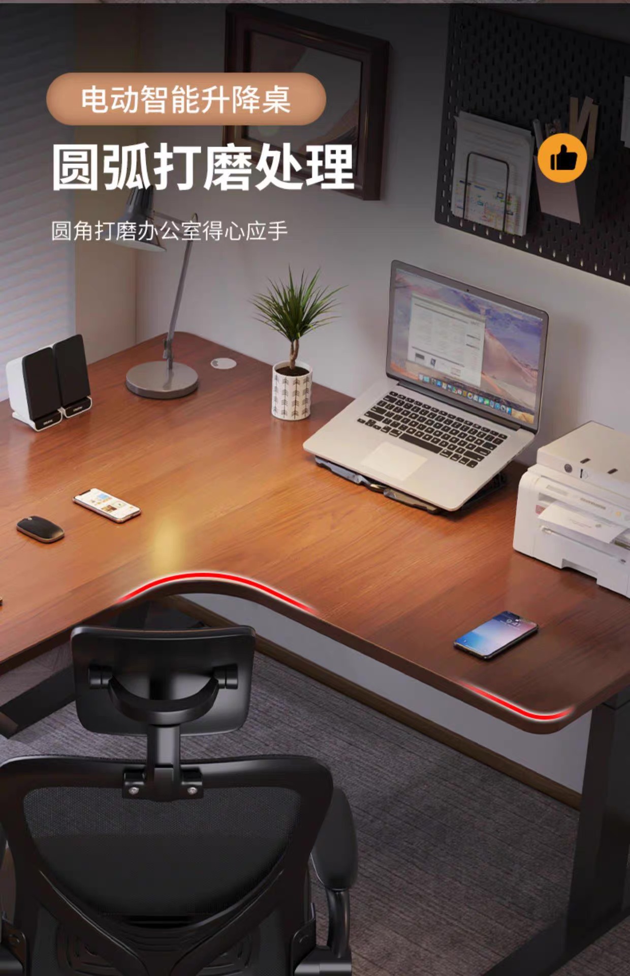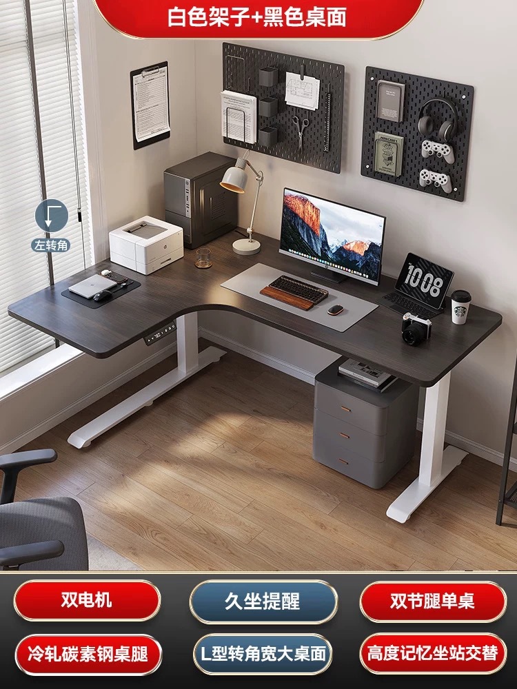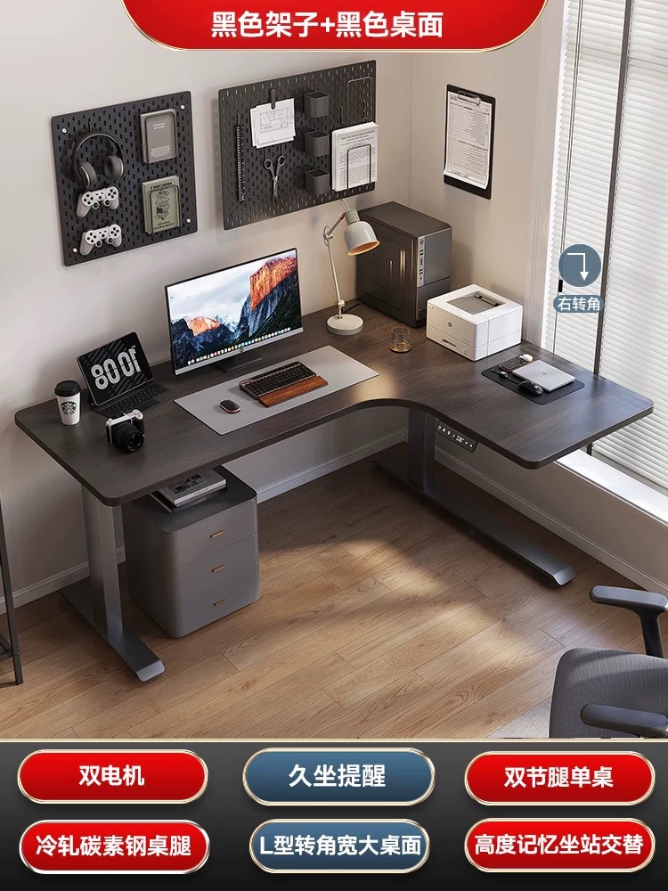 사용자 정의 코너 전기 리프팅 테이블 단단한 나무 조절 책상 E-스포츠 테이블 L 자형 전기 리프팅 테이블스토어 가기