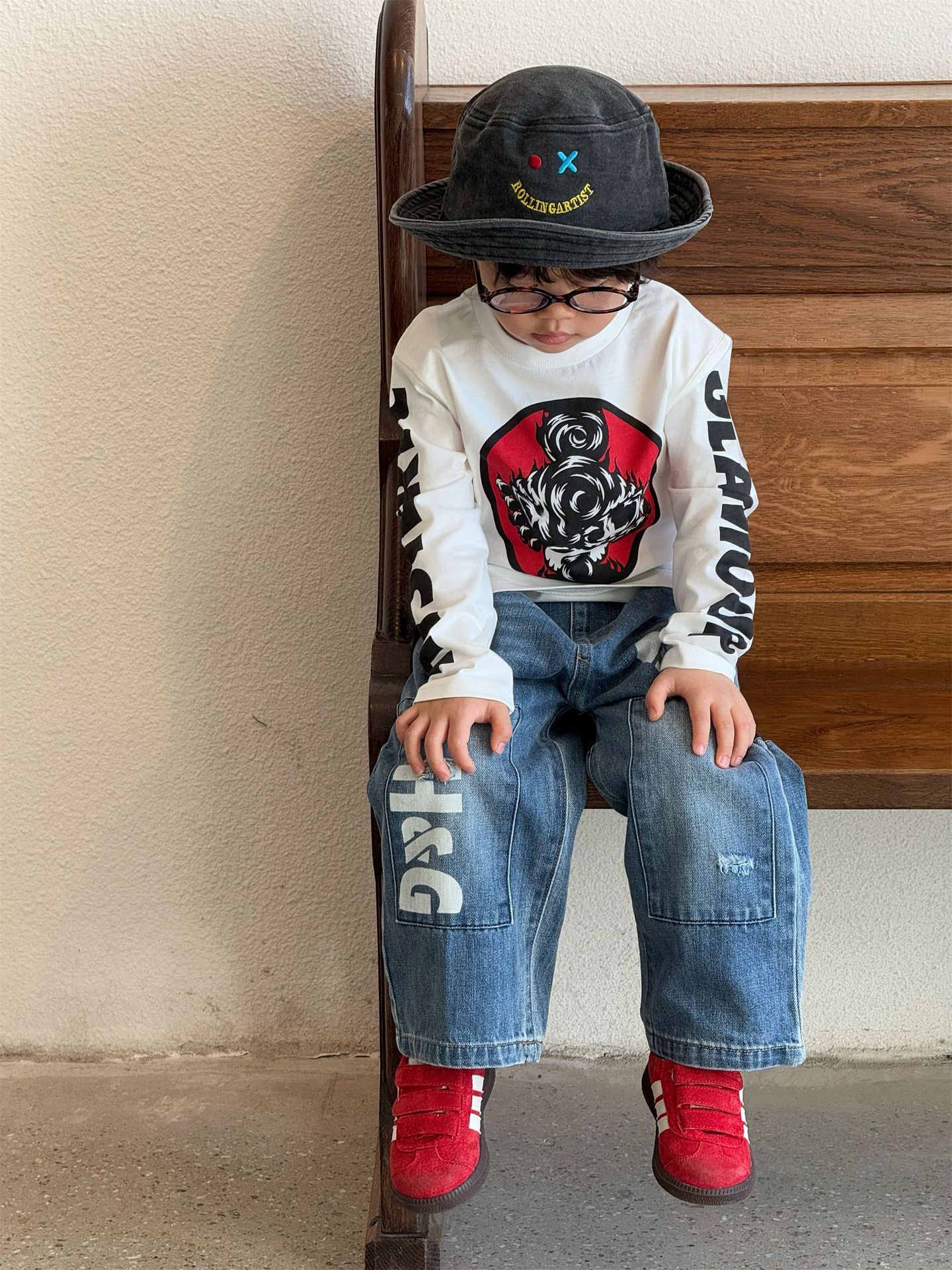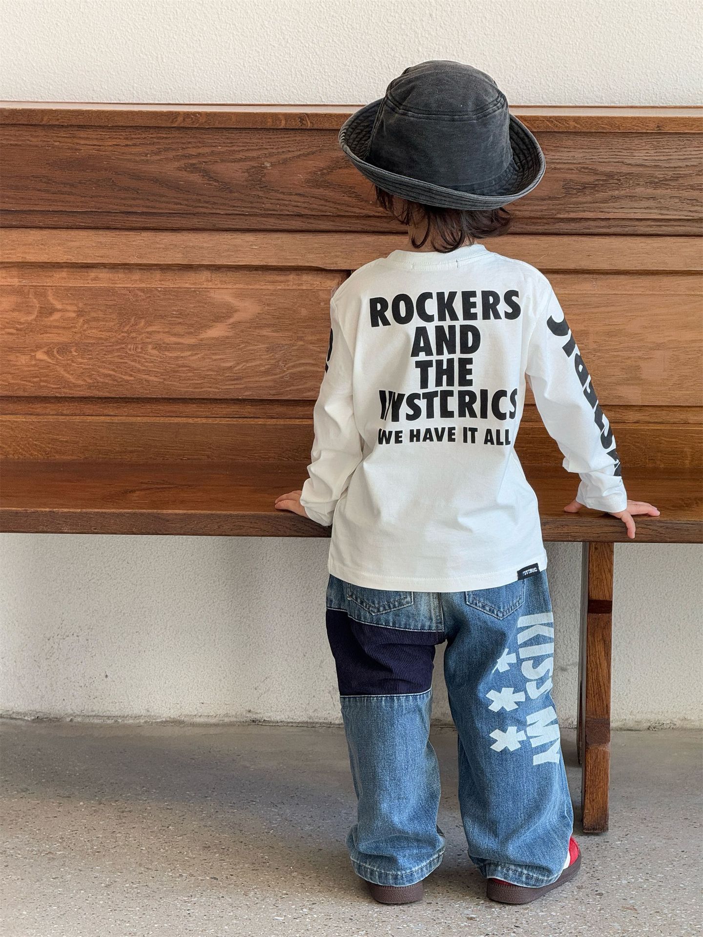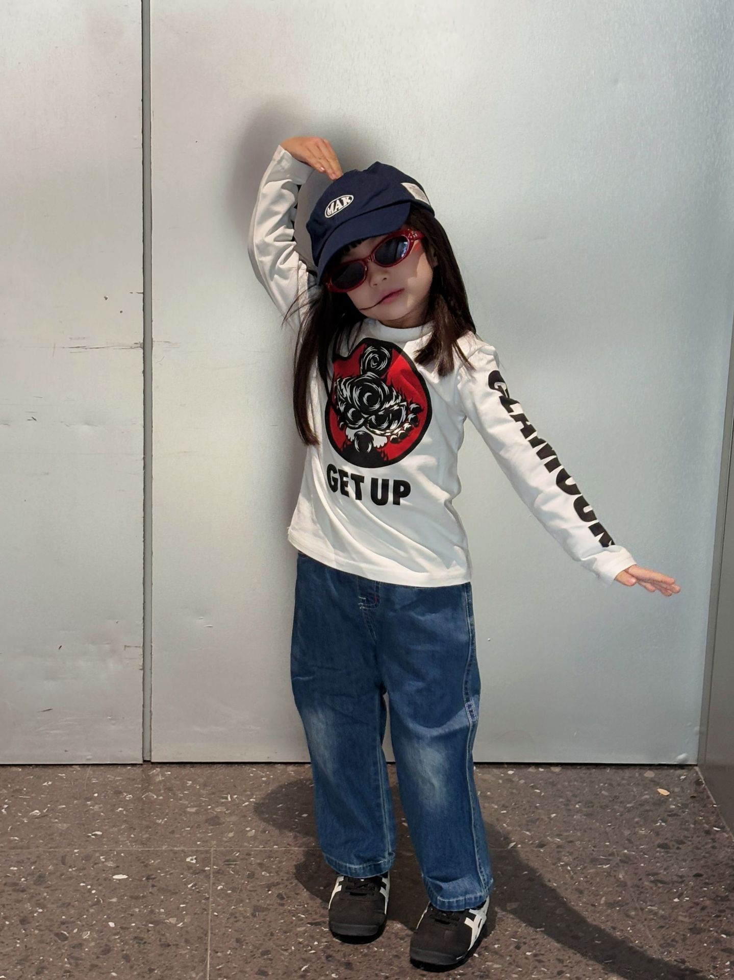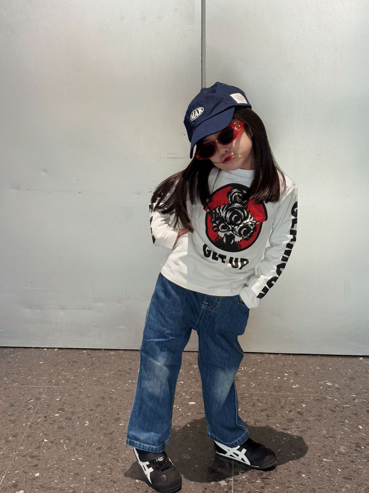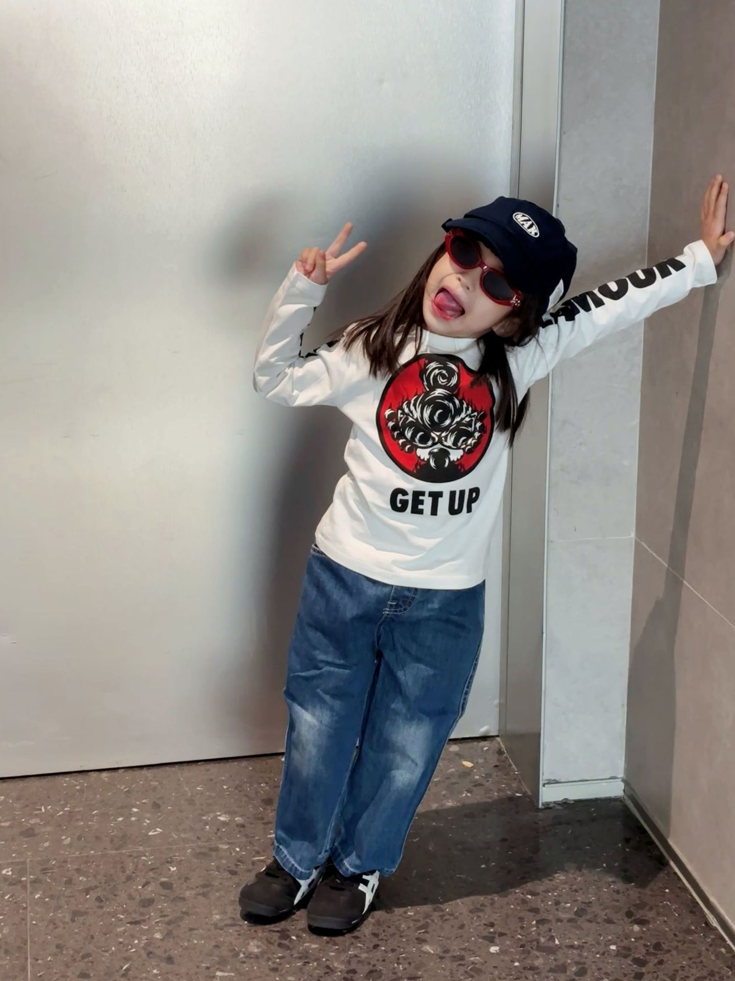 2025 뉴 블랙 슈퍼 트렌디 브랜드 젖꼭지 불꽃 인형 GETUP 프린트 긴팔 티셔츠 젖꼭지 아동용 탑 재고 있음