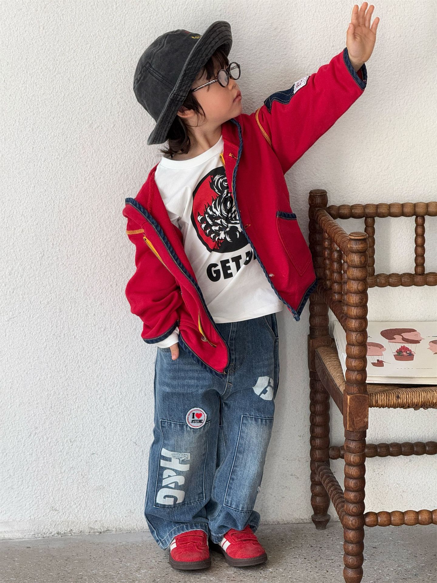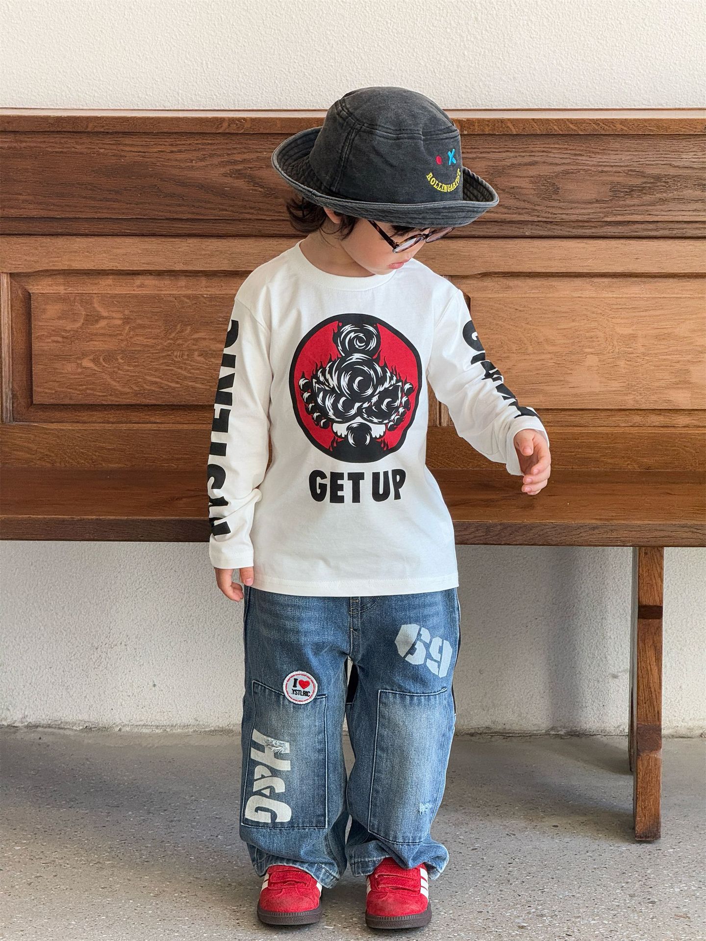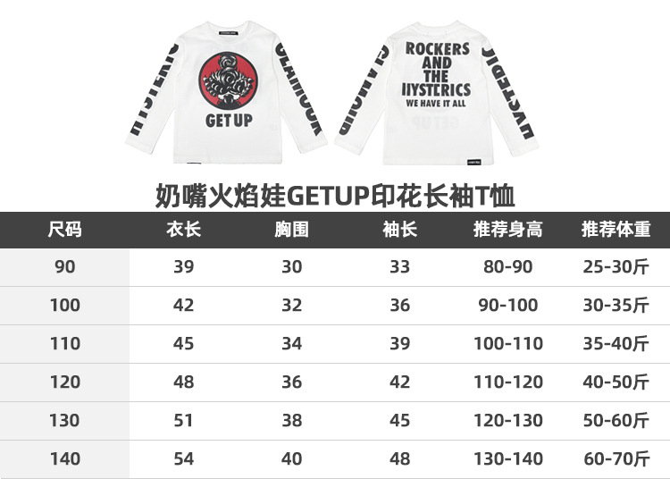 2025 뉴 블랙 슈퍼 트렌디 브랜드 젖꼭지 불꽃 인형 GETUP 프린트 긴팔 티셔츠 젖꼭지 아동용 탑 재고 있음스토어 가기