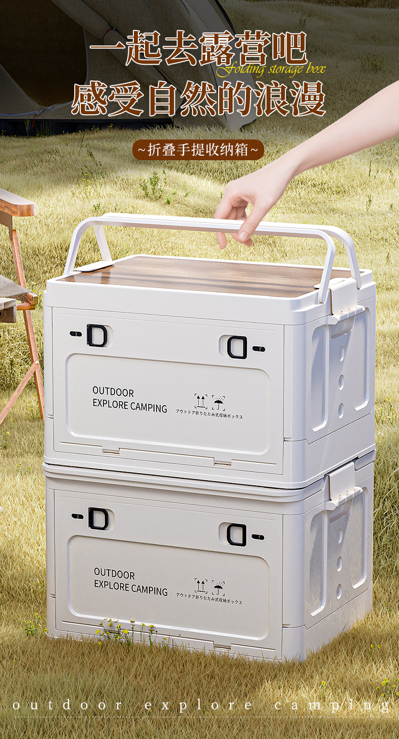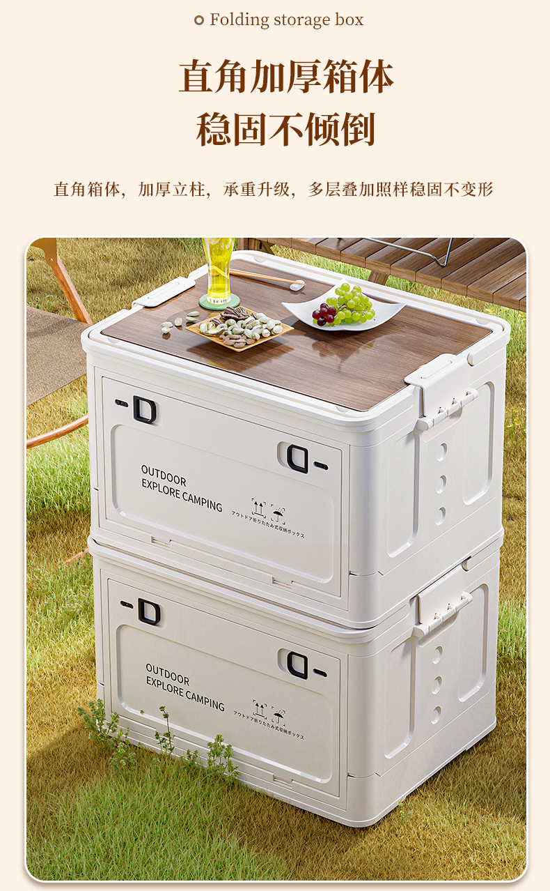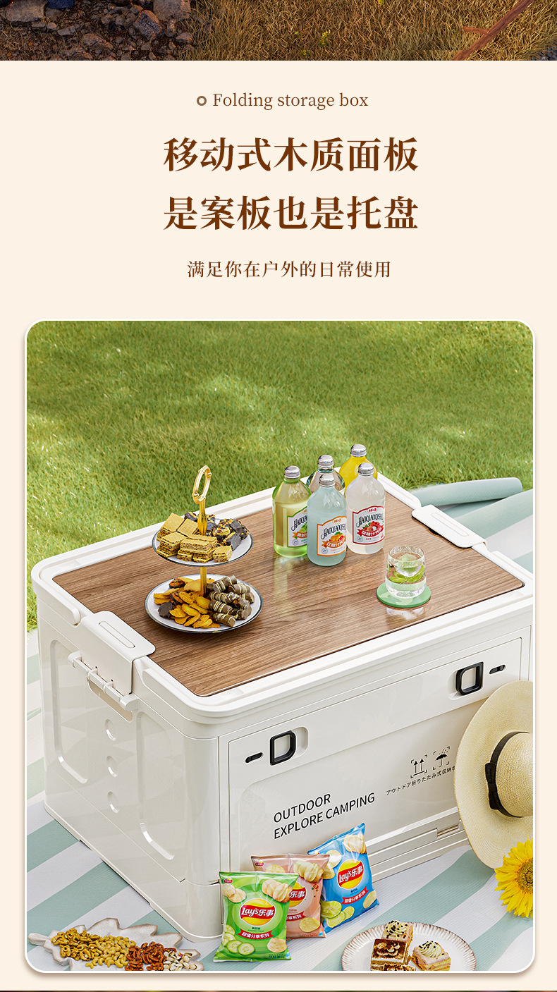 휴대용 접이식 보관 상자 사이드 오프닝 자동차 운반 상자 저장 상자 피크닉 나무 뚜껑 보관 상자 바구니 선물 상자스토어 가기