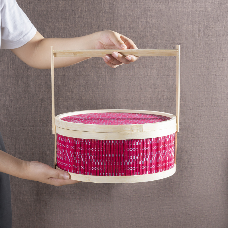 더블 레이어 대나무 바구니 뚜껑 가구 휴대용 바구니 설날 상품 드래곤 보트 축제 중추절 음식 나인 벨벳 대나무 공예 선물 보관 바구니