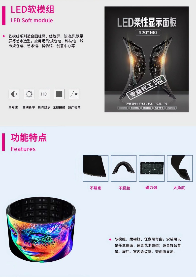 Led 유연한 화면 P1.5P2.0 소프트 모듈 원활한 접합 HD 곡선 스크린 LED 풀 컬러 특수 모양의 디스플레이