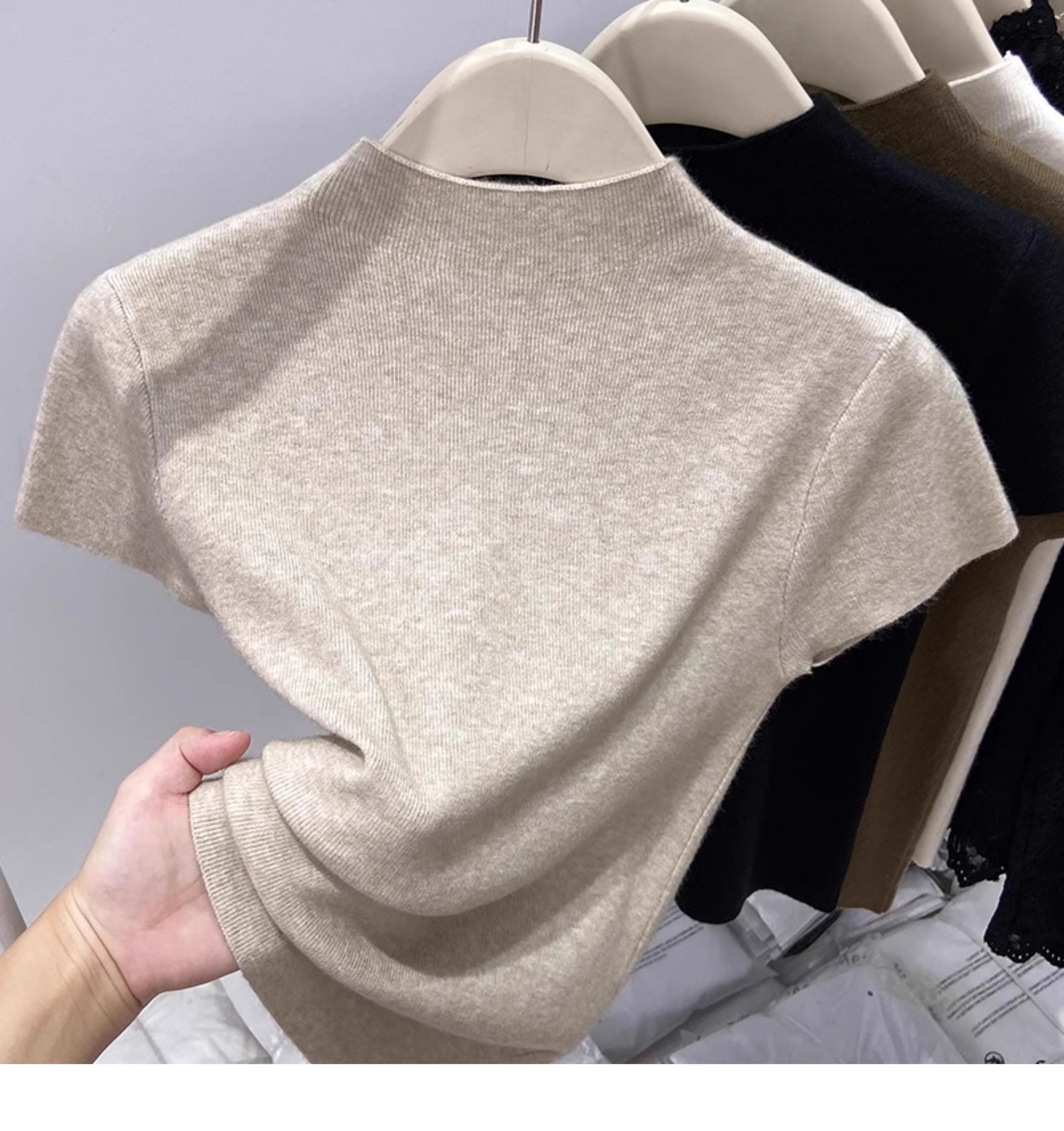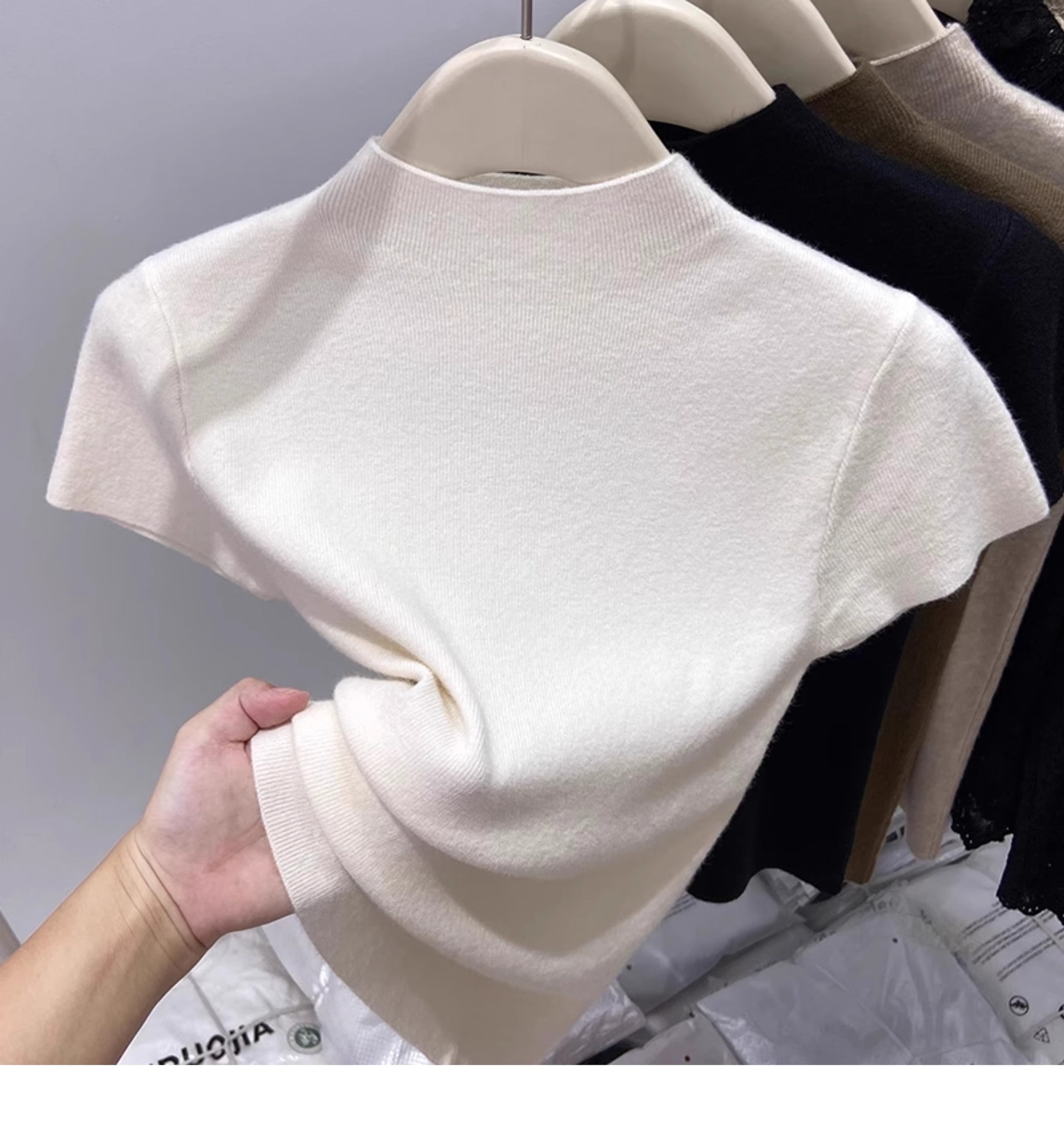 가을 신작 여성 한국식 반팔 스웨터 티셔츠 슬림핏 바텀 셔츠와 스웨터 쇼트 탑스토어 가기