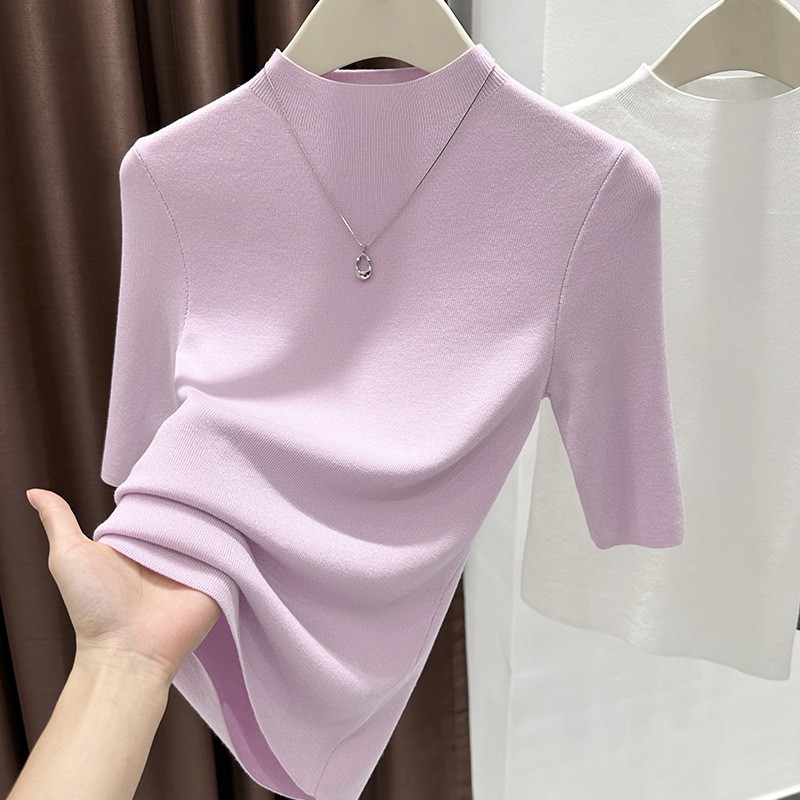 가을 신작 여성 한국식 반팔 스웨터 티셔츠 슬림핏 바텀 셔츠와 스웨터 쇼트 탑