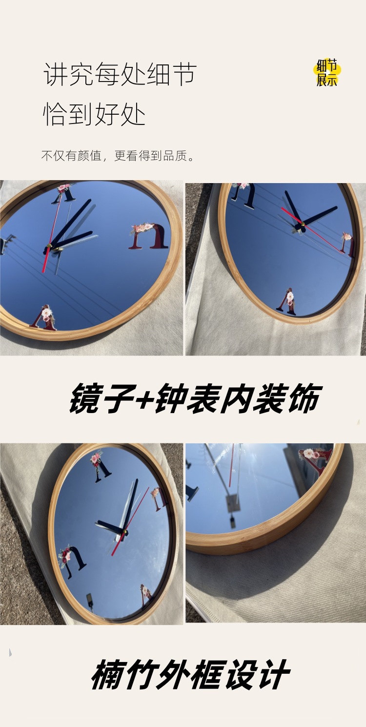 골동품 스타일 거울 시계 홈 시계 벽-교수형 호텔 단단한 나무 침묵 시계 거울 창조적 인 복도 장식 거울