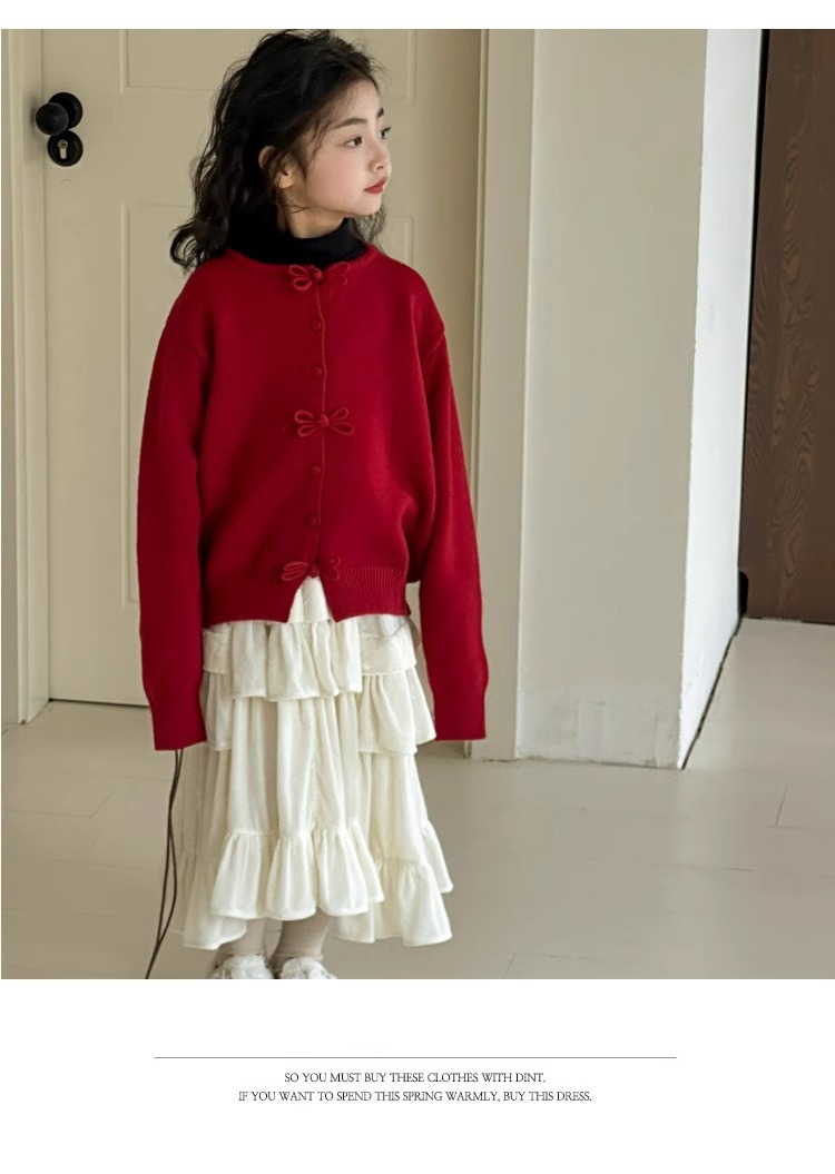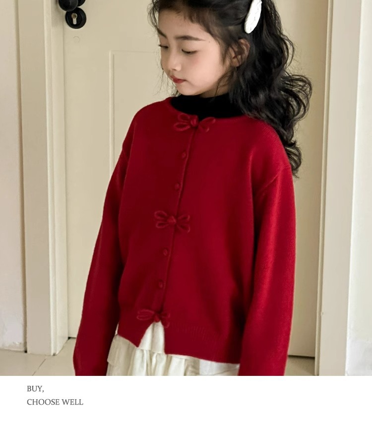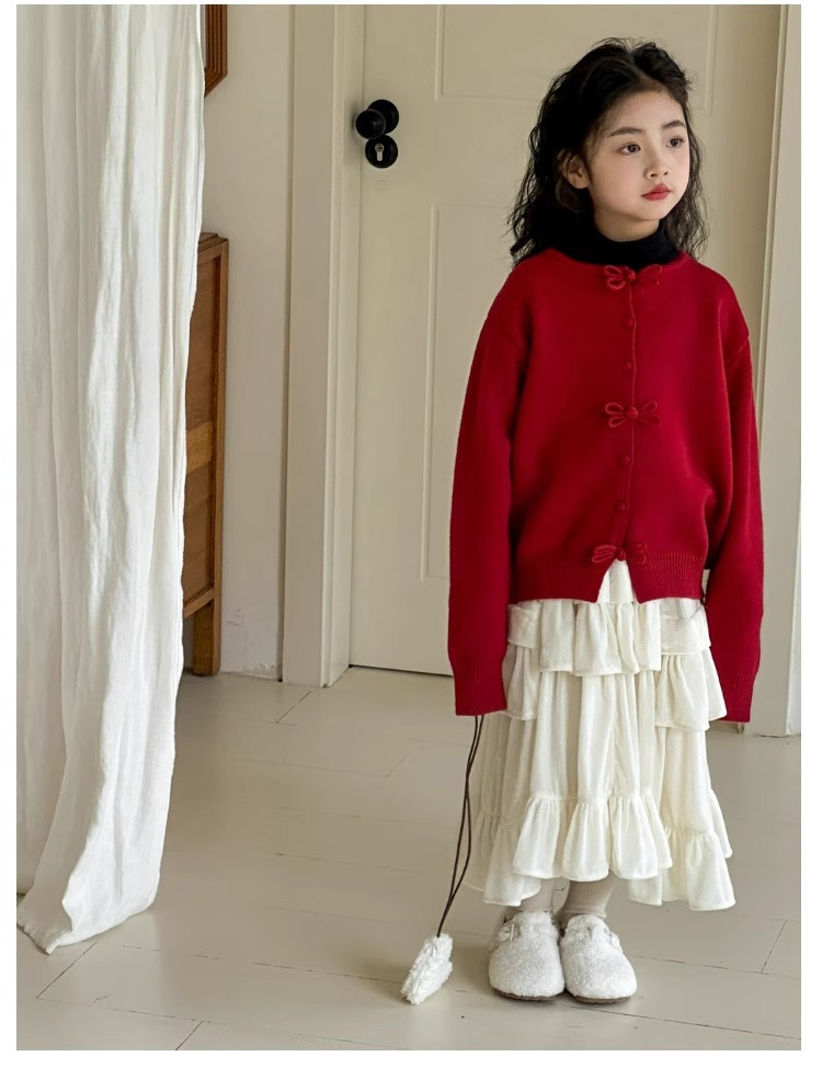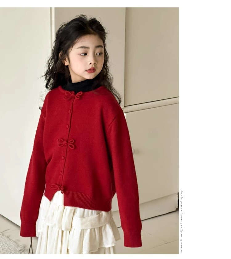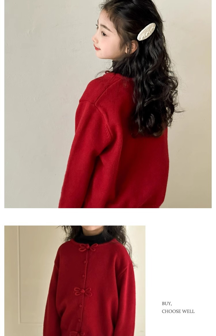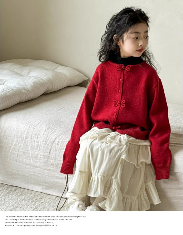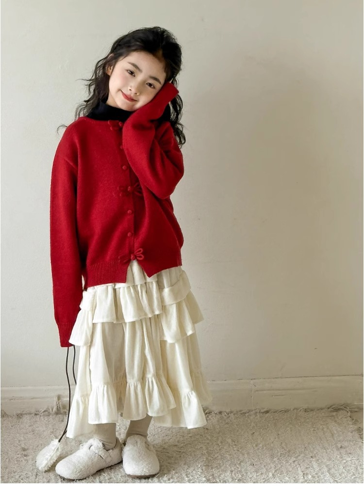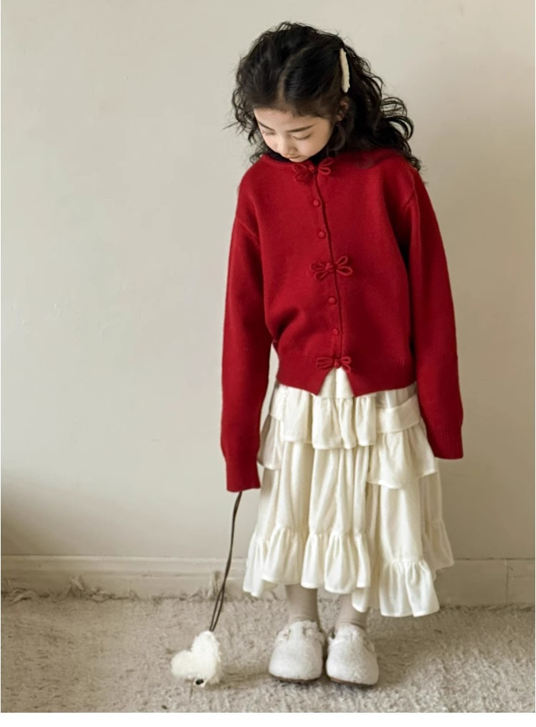 소녀 코트 2025 가을과 겨울 새로운 어린이 빨간 스웨터 새 구정 서비스 니트 스웨터 탑스토어 가기