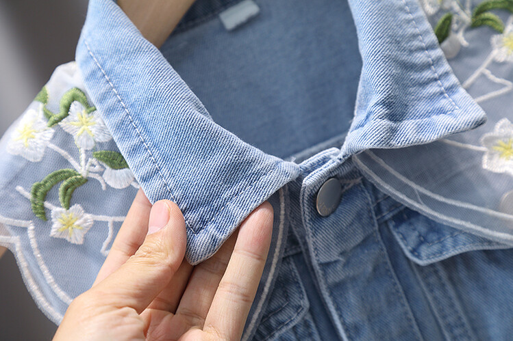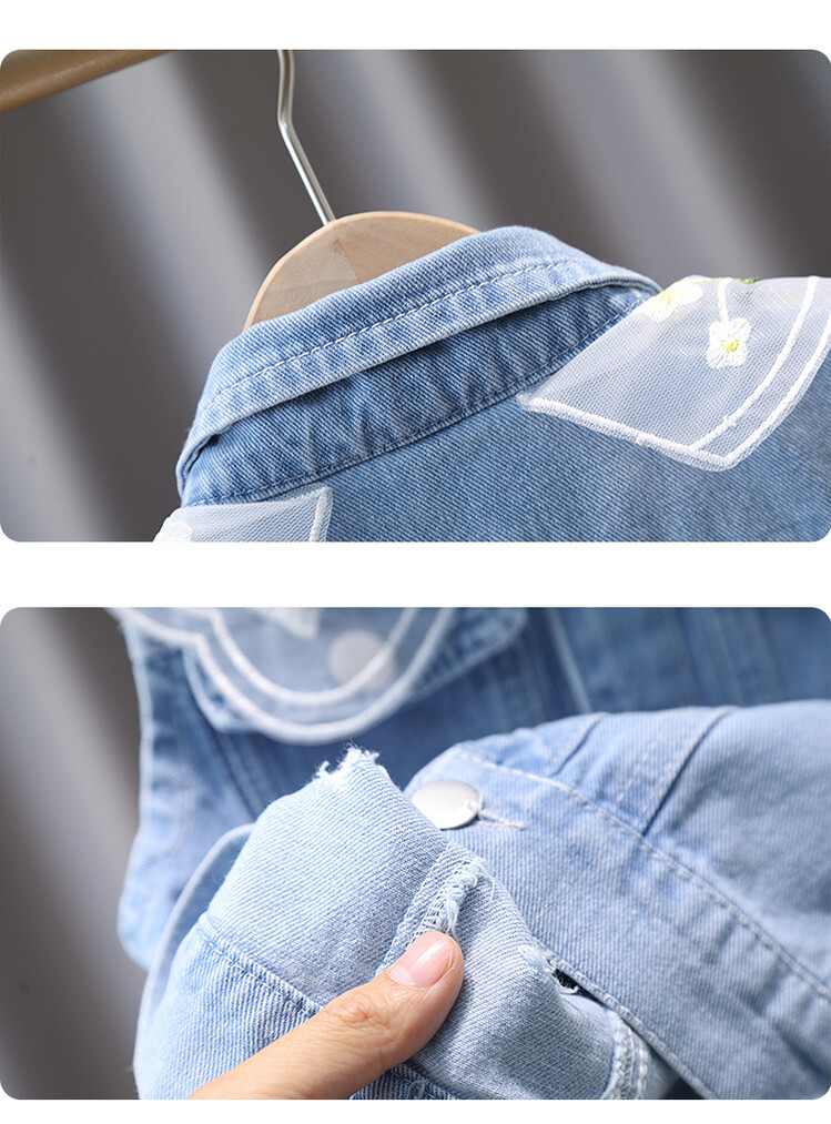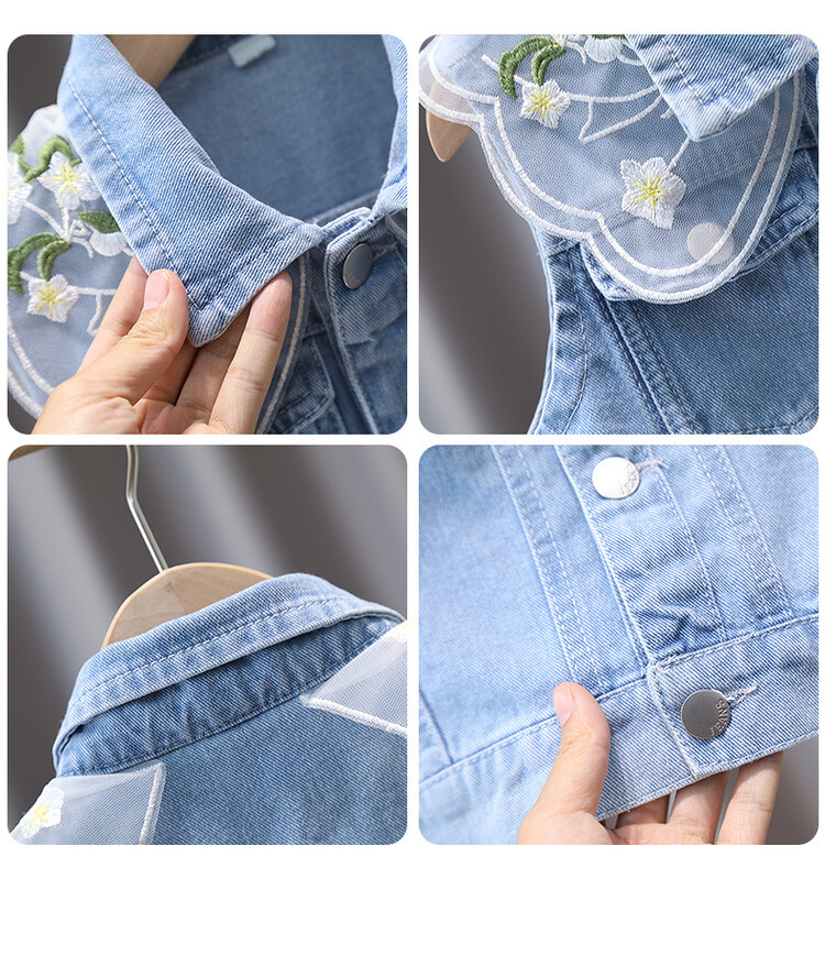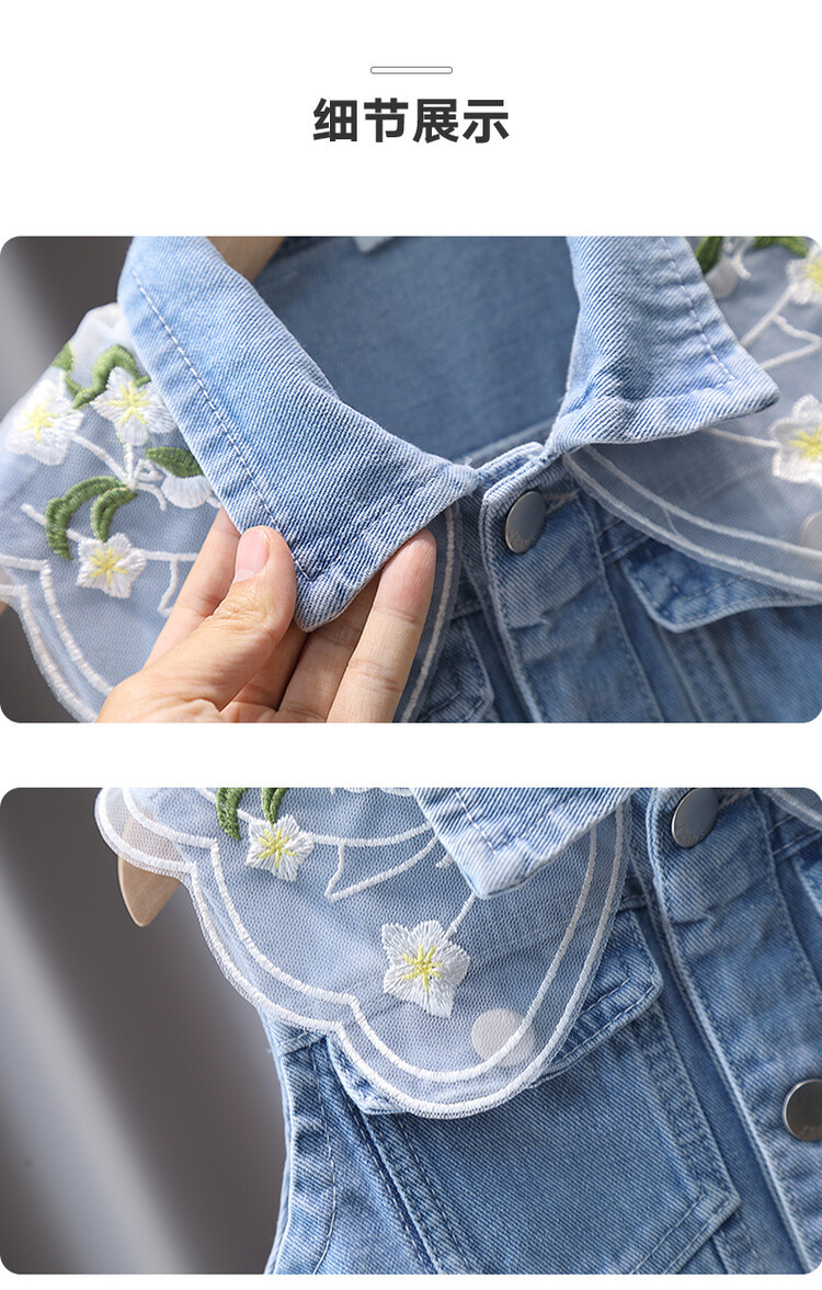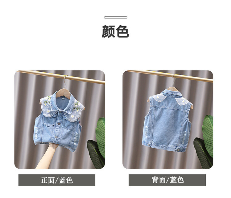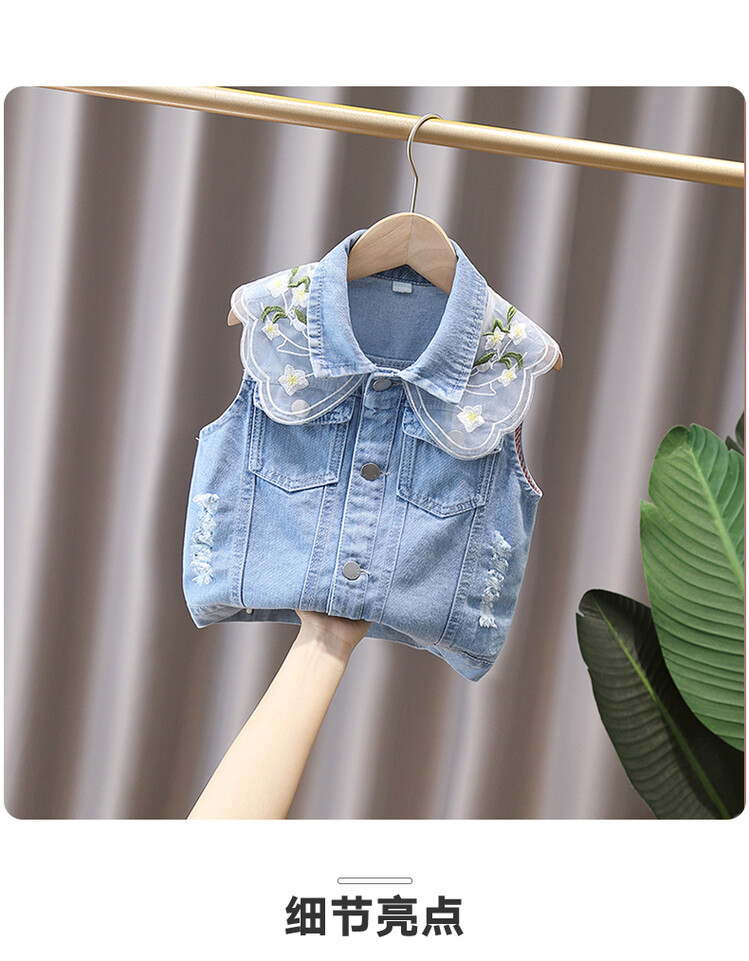 소녀 봄과 가을 2025 새로운 소녀 데님 레이스 칼라 조끼 아기 봄 말 클립 코트스토어 가기